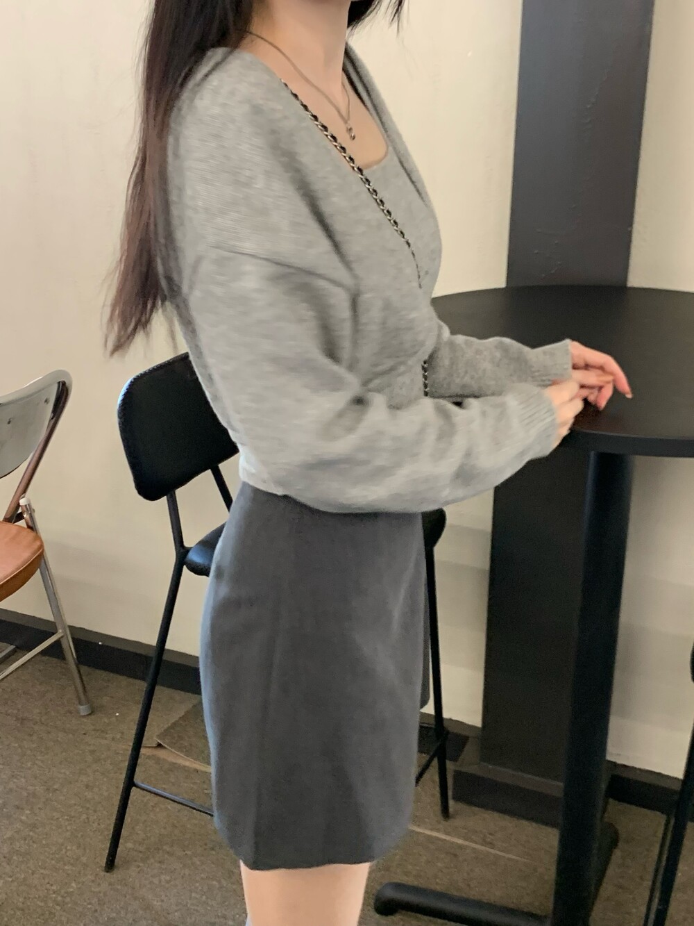 뷔스티에로 코디하여 레이어드룩으로도 추천드려요.