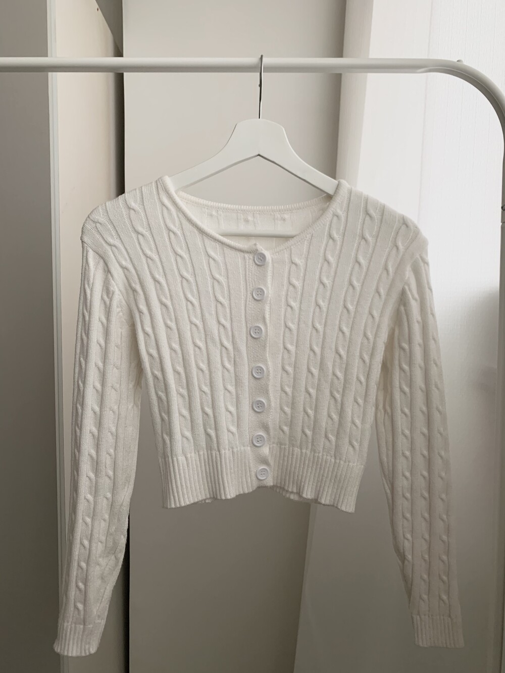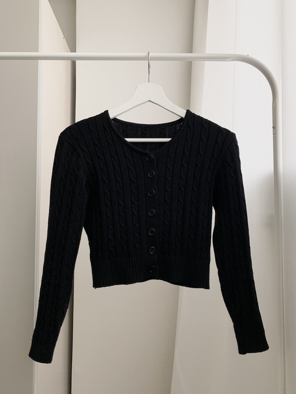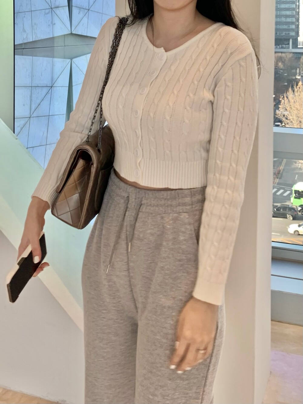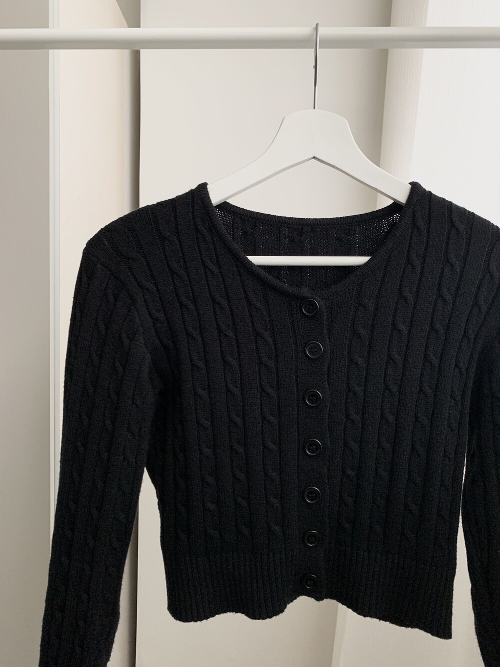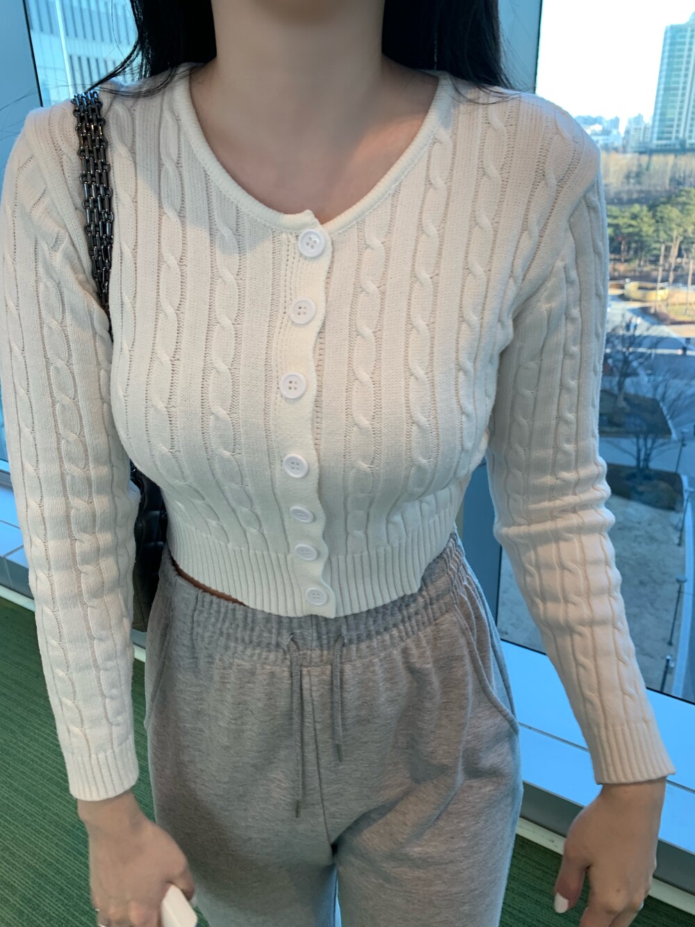 캐주얼한 무드의 케이블 크롭 가디건입니다.