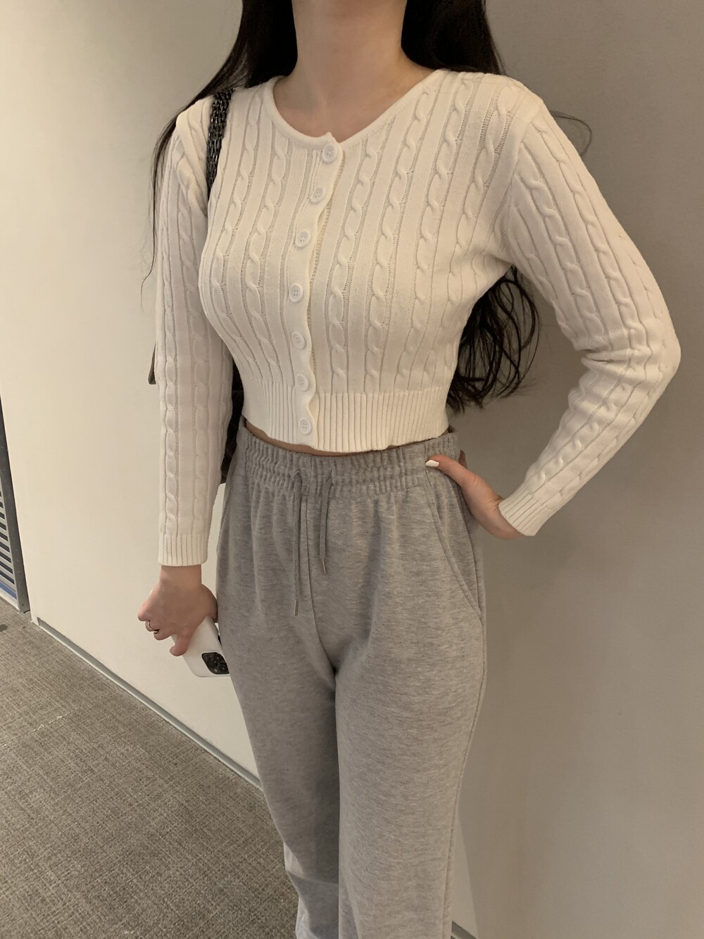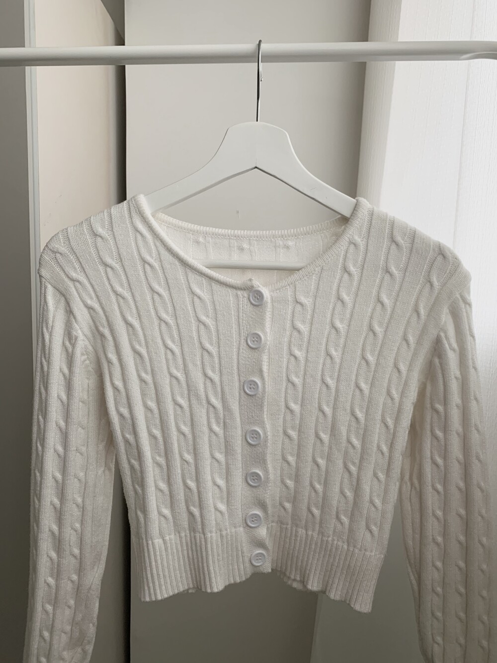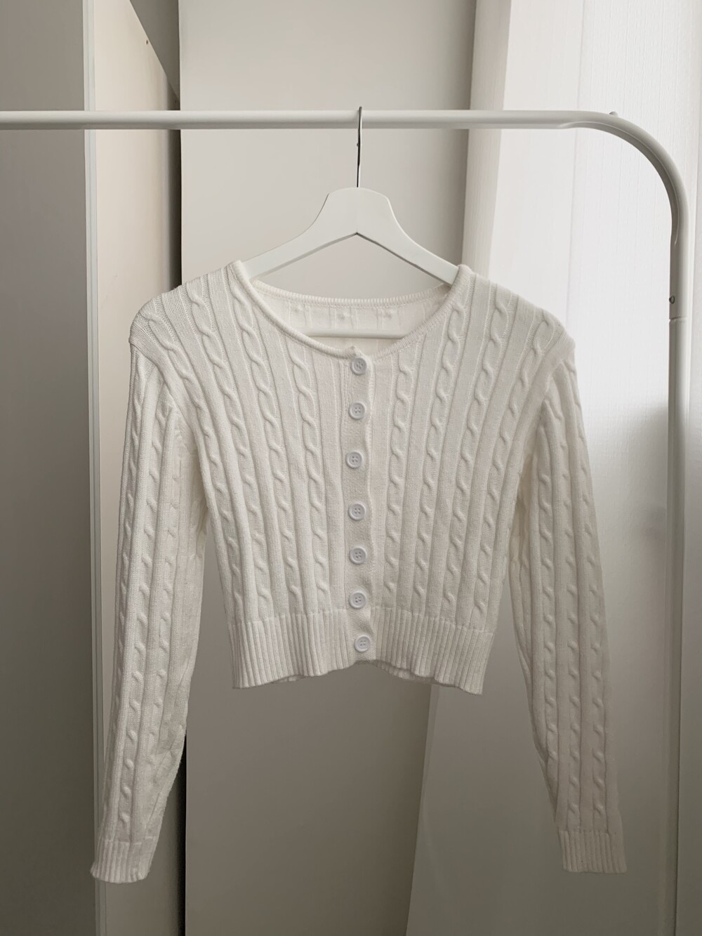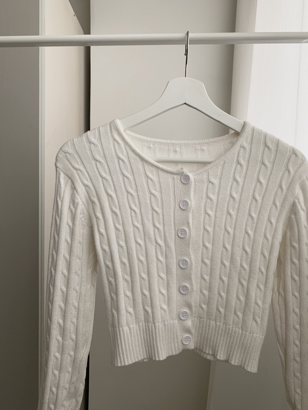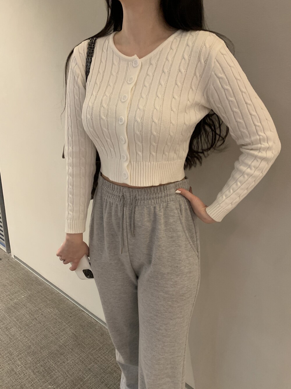 캐주얼한 무드의 케이블 크롭 가디건입니다.