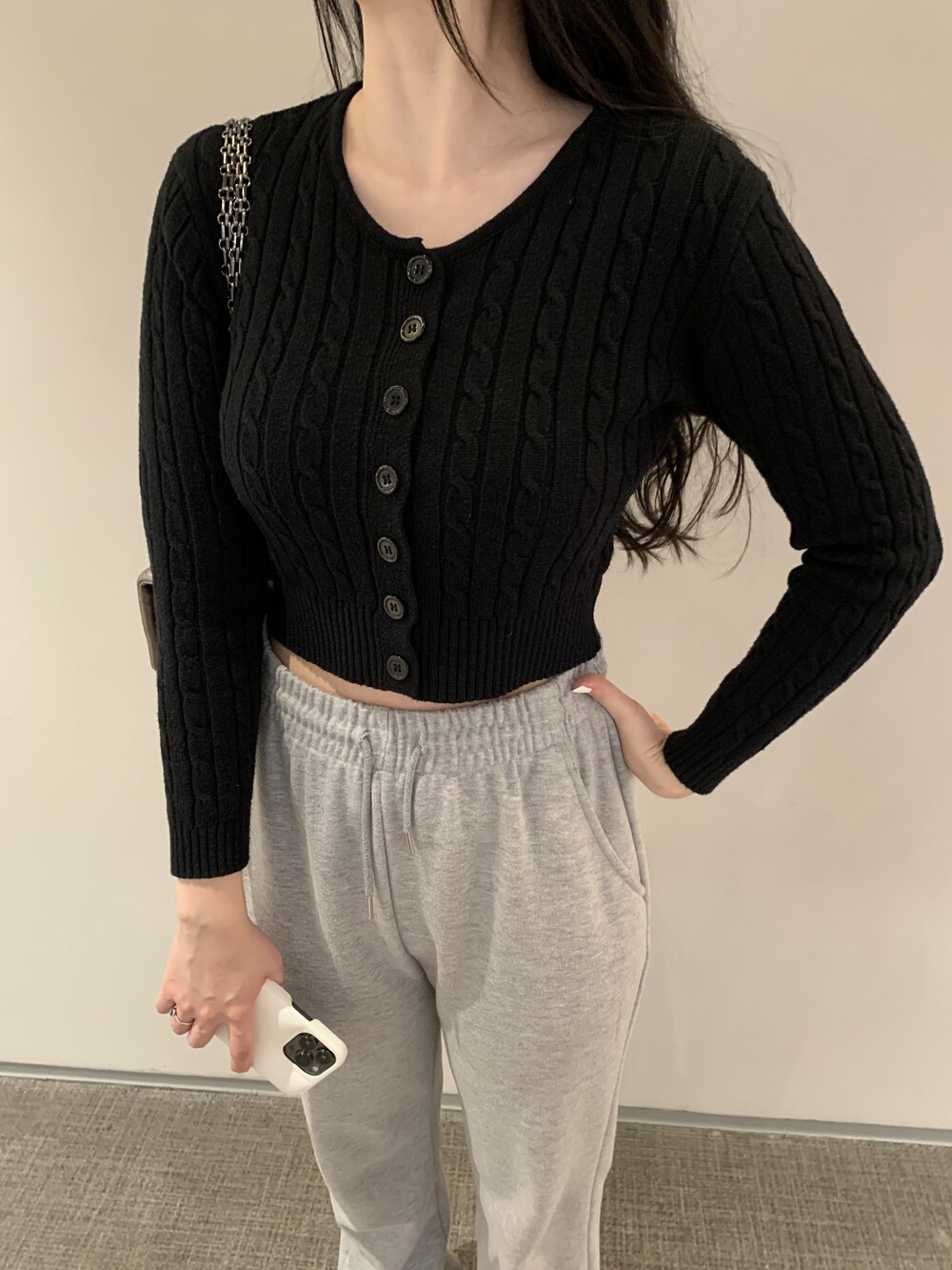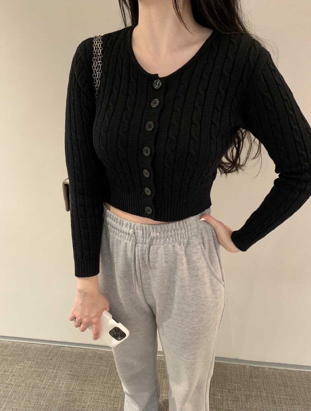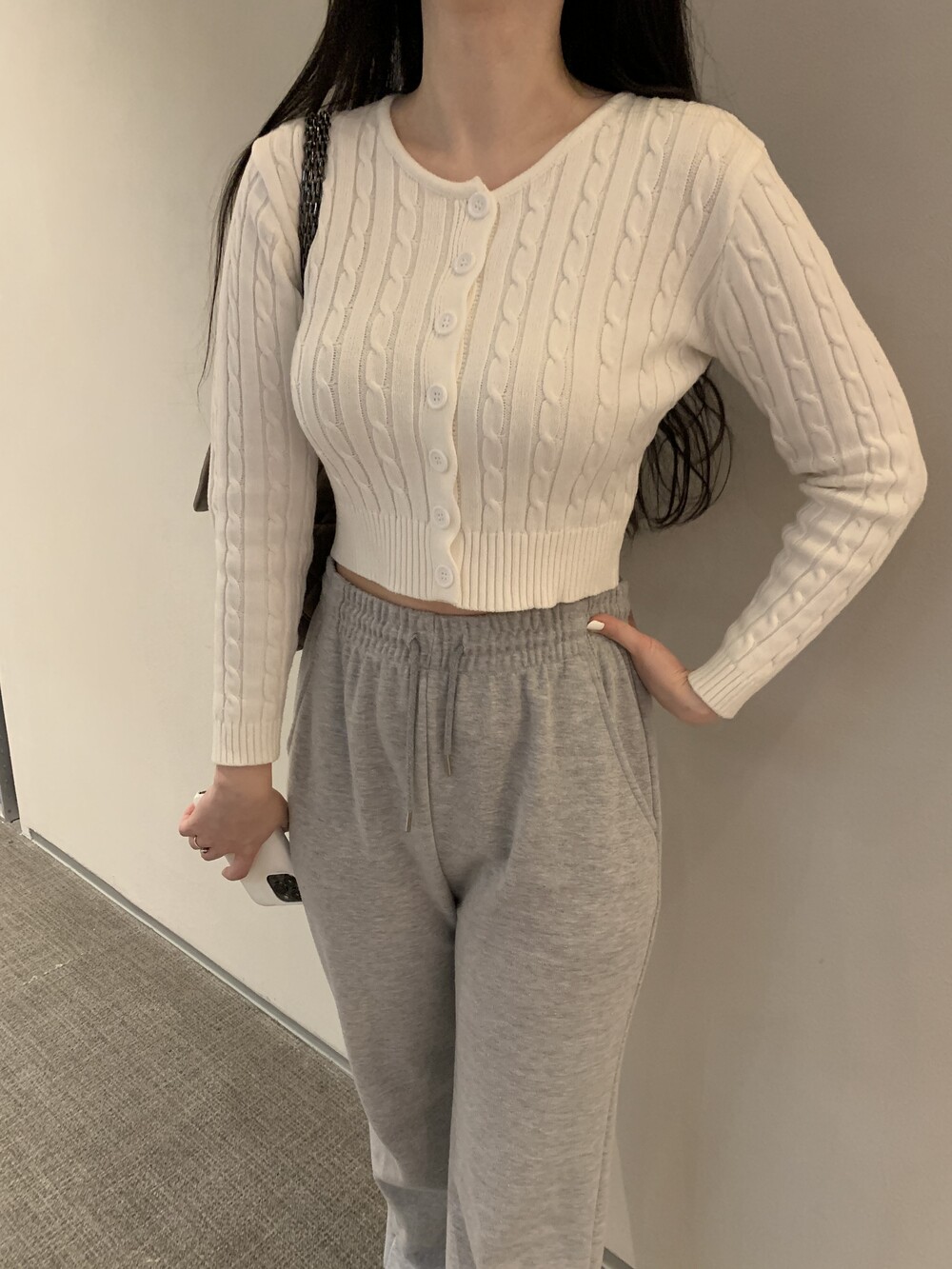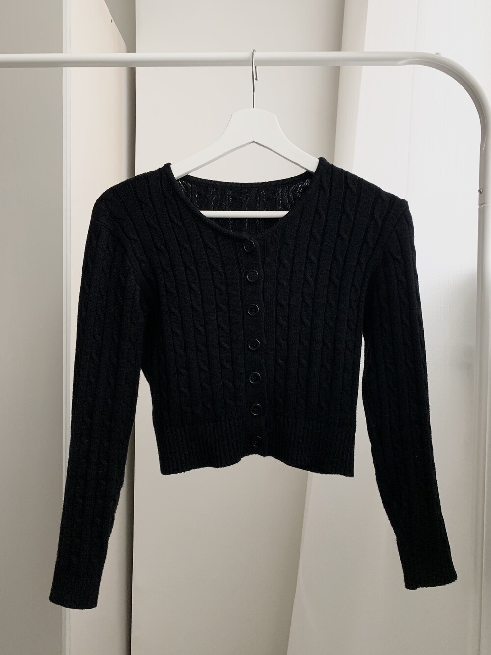 캐주얼한 무드의 케이블 크롭 가디건입니다.