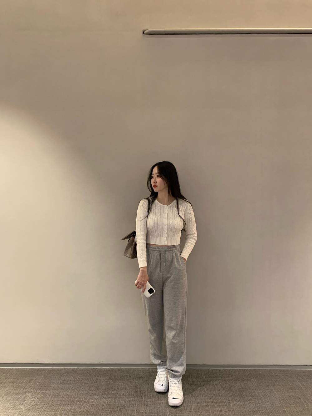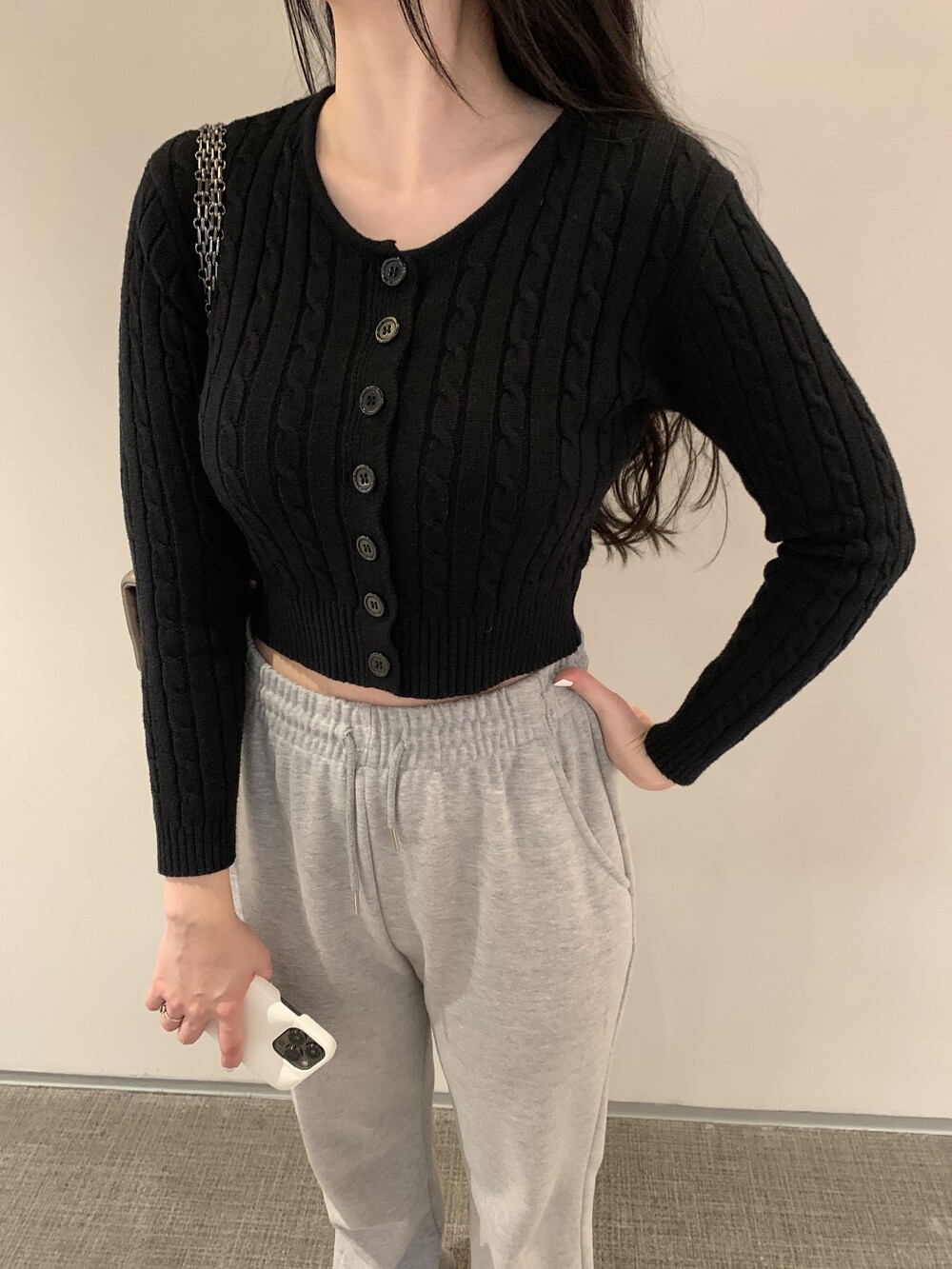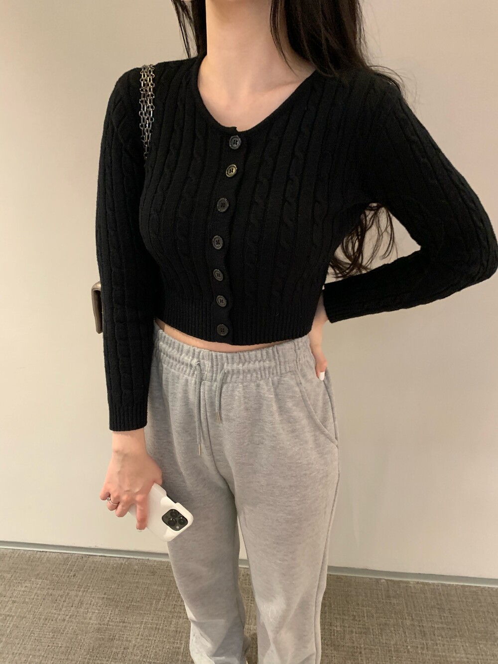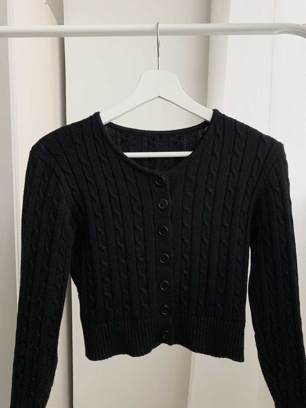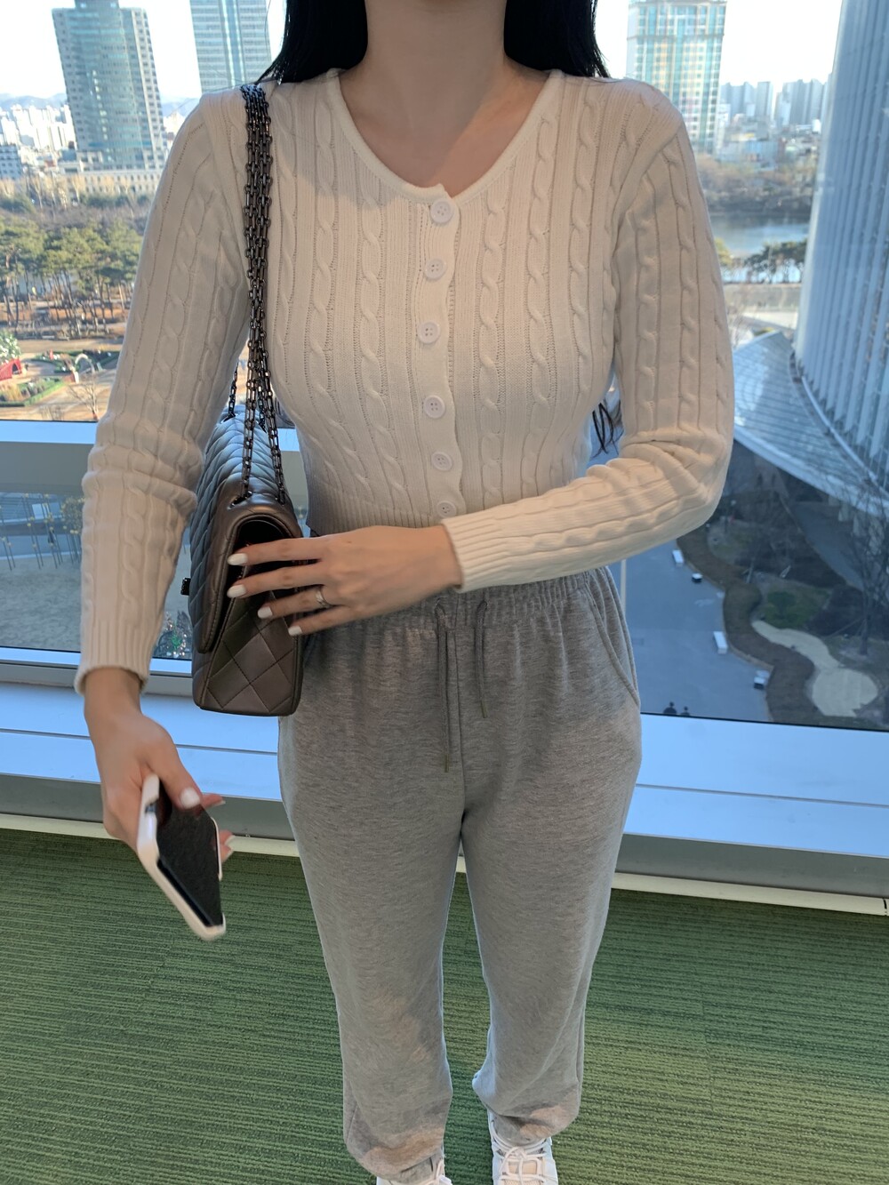 캐주얼한 무드의 케이블 크롭 가디건입니다.