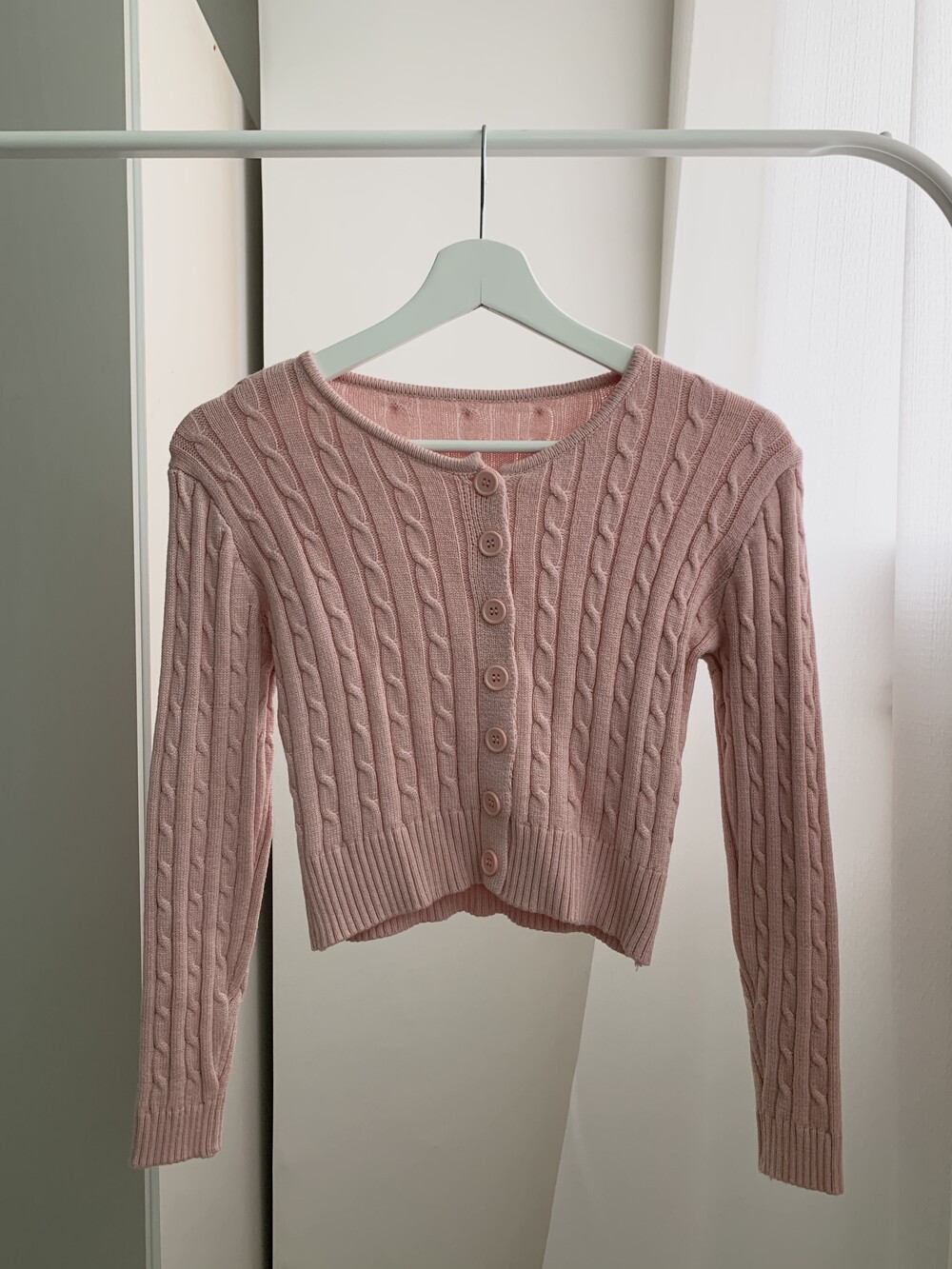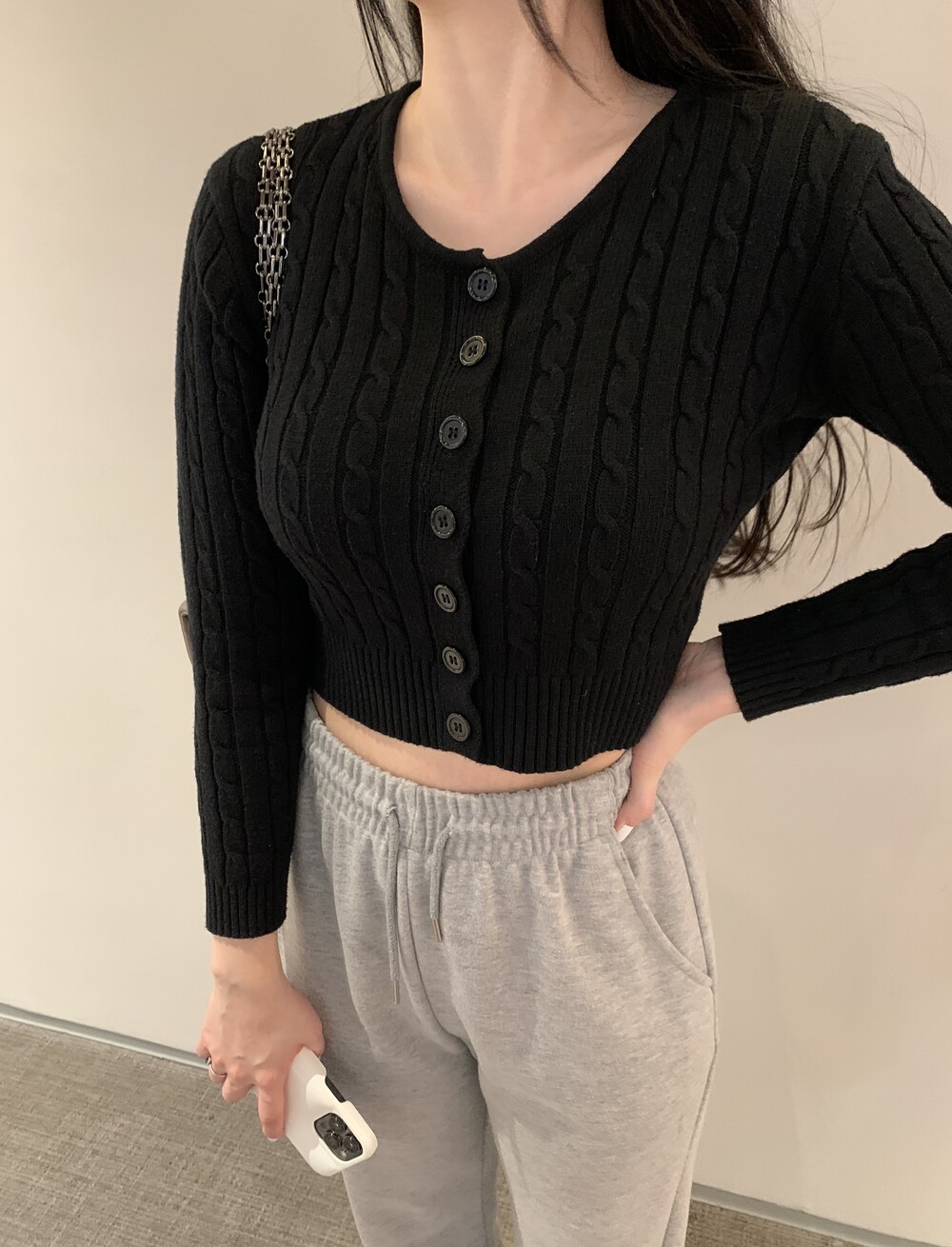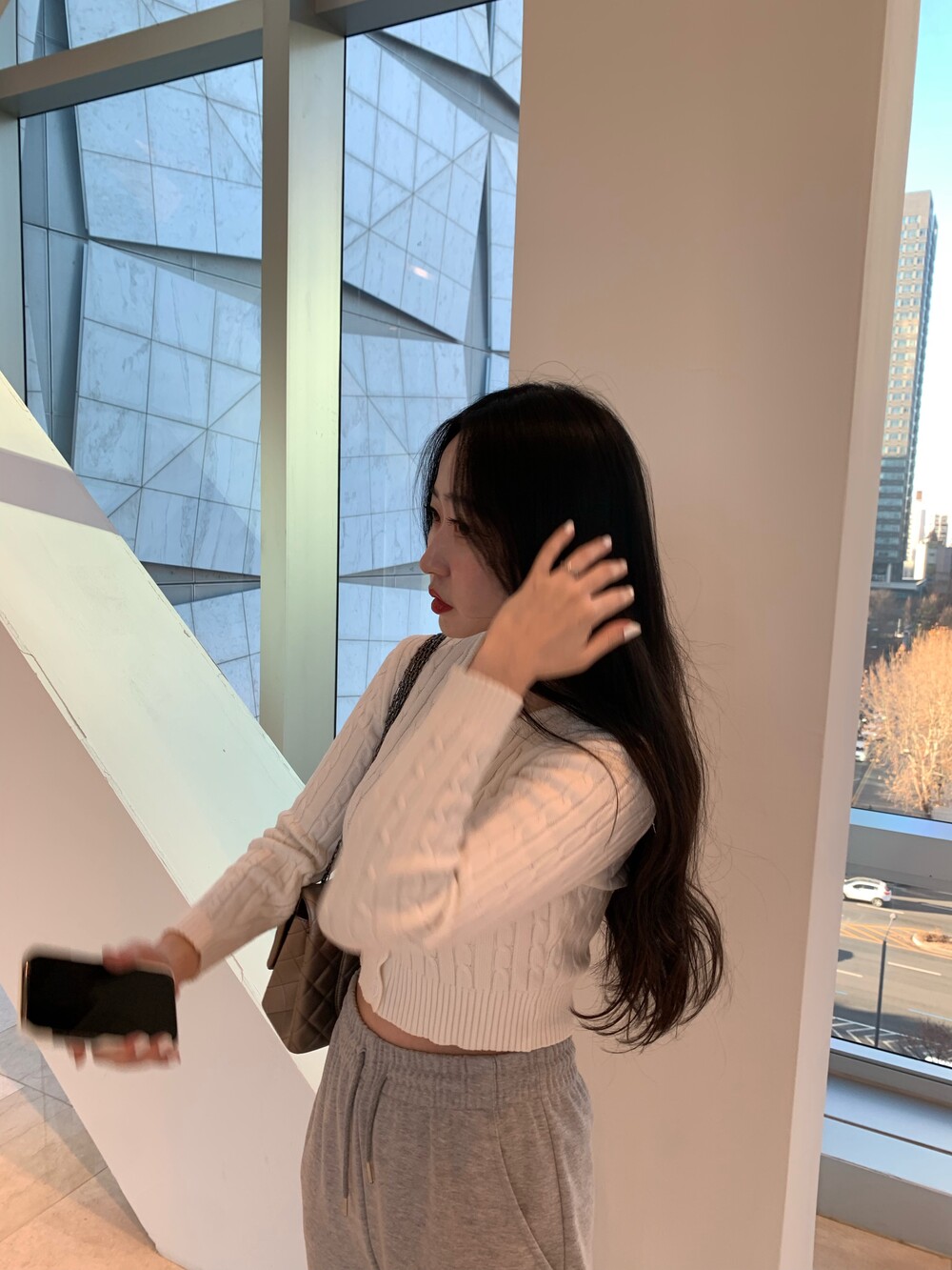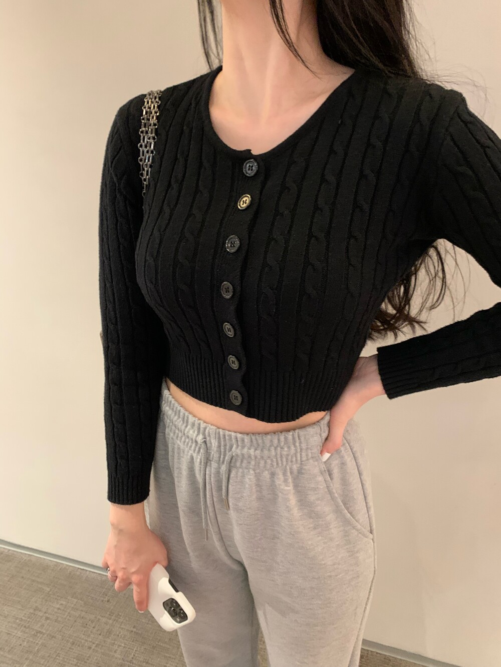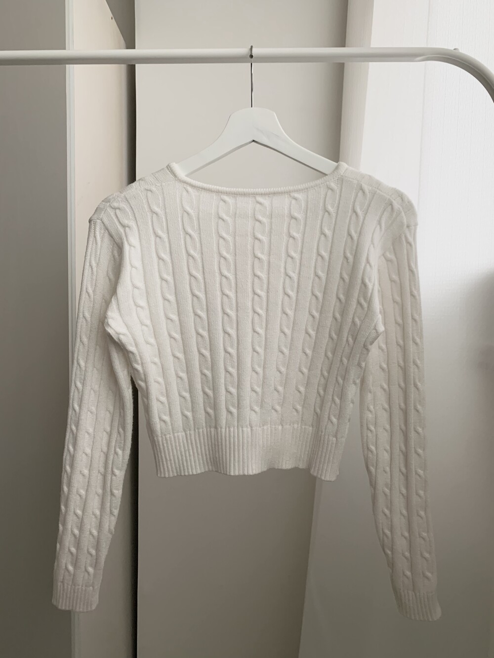 캐주얼한 무드의 케이블 크롭 가디건입니다.