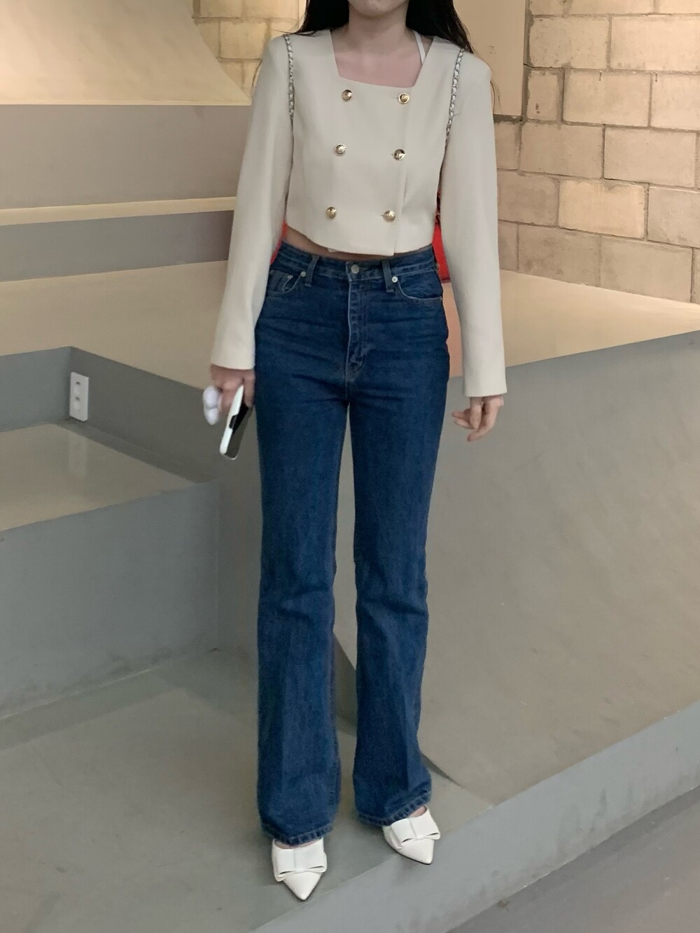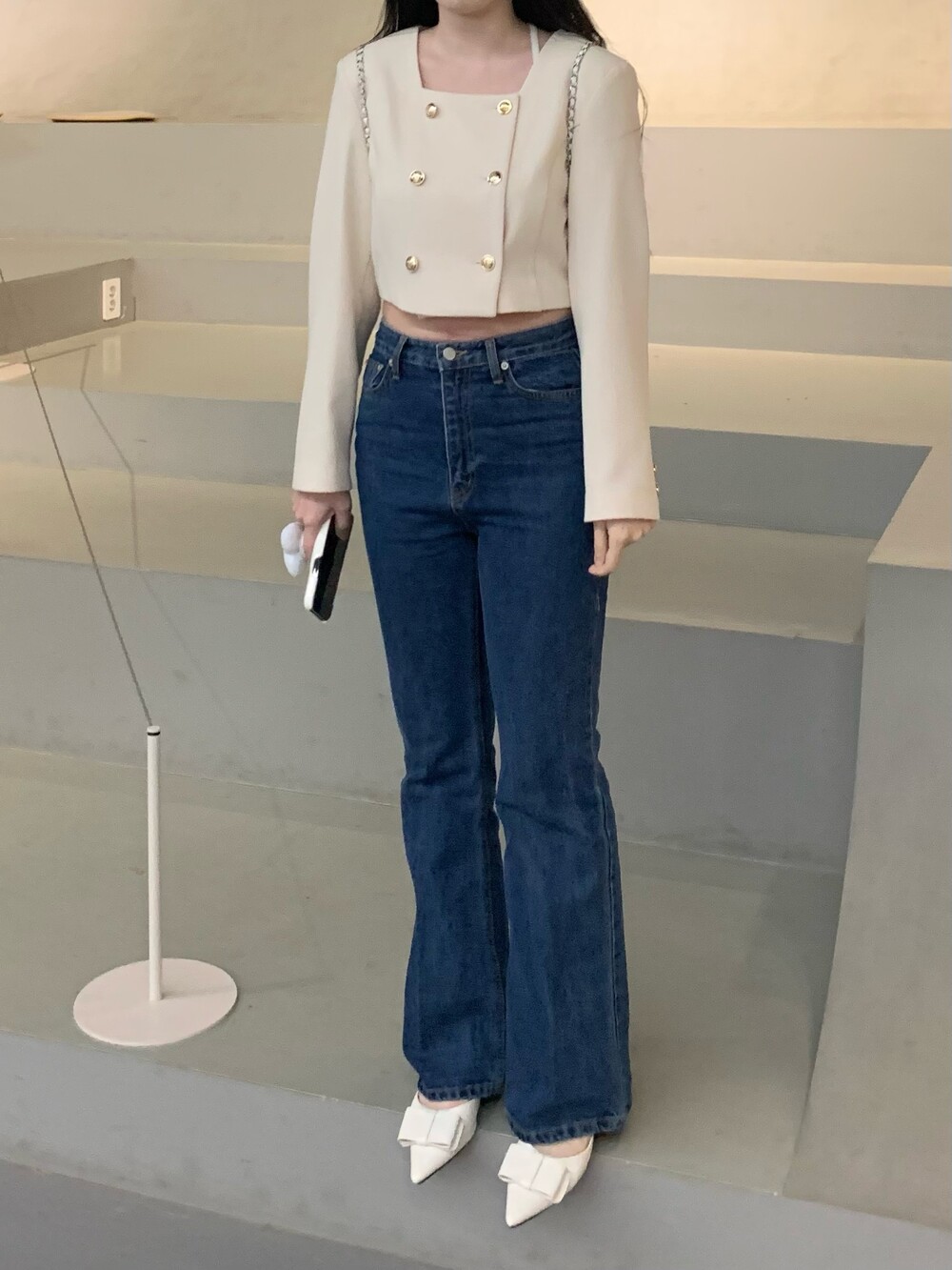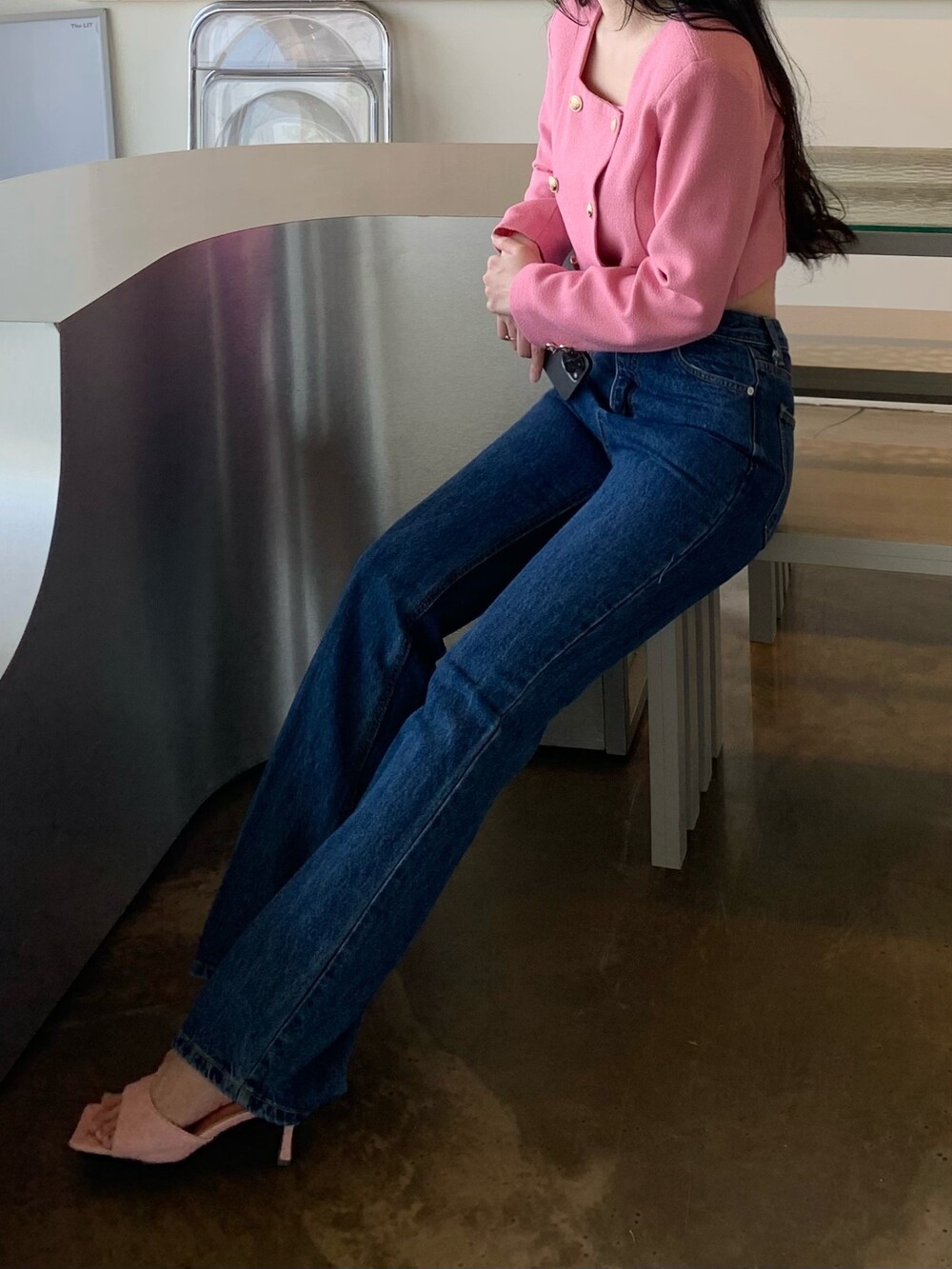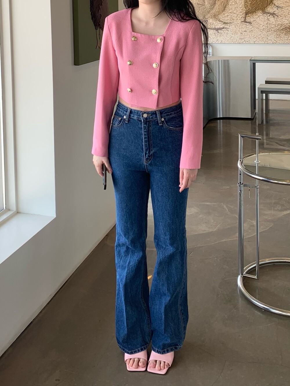 페미닌 무드의 신상 부츠컷 데님입니다.