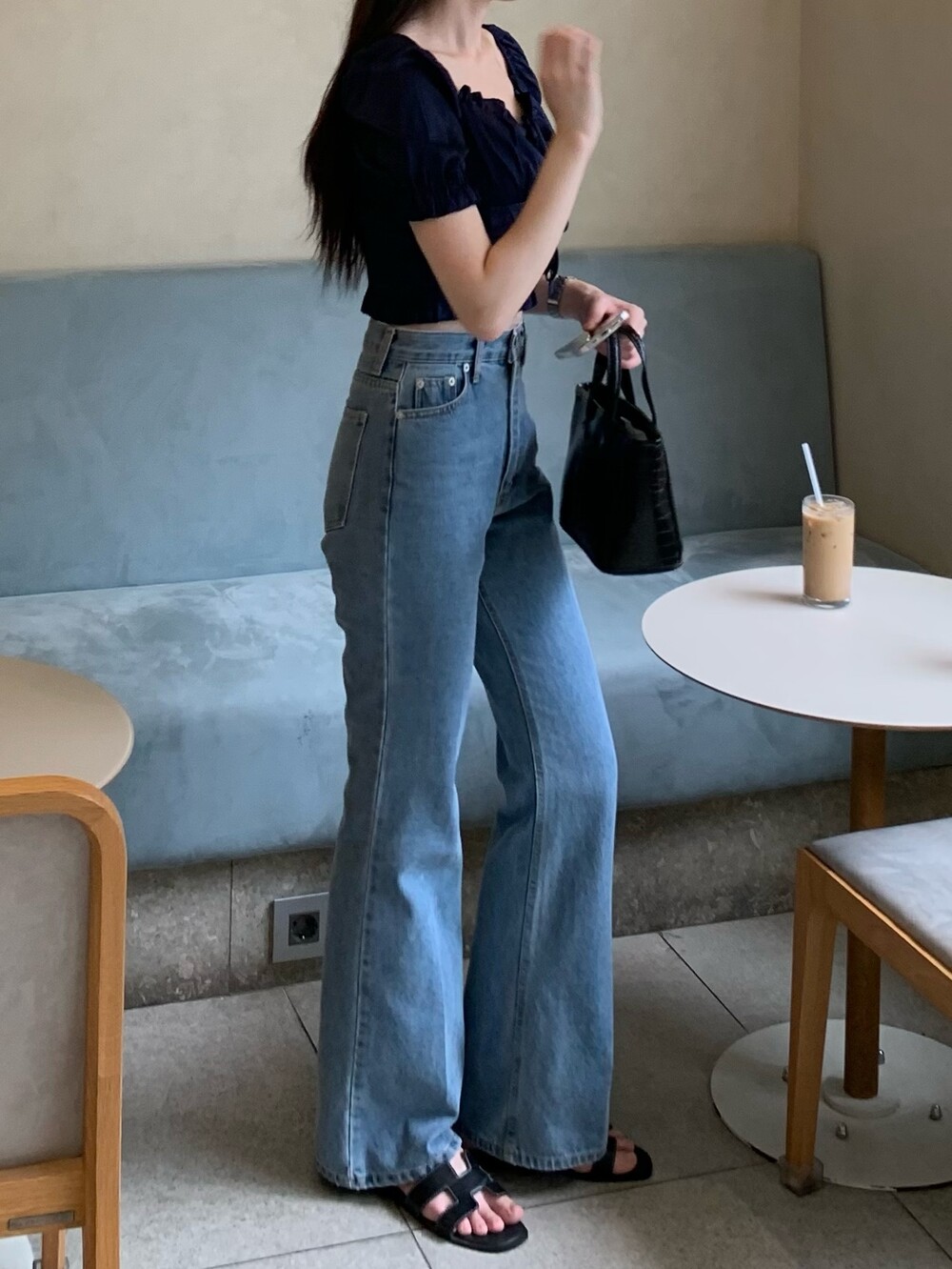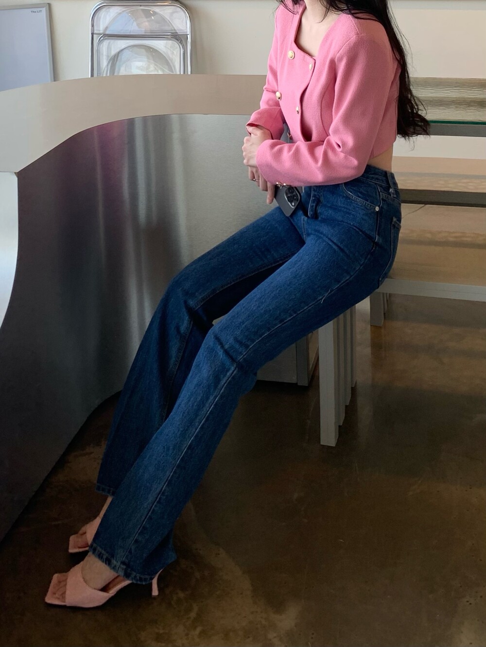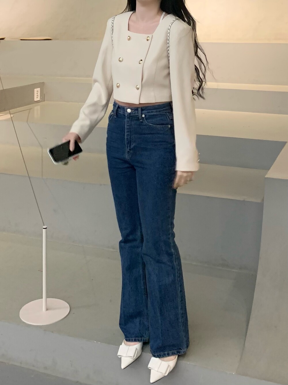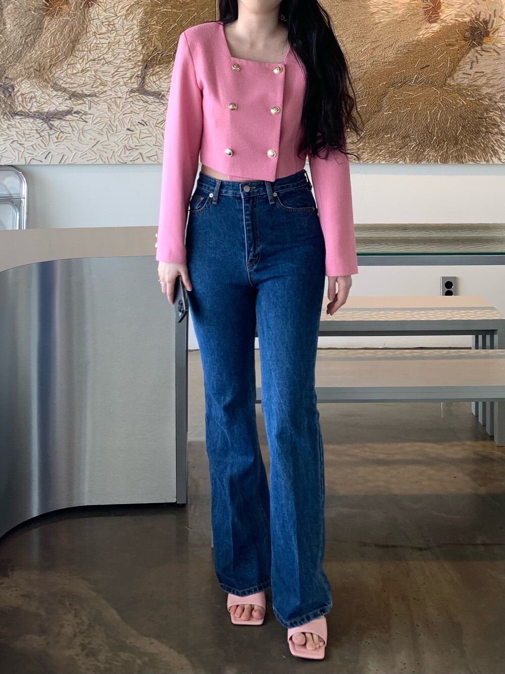 페미닌 무드의 신상 부츠컷 데님입니다.