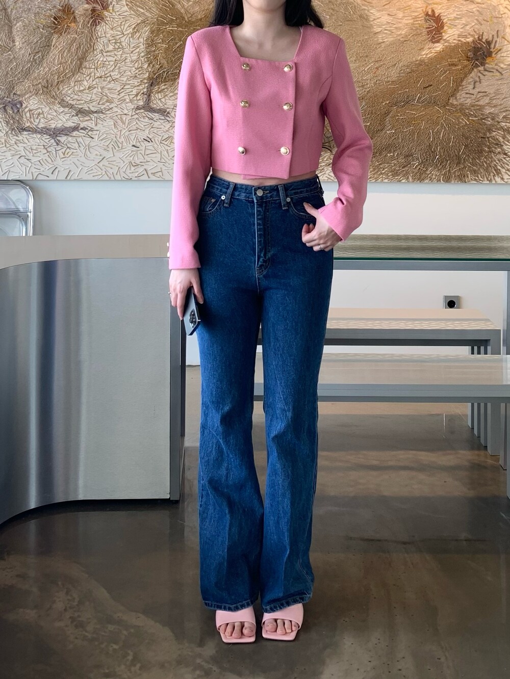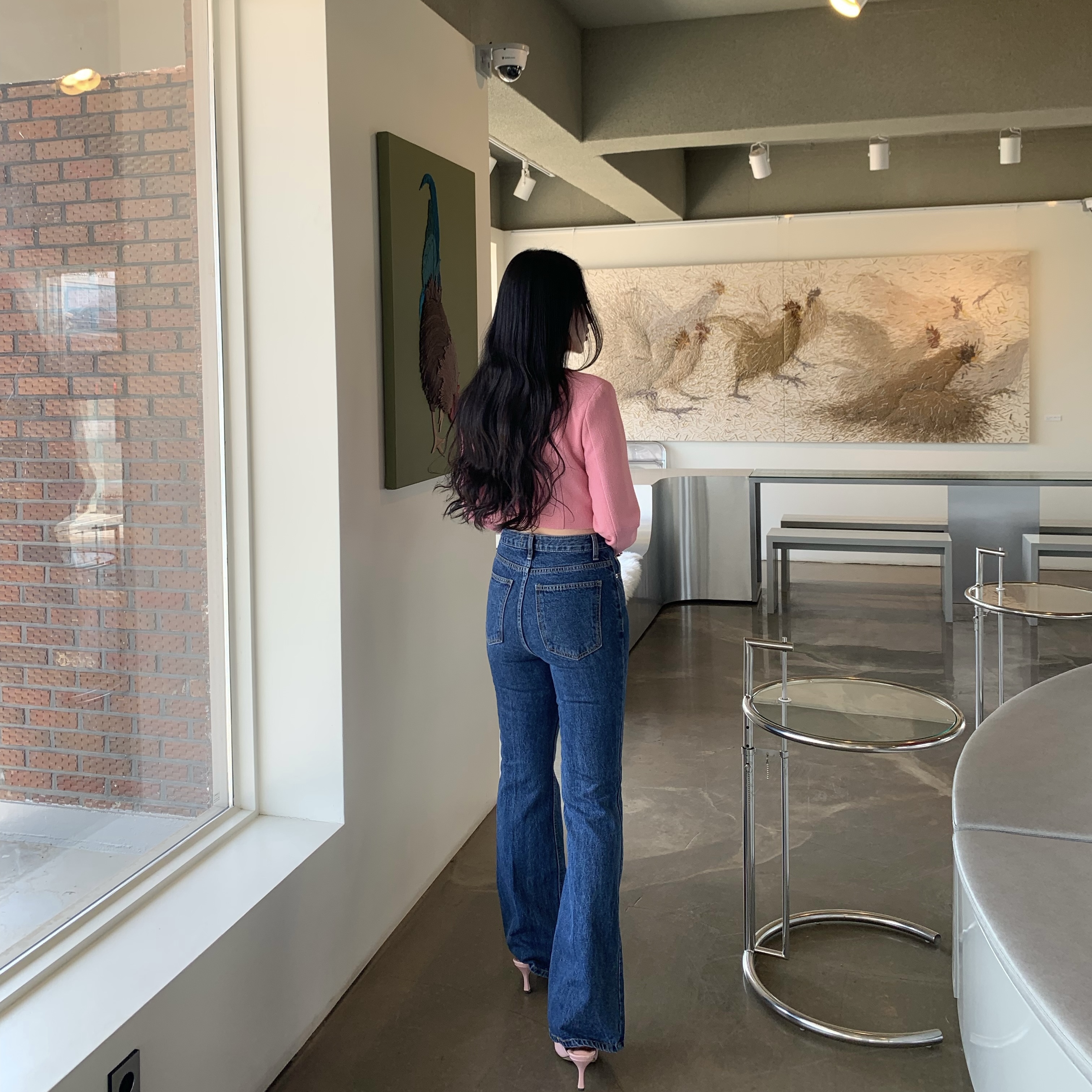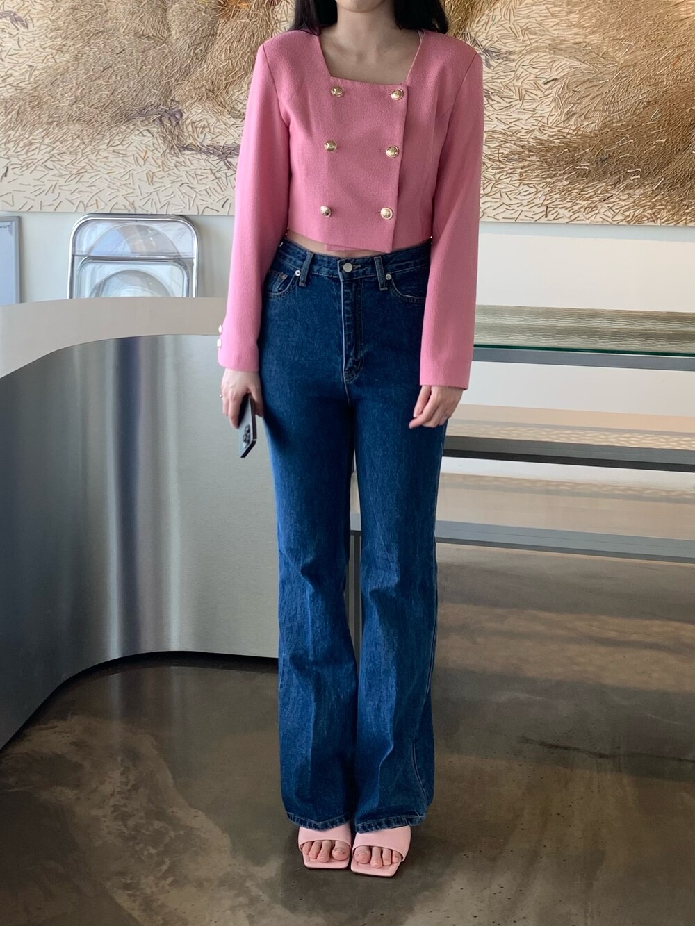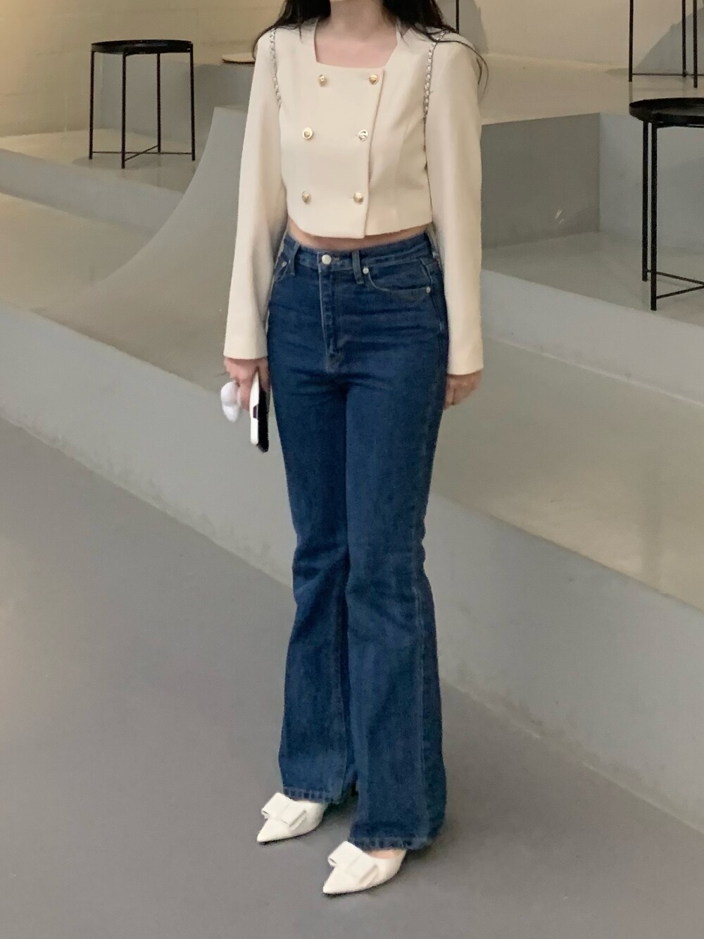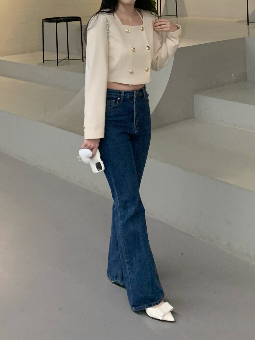페미닌 무드의 신상 부츠컷 데님입니다.