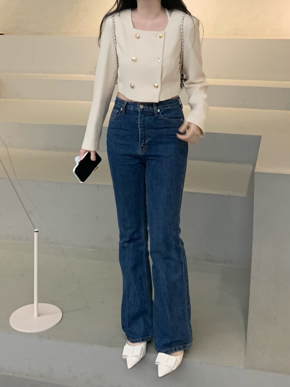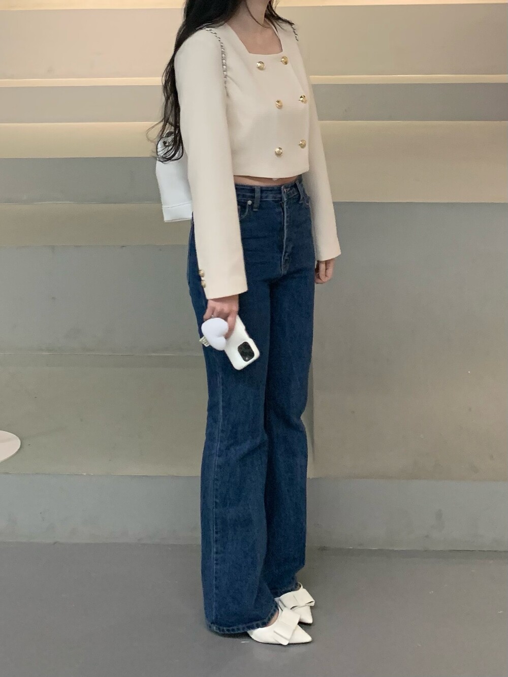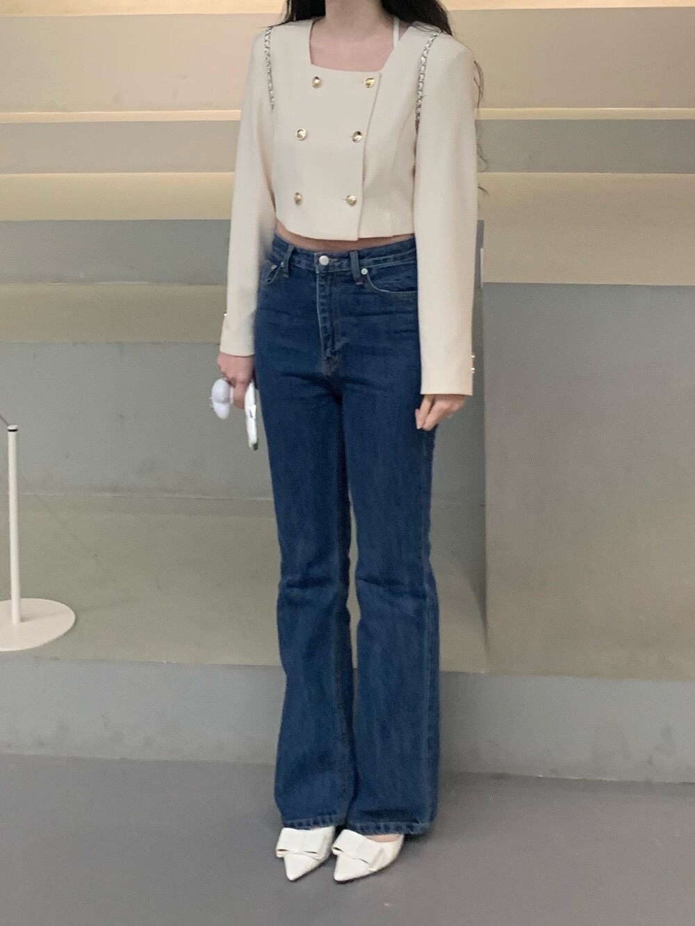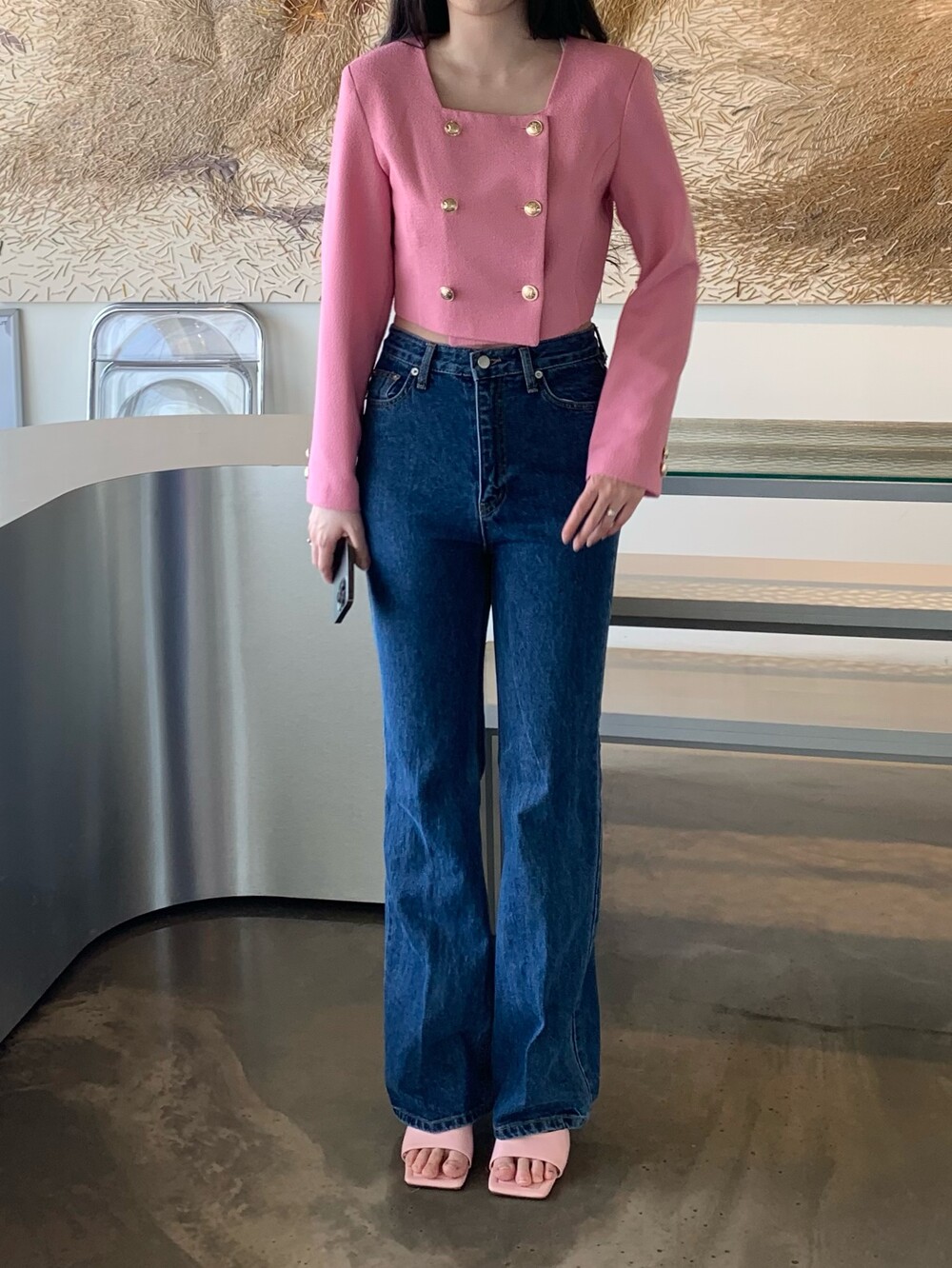 페미닌 무드의 신상 부츠컷 데님입니다.