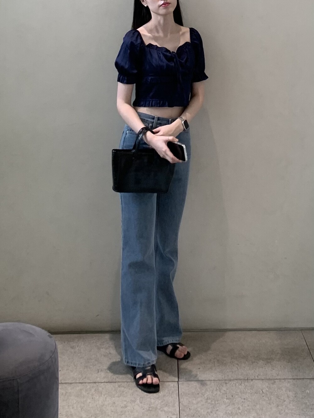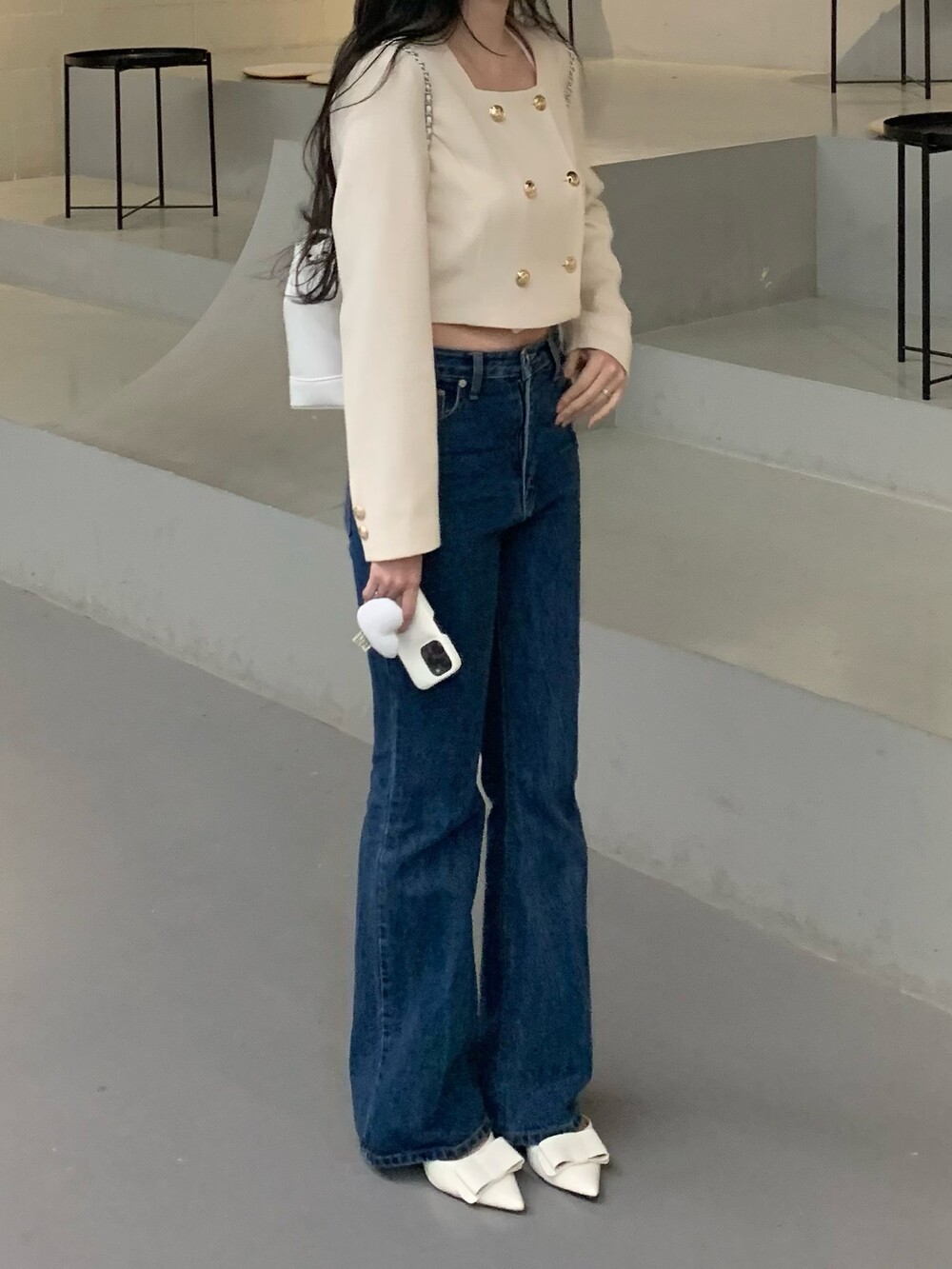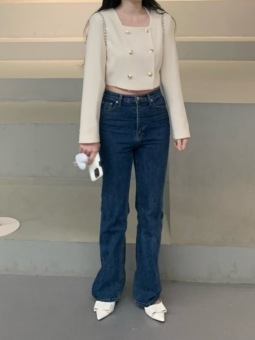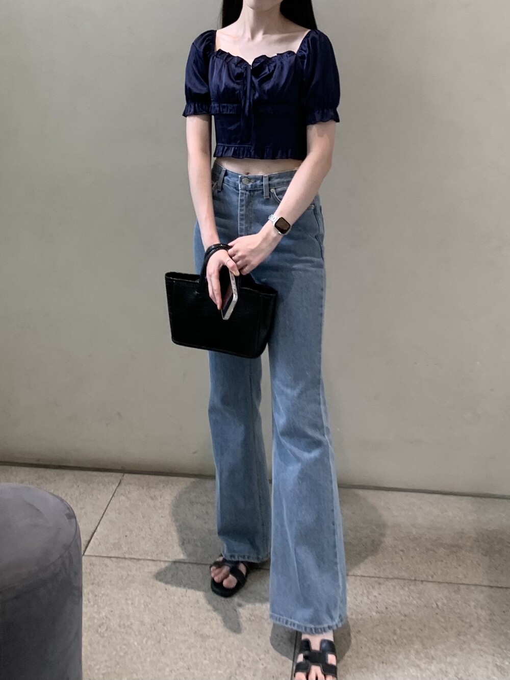 페미닌 무드의 신상 부츠컷 데님입니다.