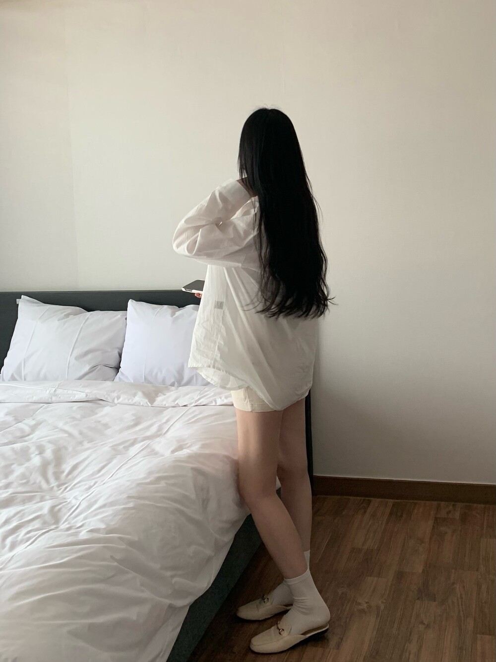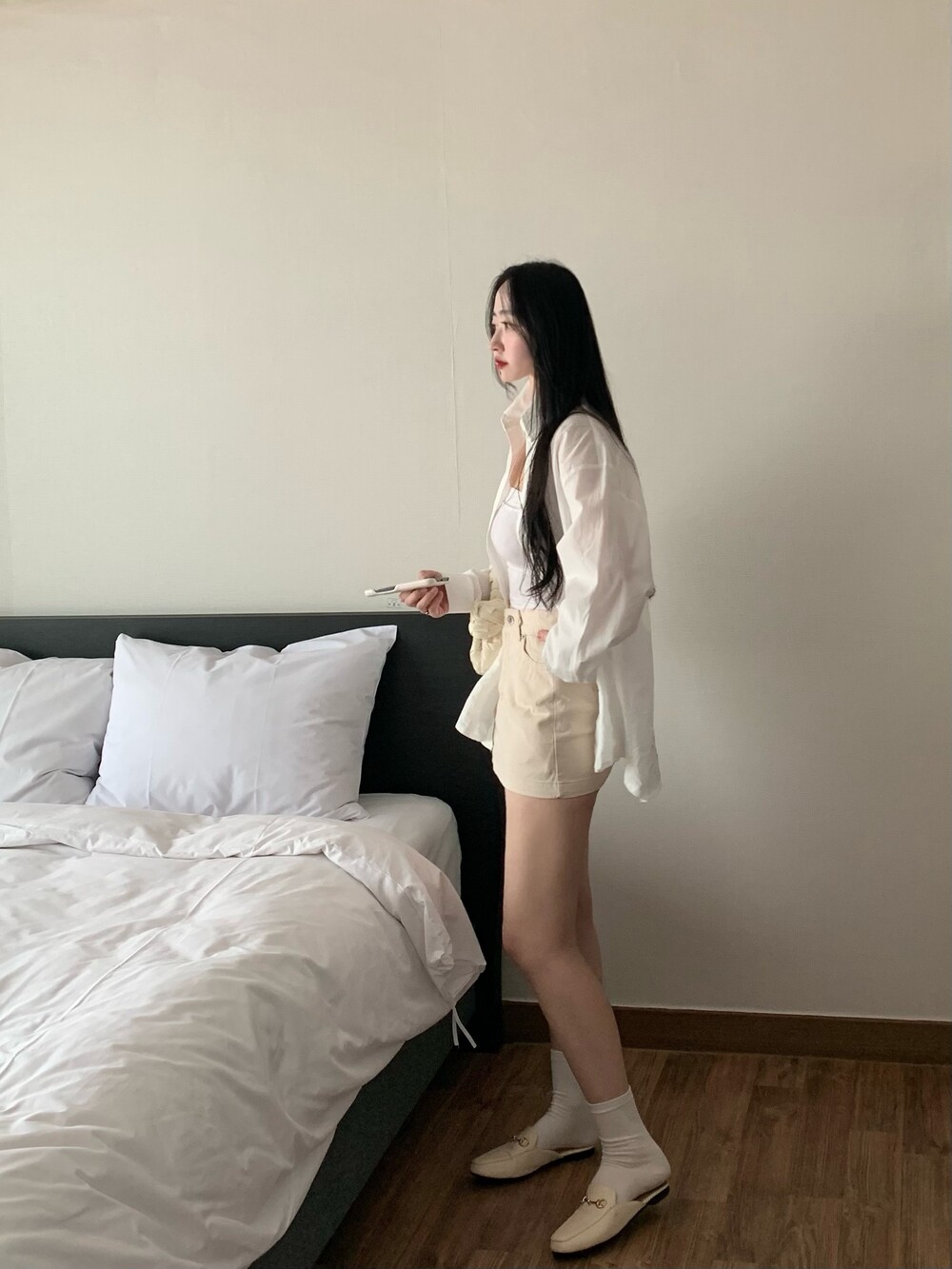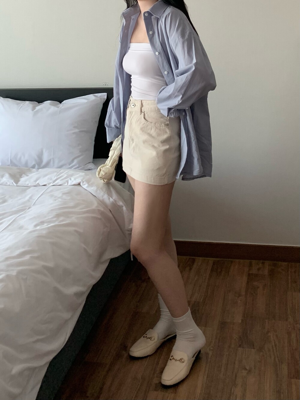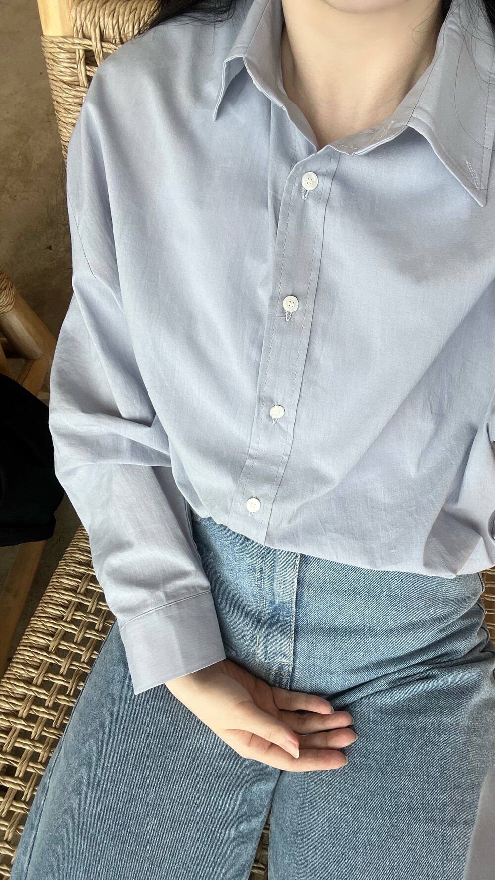 보이프렌드 핏의 오버핏 셔츠로 사이즈 구애없이
