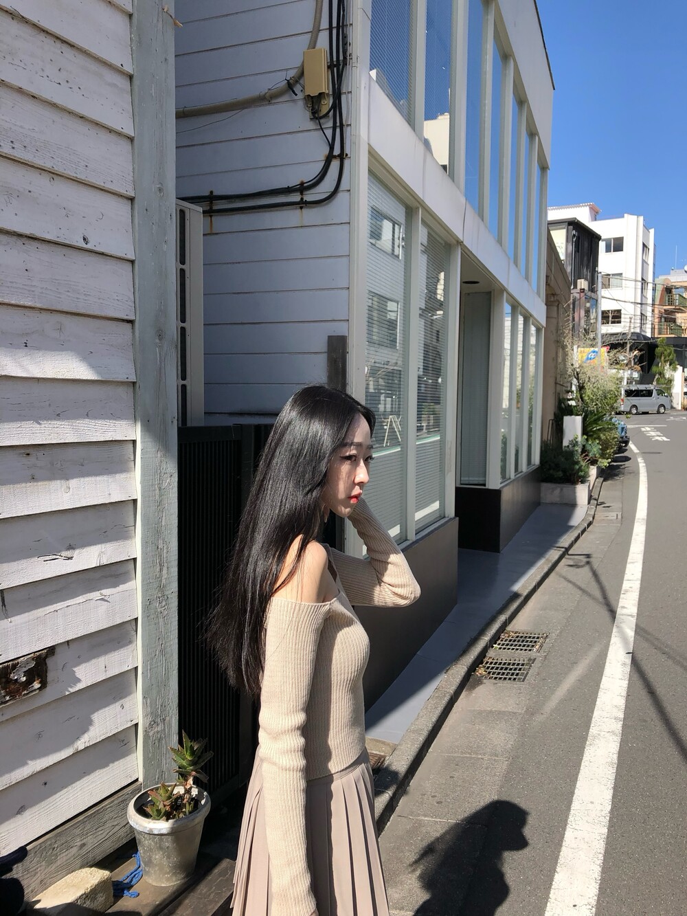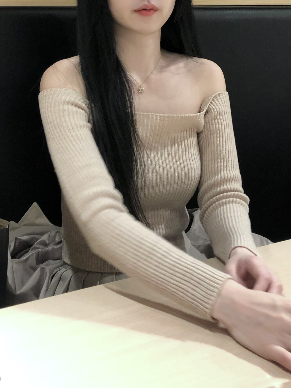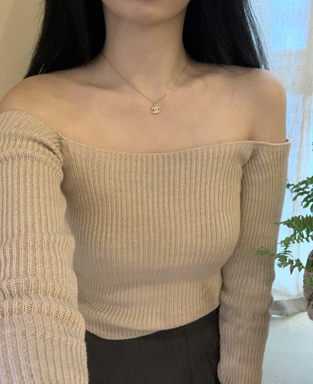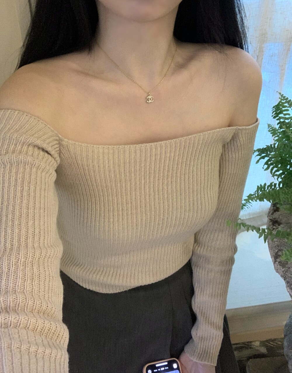slim off shoulder knit (4color) 오프숄더