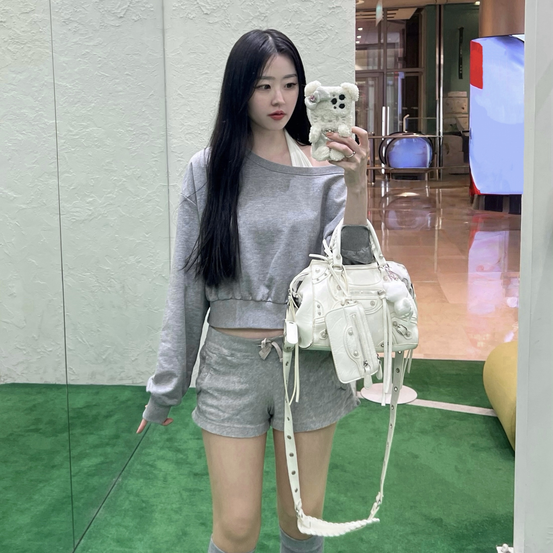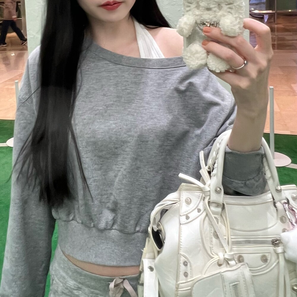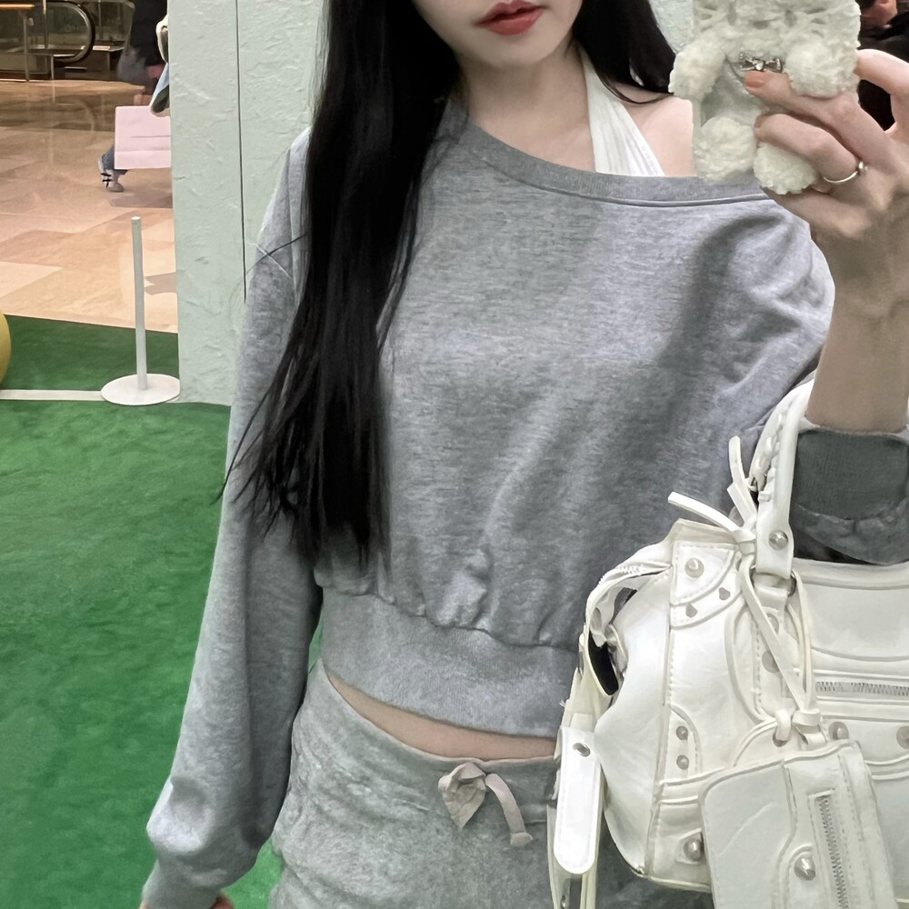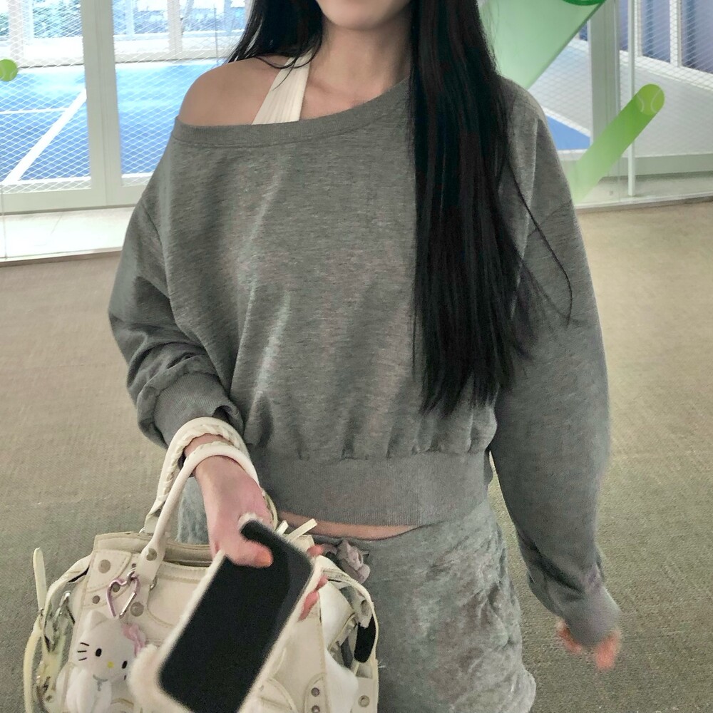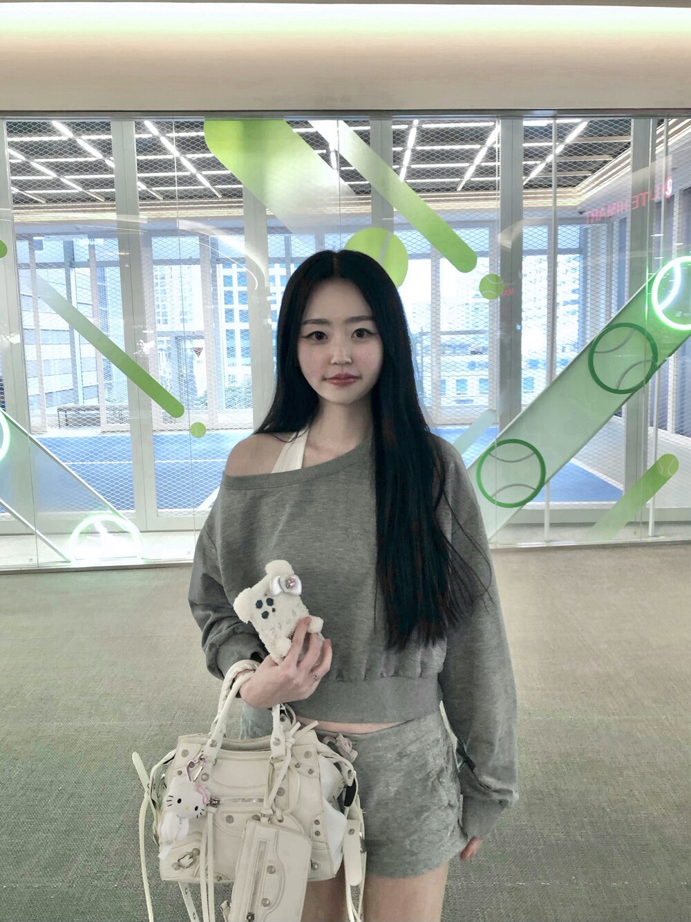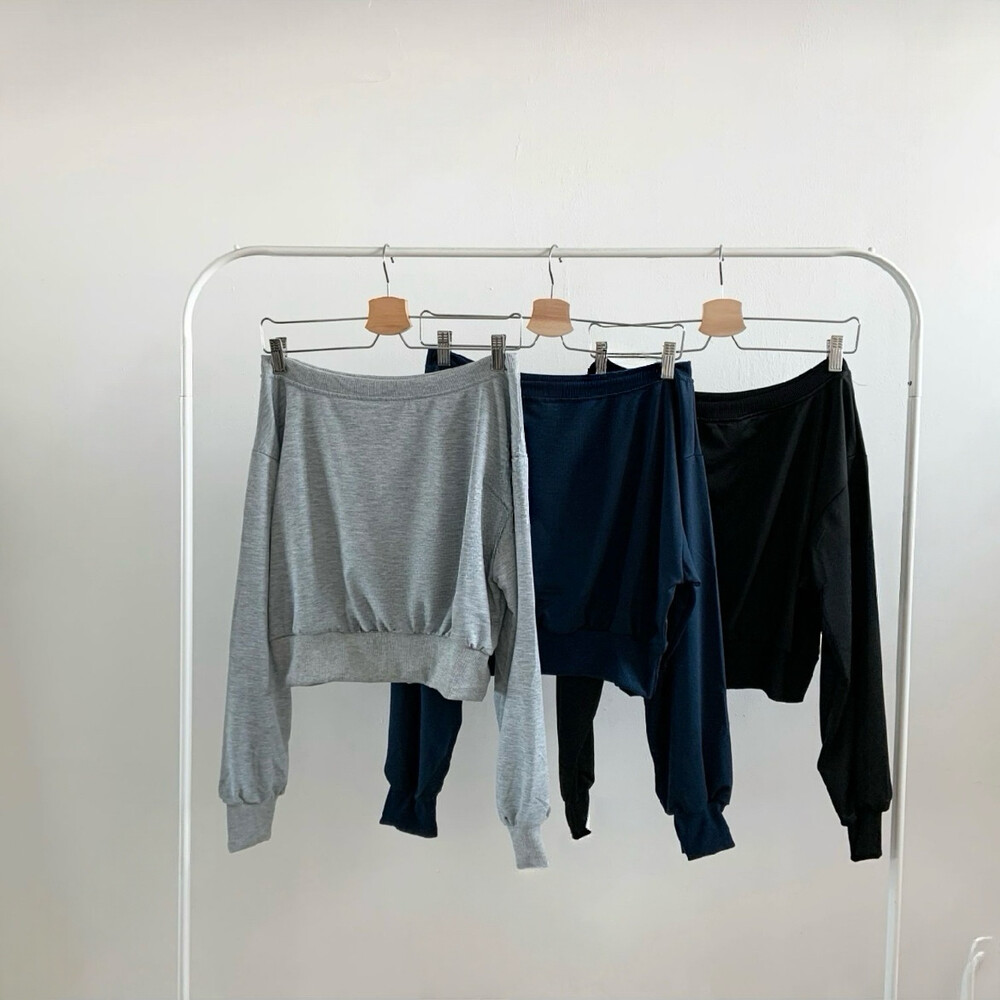 캐주얼 무드의 신상 원숄더 크롭 맨투맨 소개해드려요.