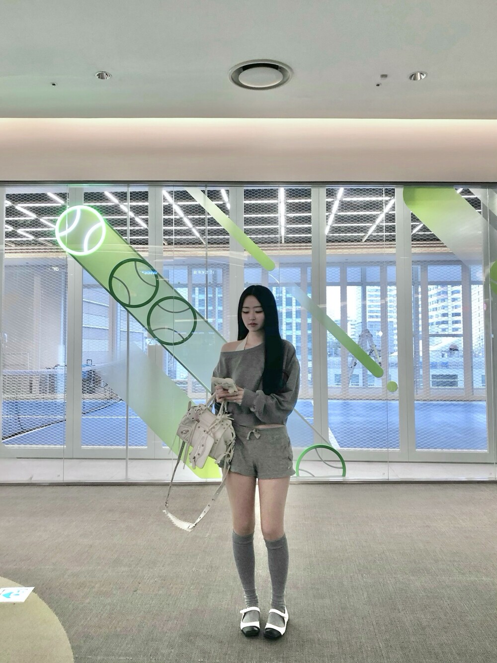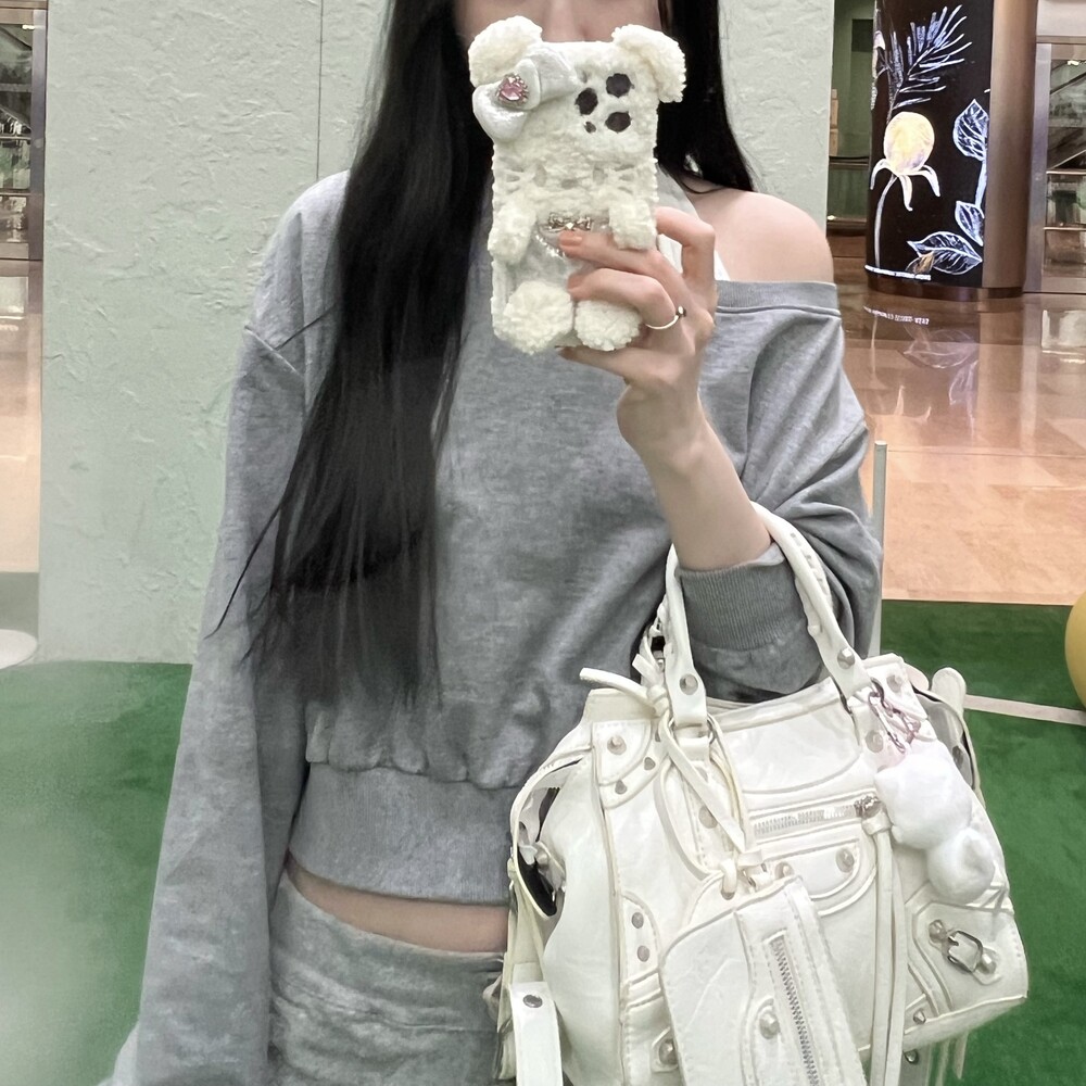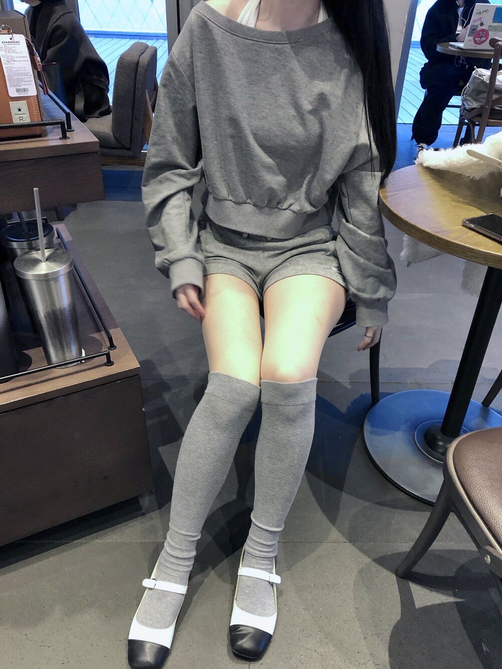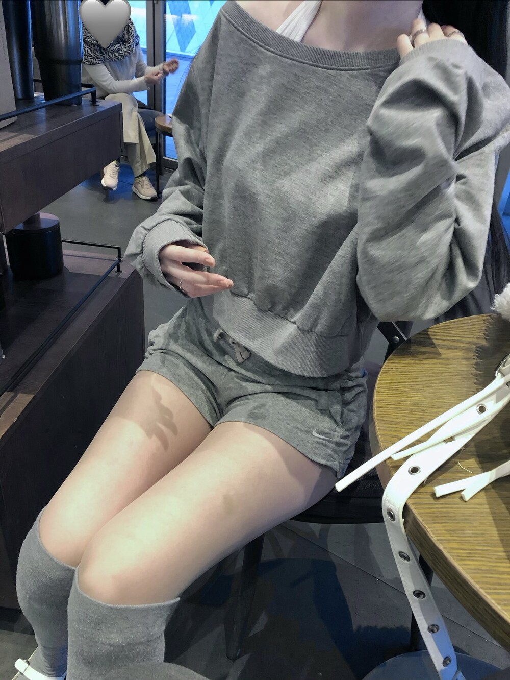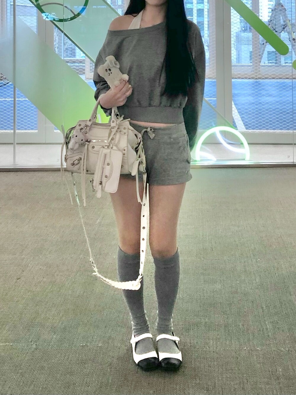 캐주얼 무드의 신상 원숄더 크롭 맨투맨 소개해드려요.