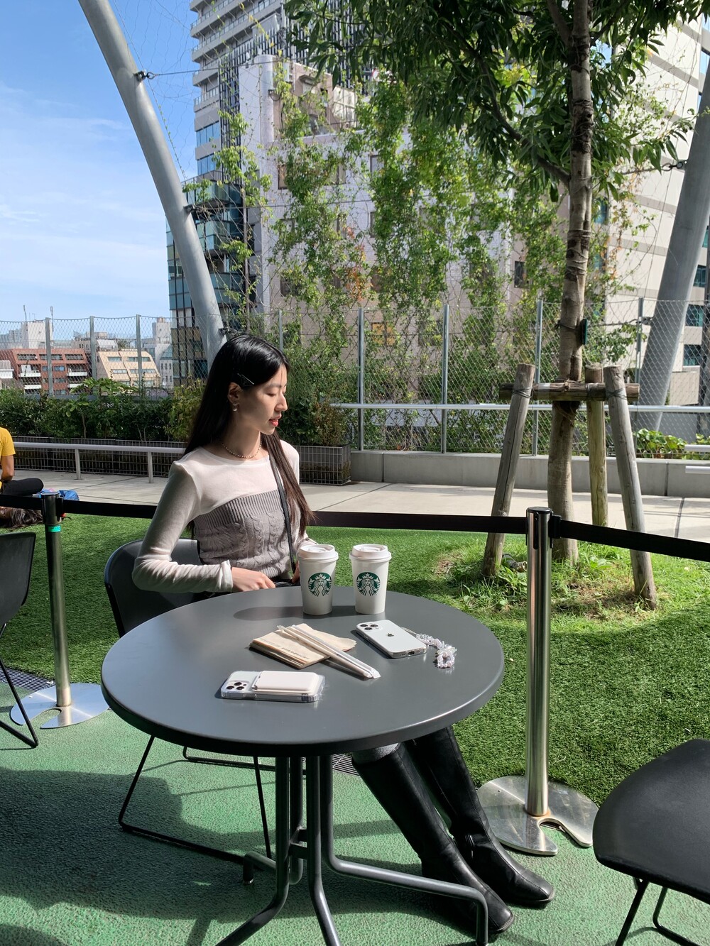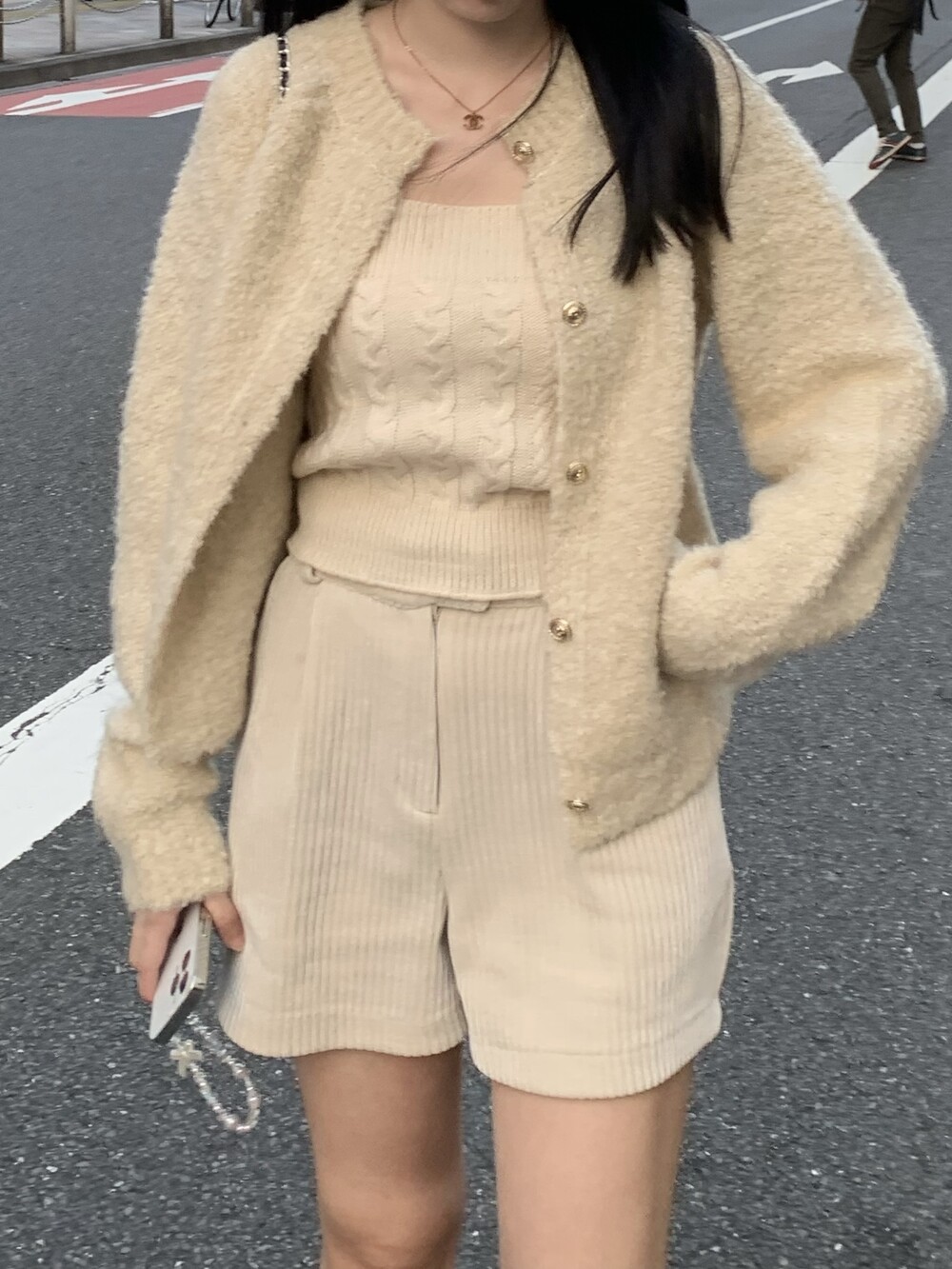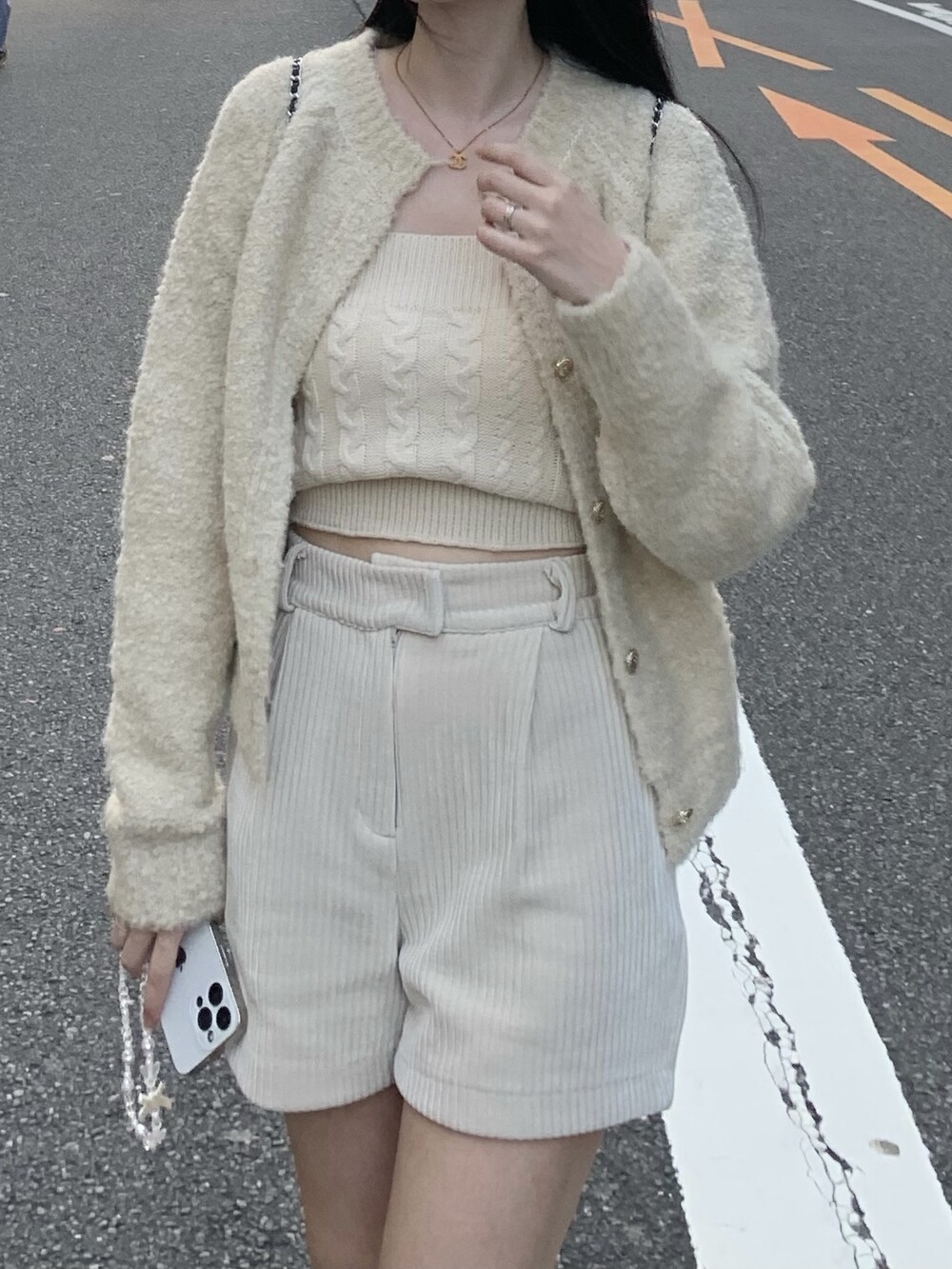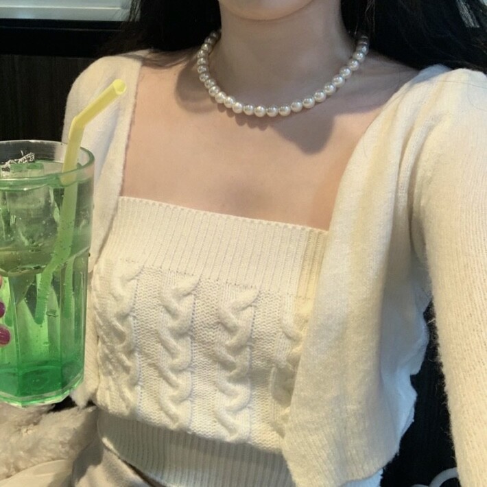 가디건과 함께 단독으로 착용하기에도 좋은 탑이에요.
