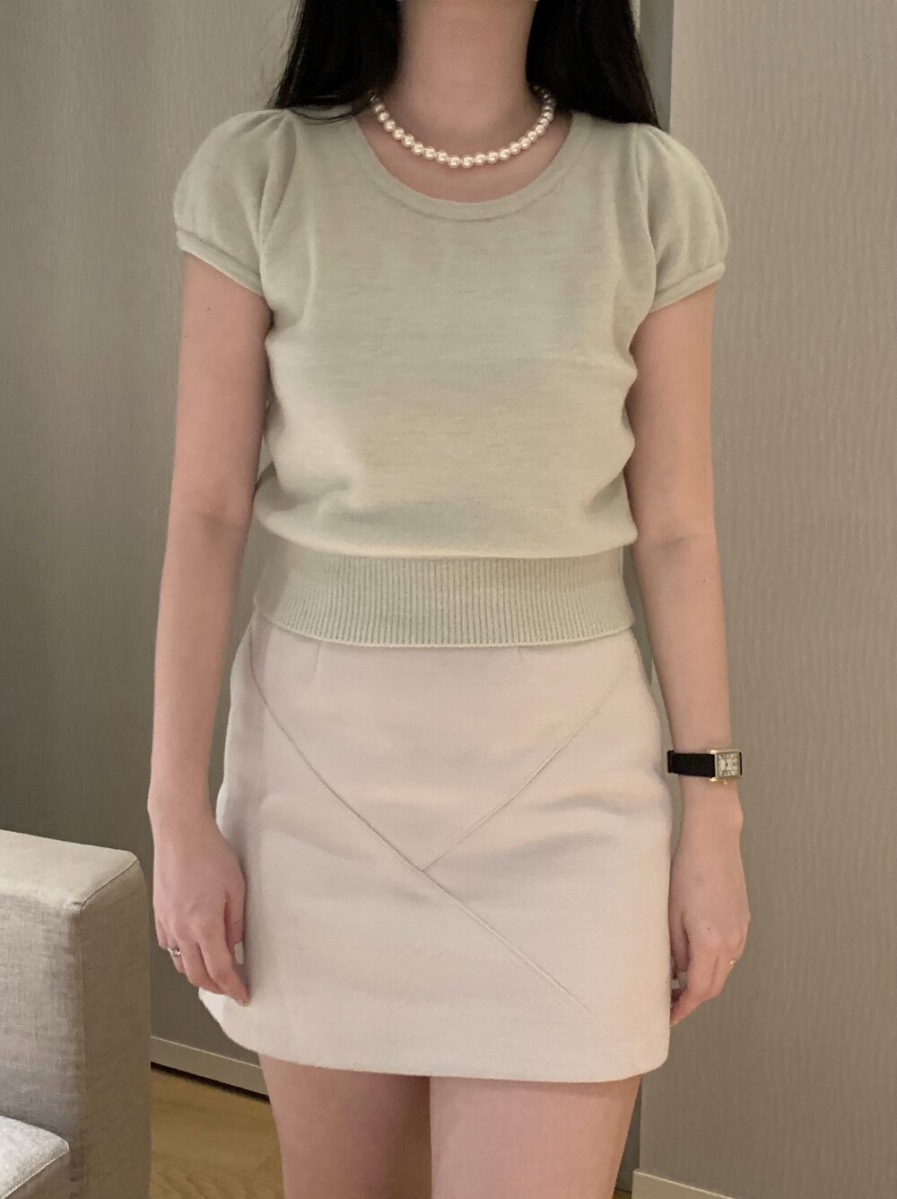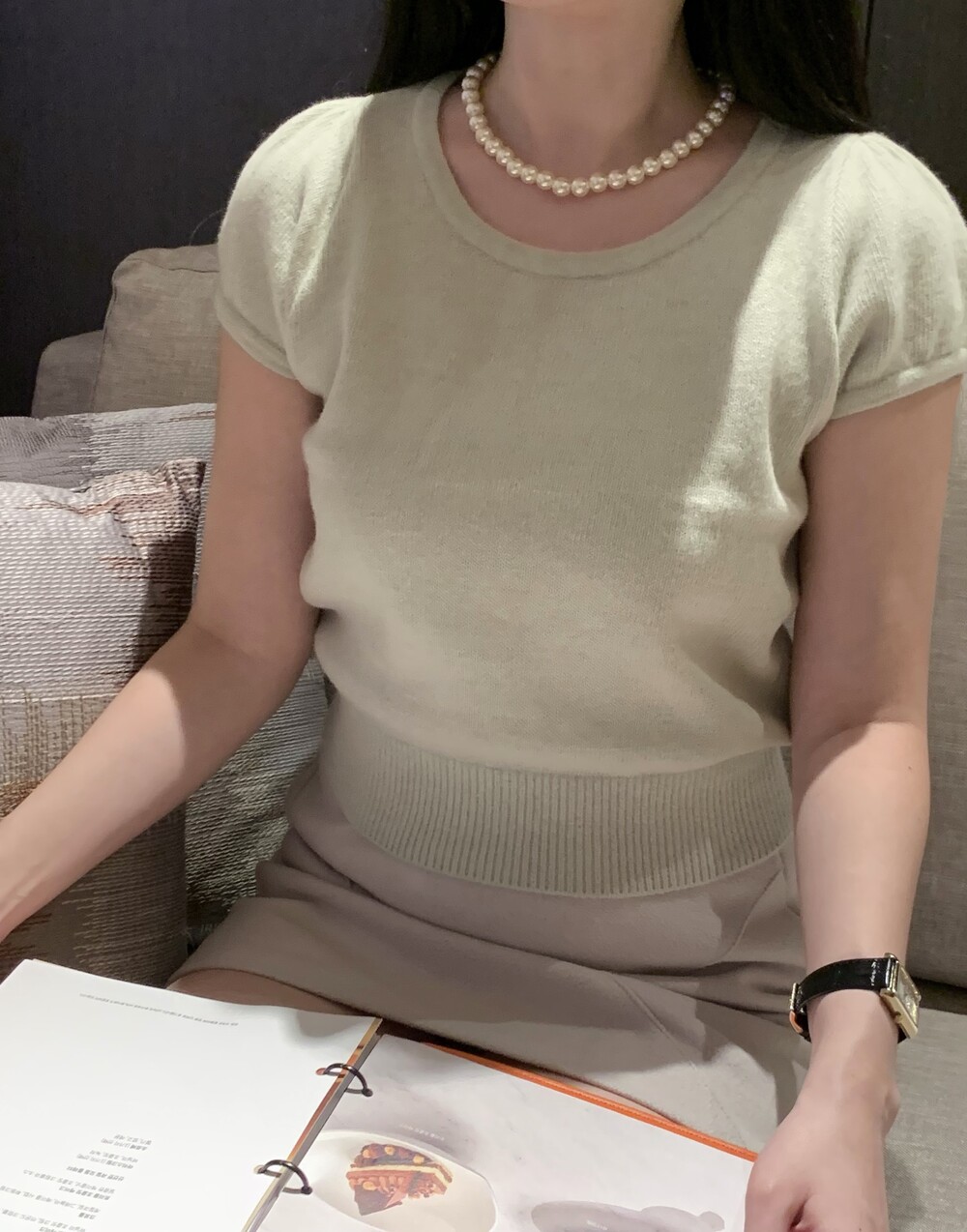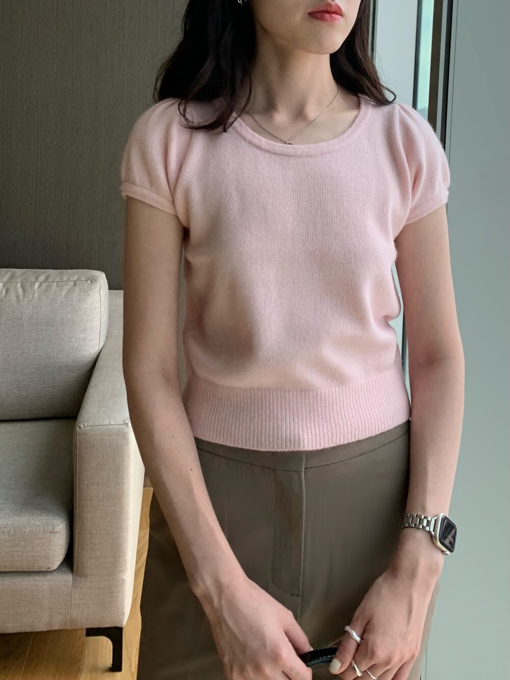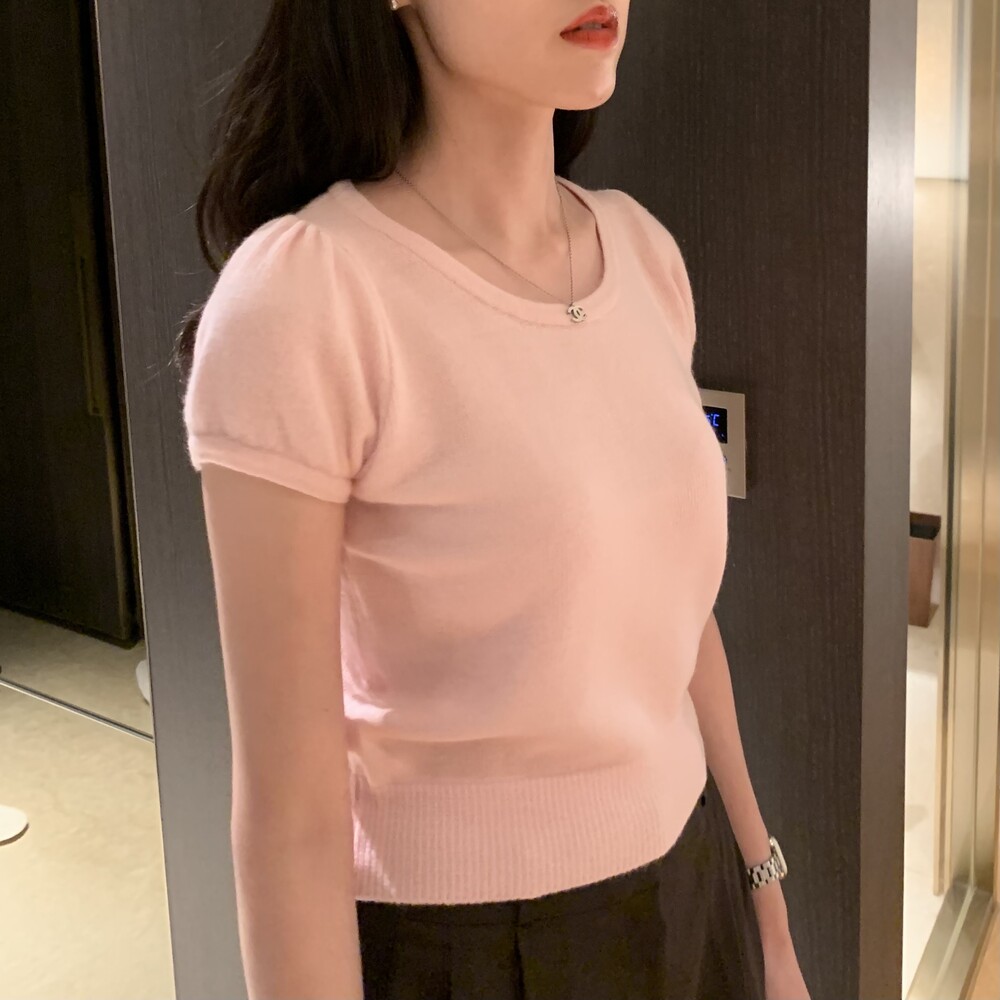 폭닥폭닥한 촉감의 U넥 반팔 니트입니다.