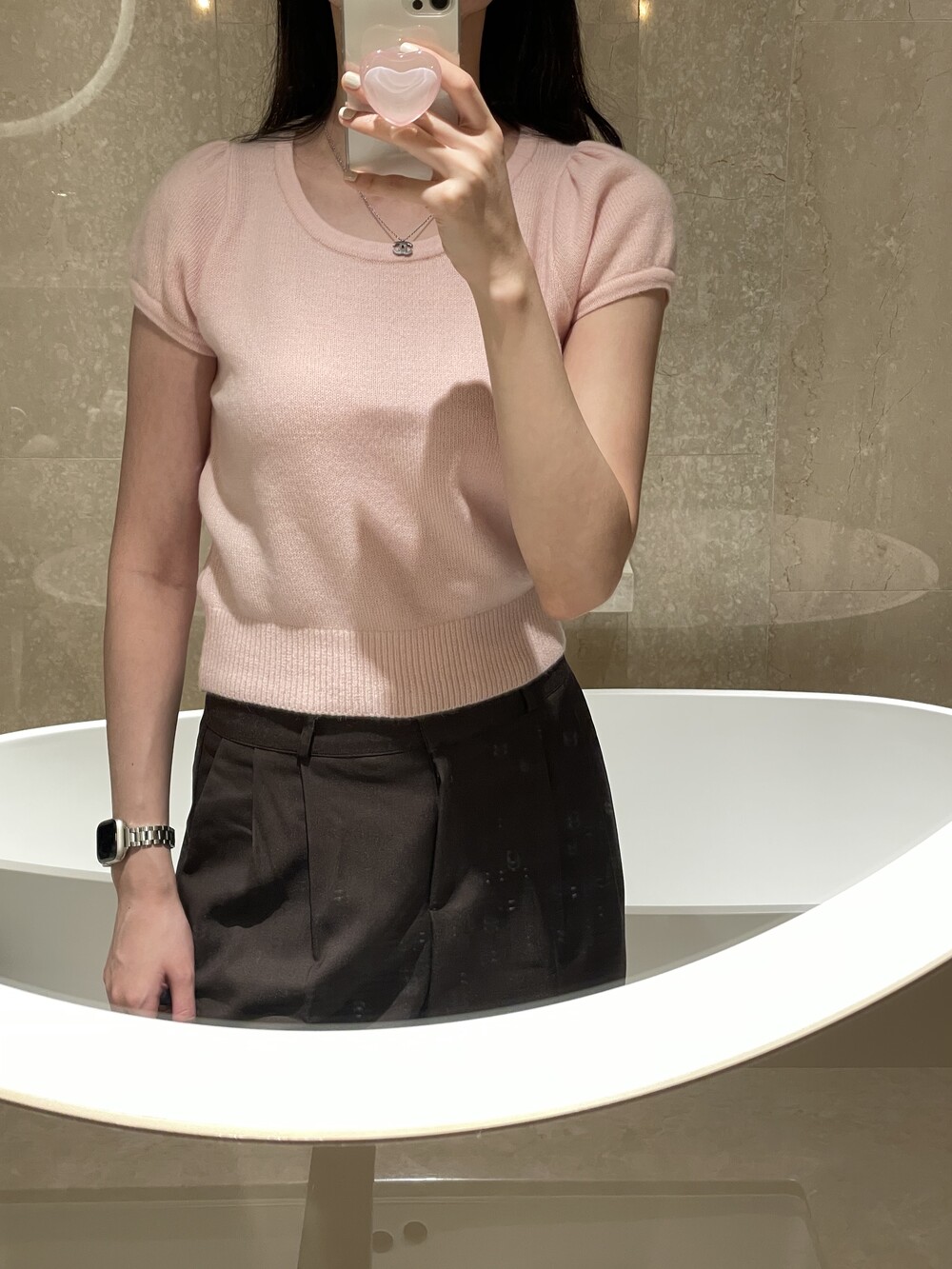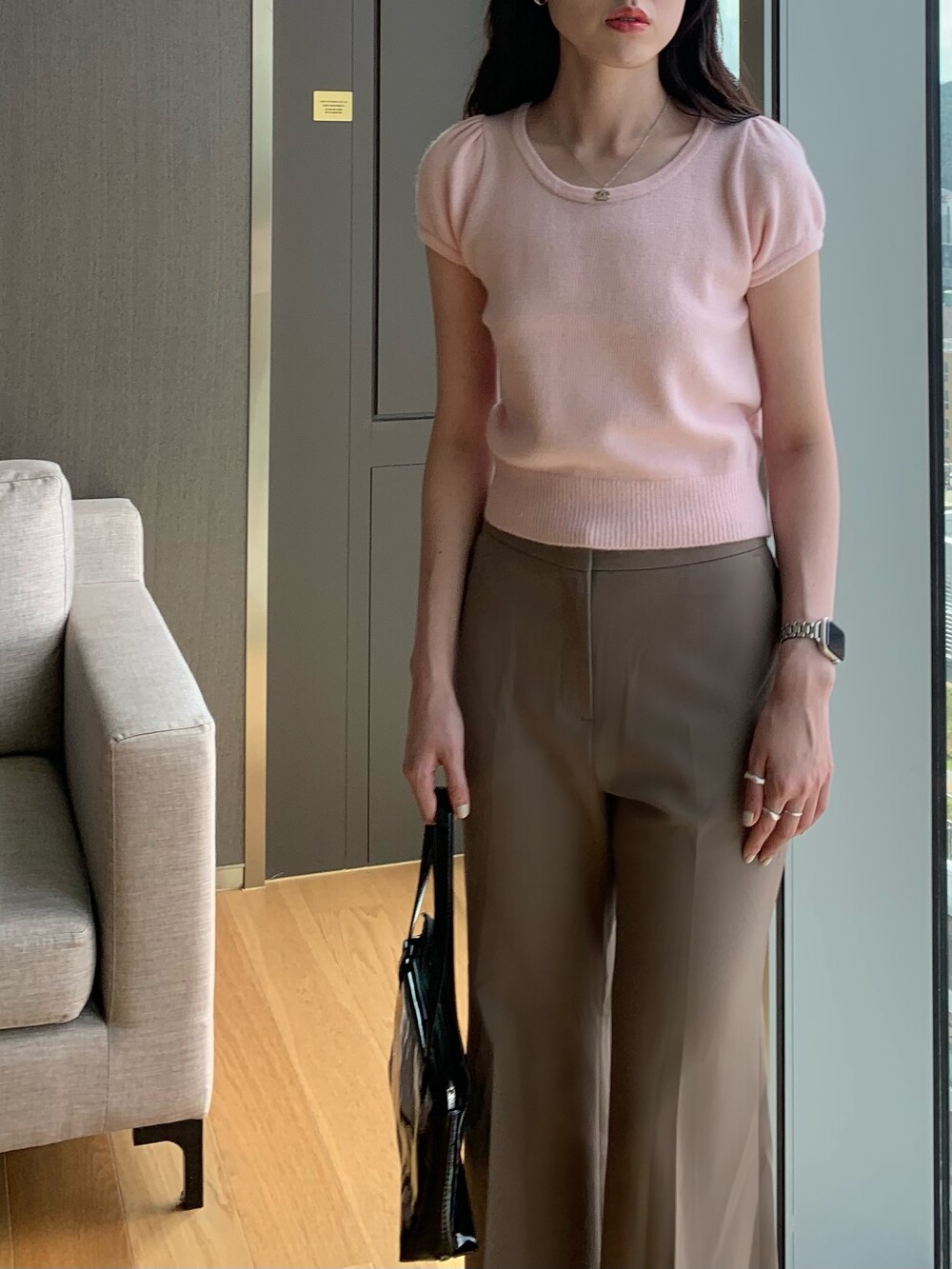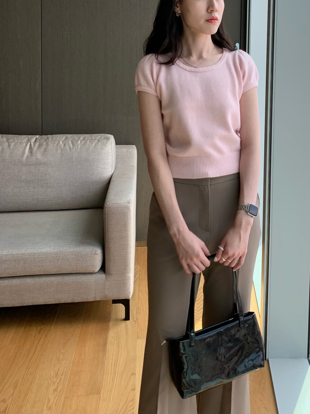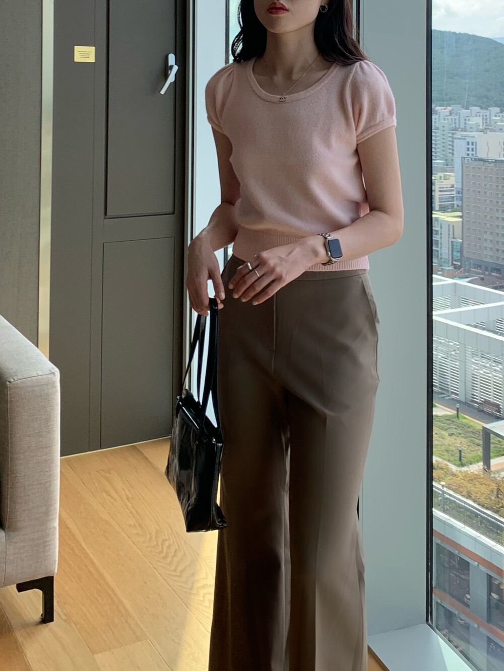 폭닥폭닥한 촉감의 U넥 반팔 니트입니다.