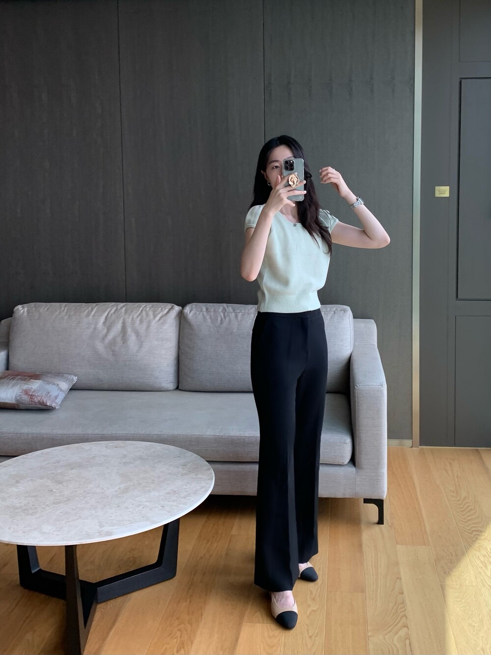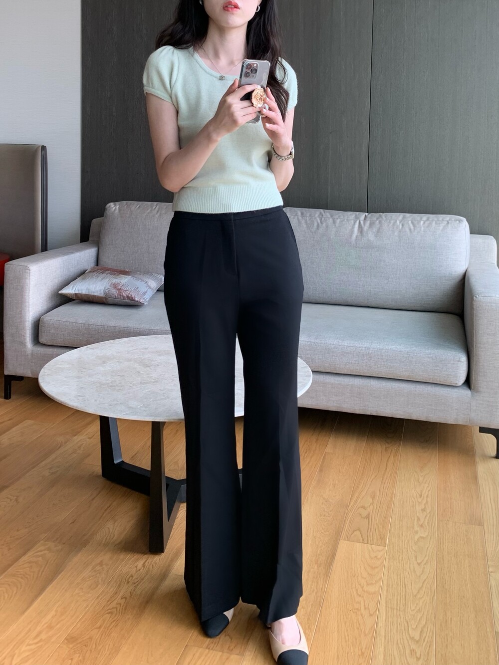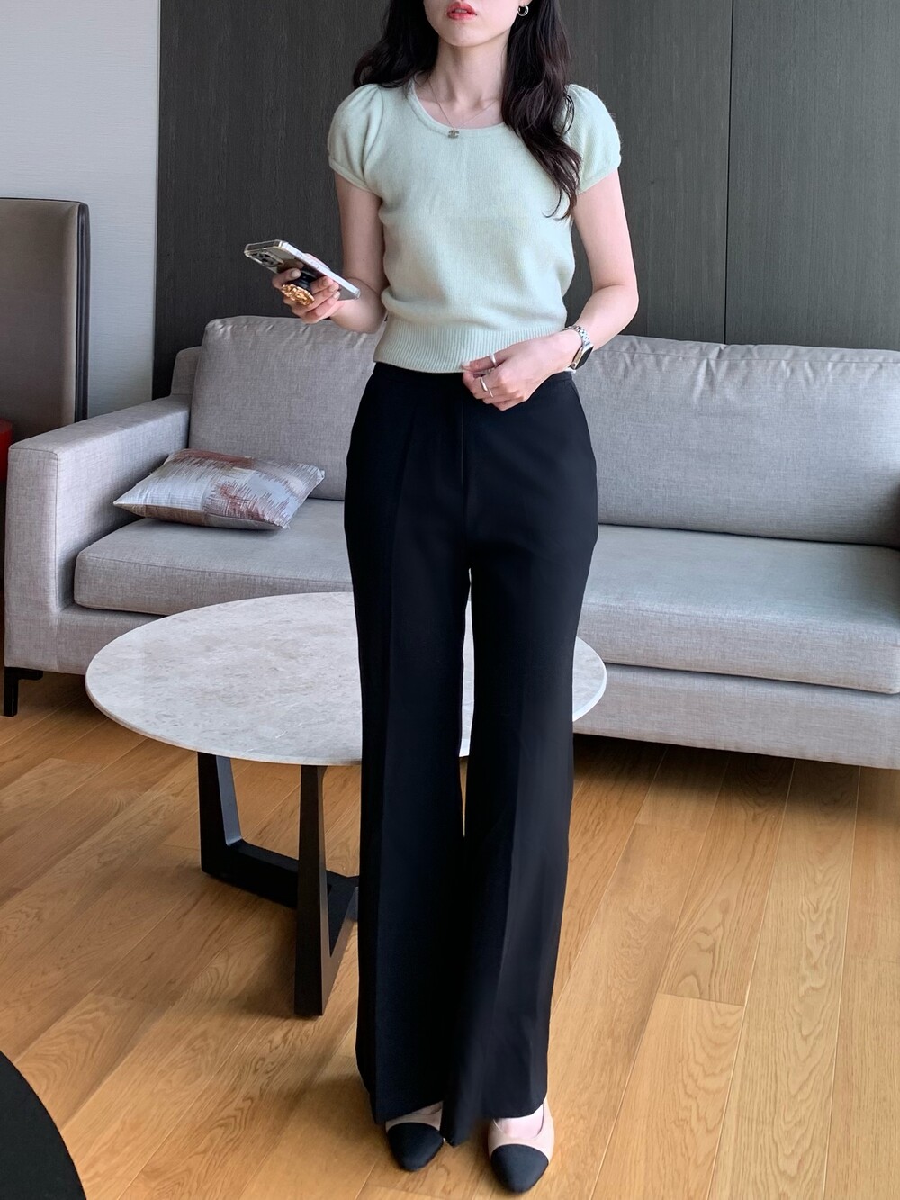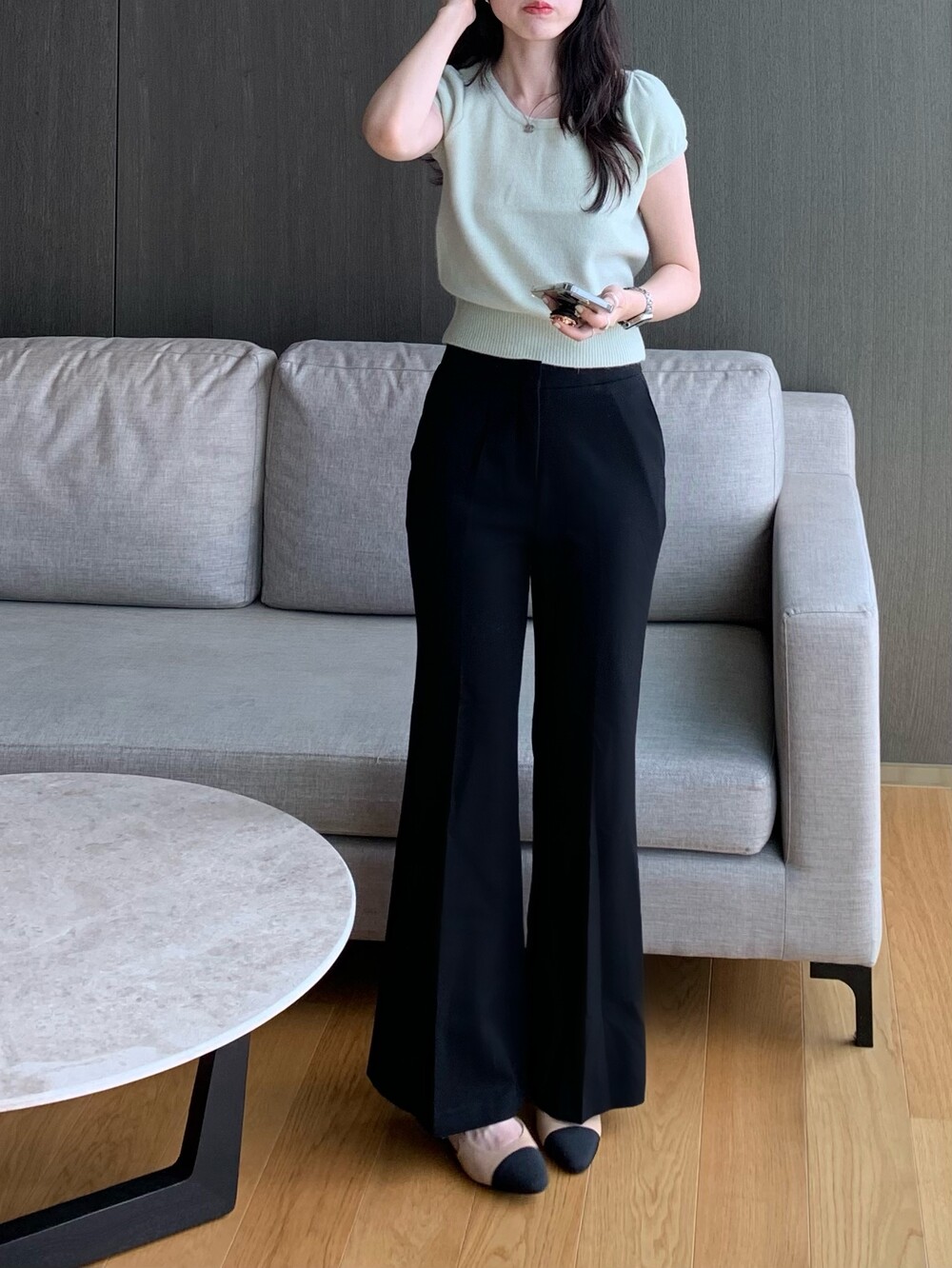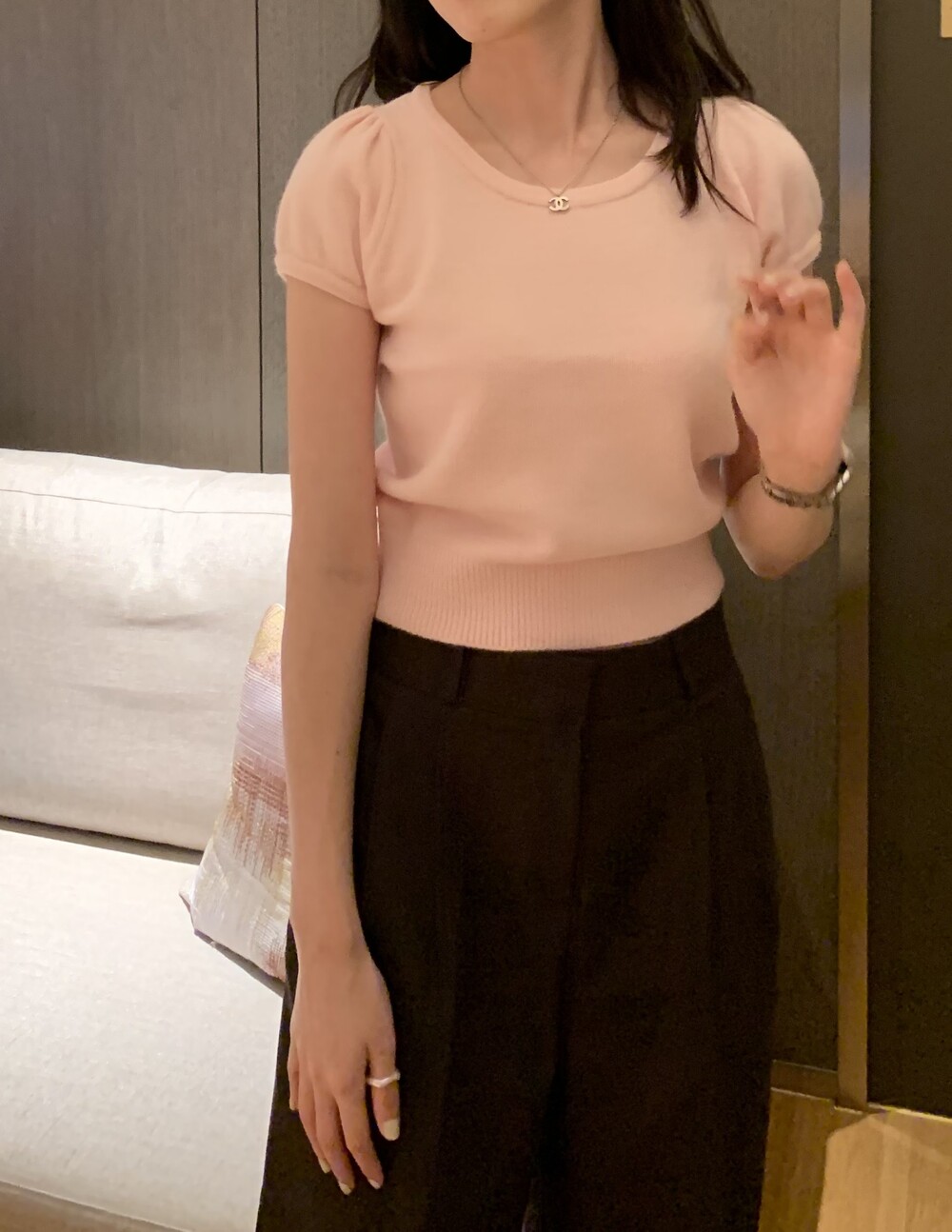 우아한 무드의 신상 울 퍼프 니트입니다.