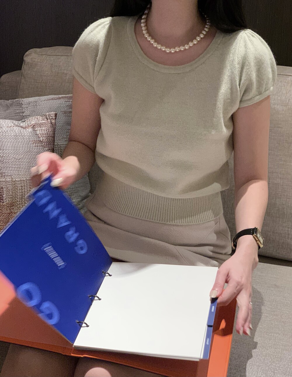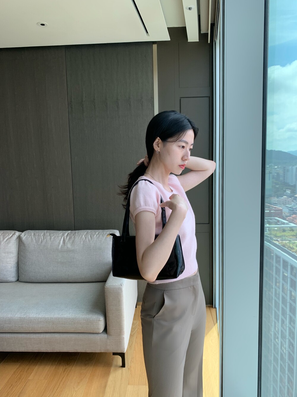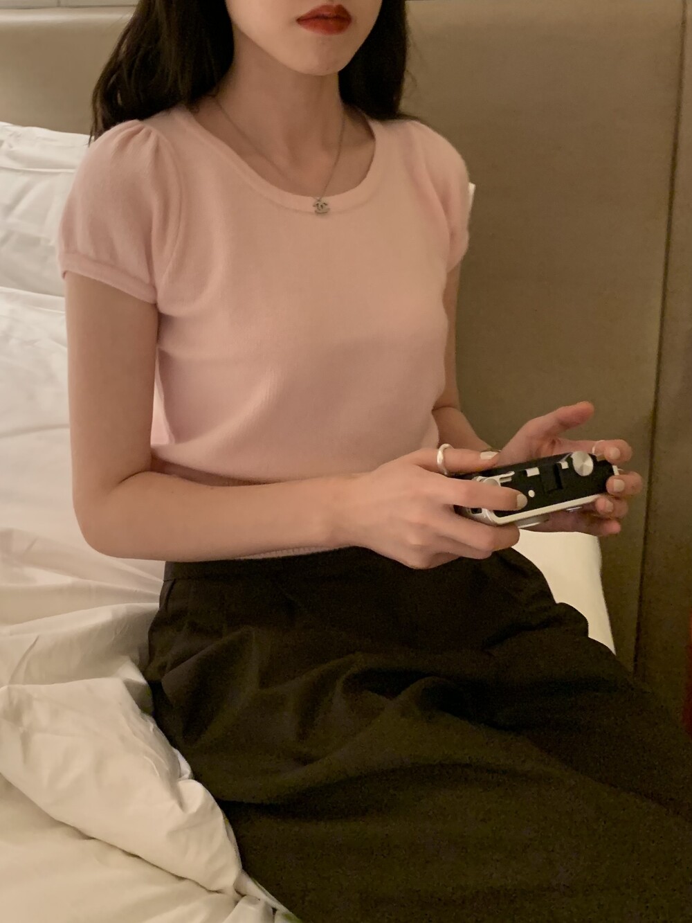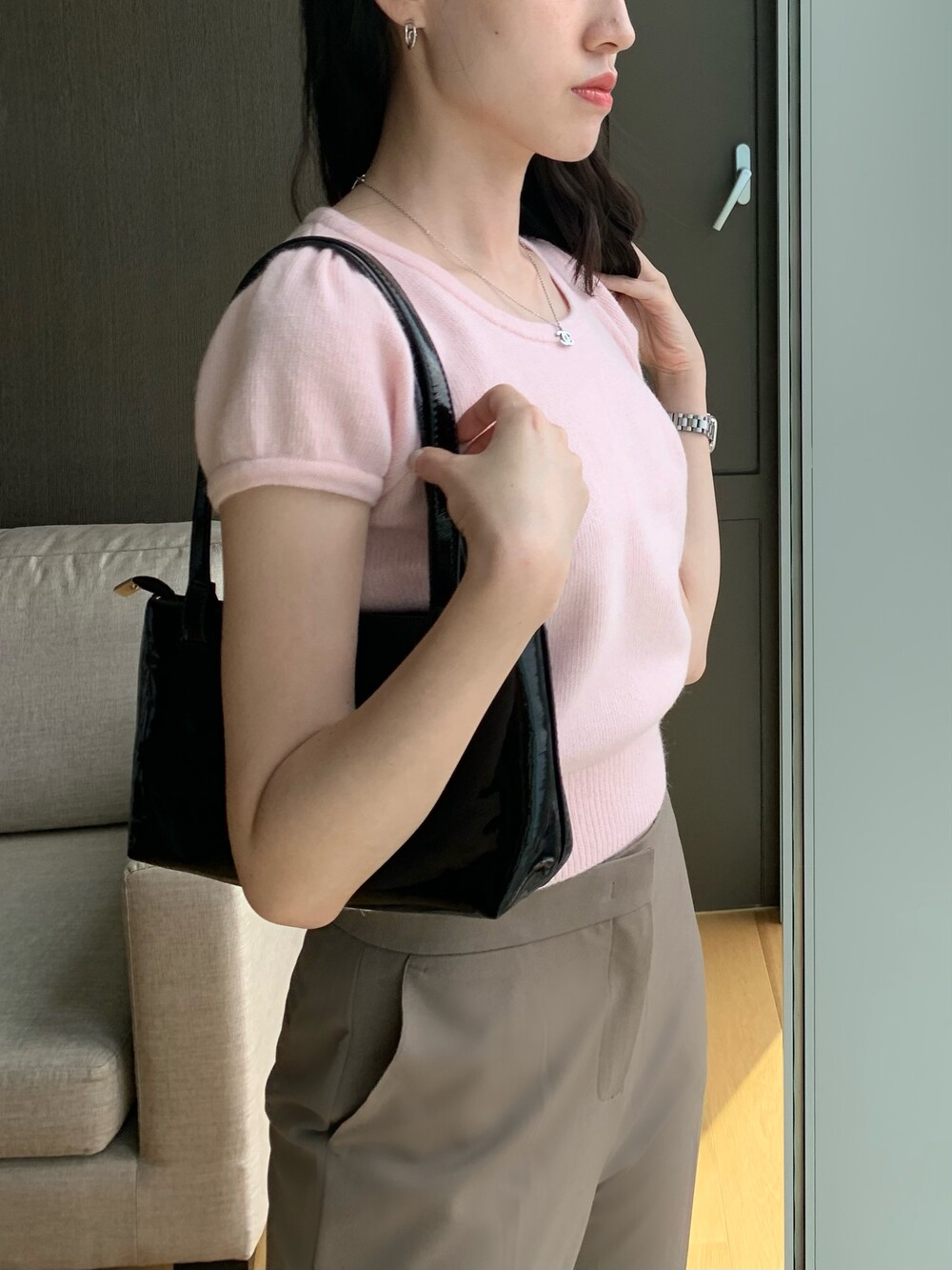 퍼프 소매 디테일로 포인트를 주었습니다.
