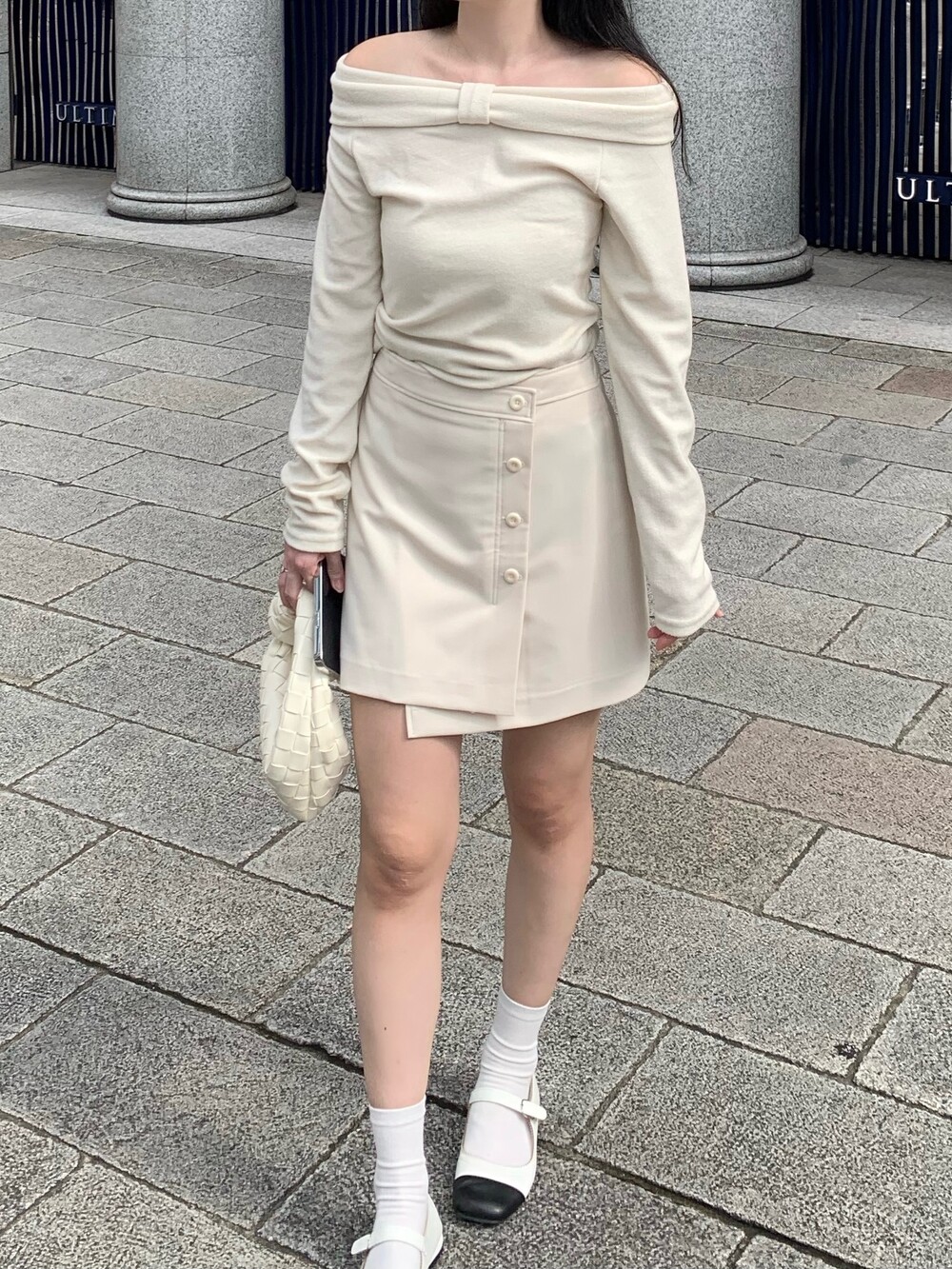 미니멀한 무드의 신상 사선 랩스커트 소개해드려요.