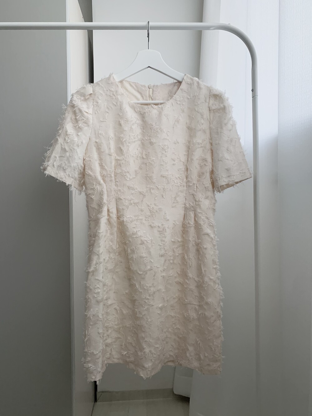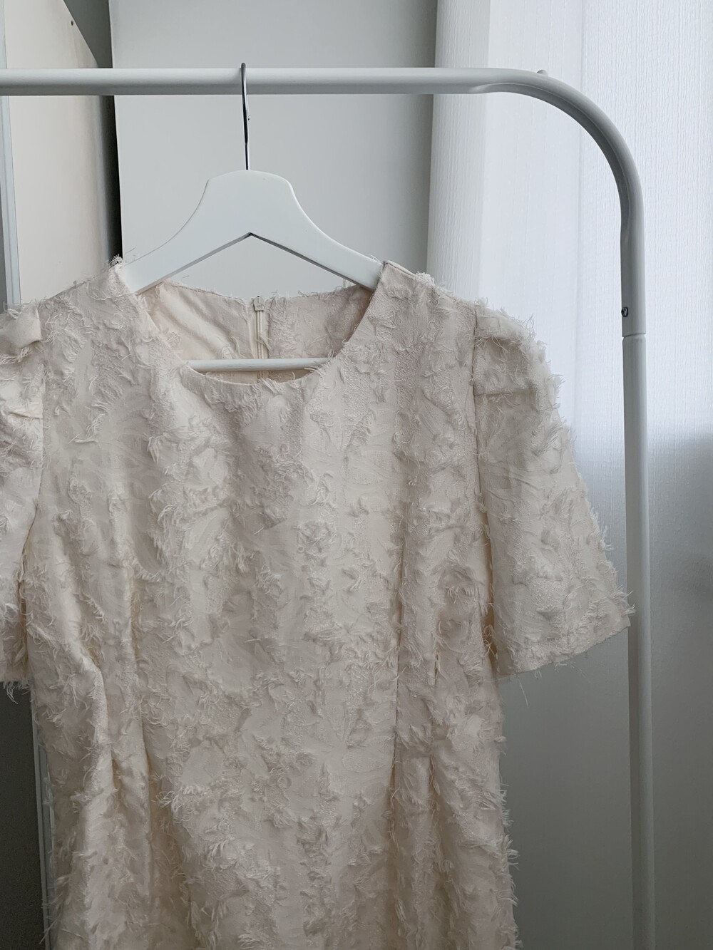 라운드 넥라인과 A라인으로 떨어지는 원피스로