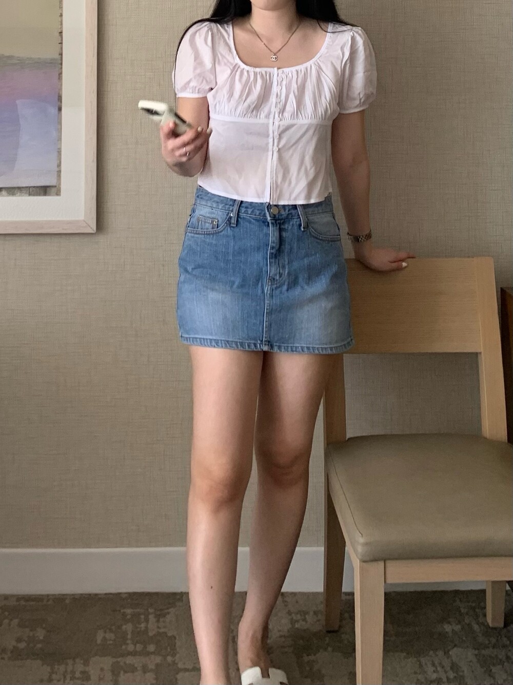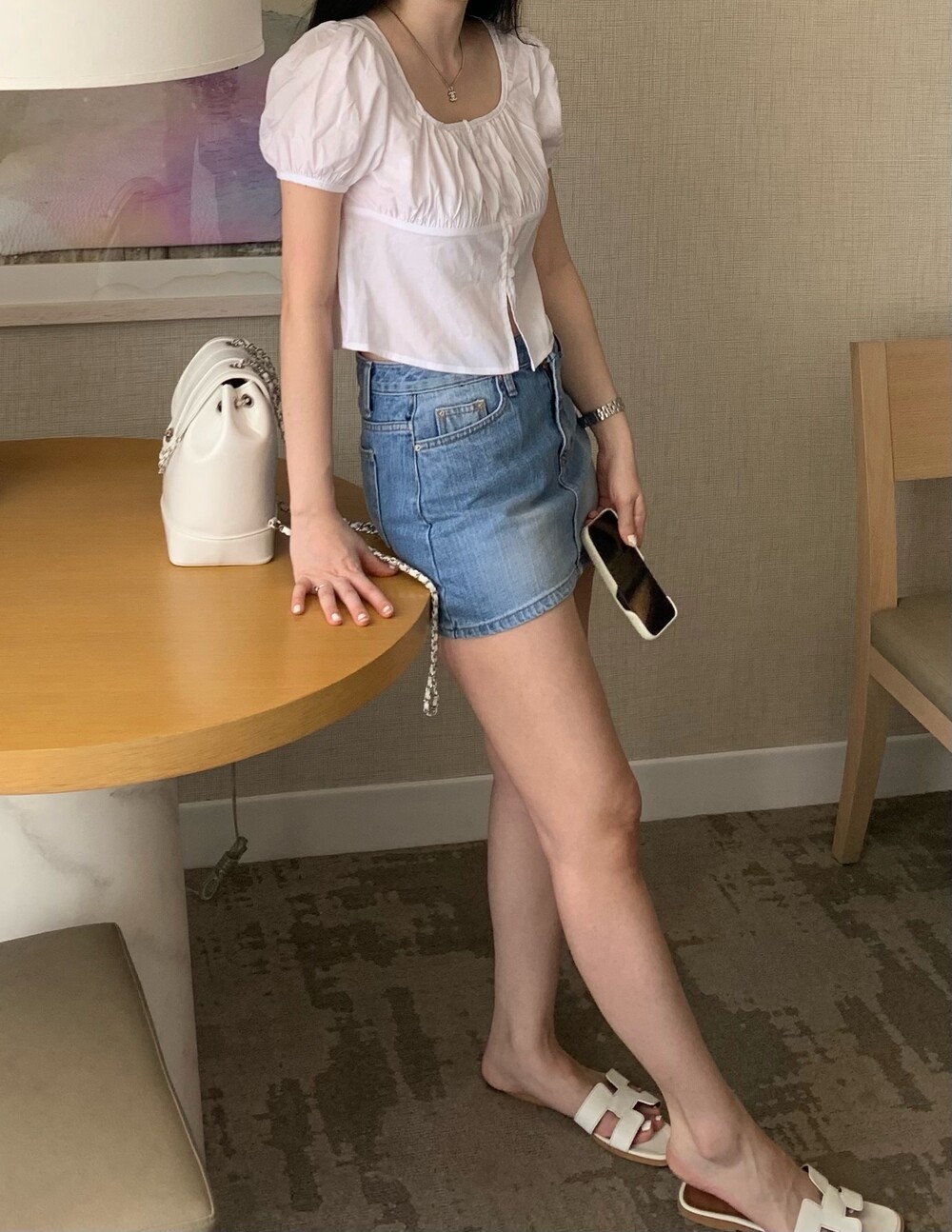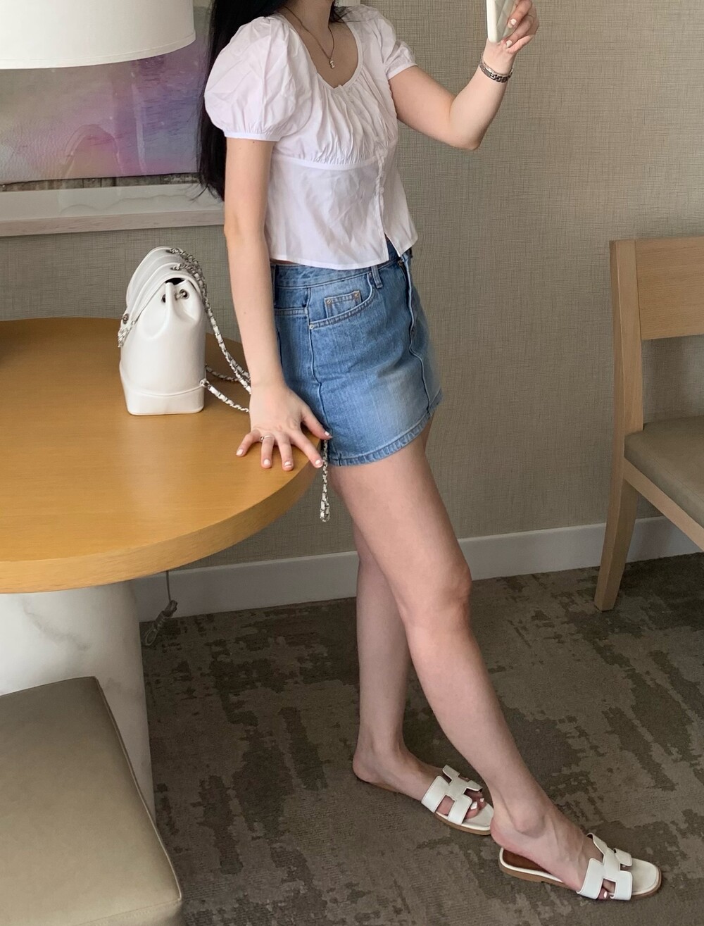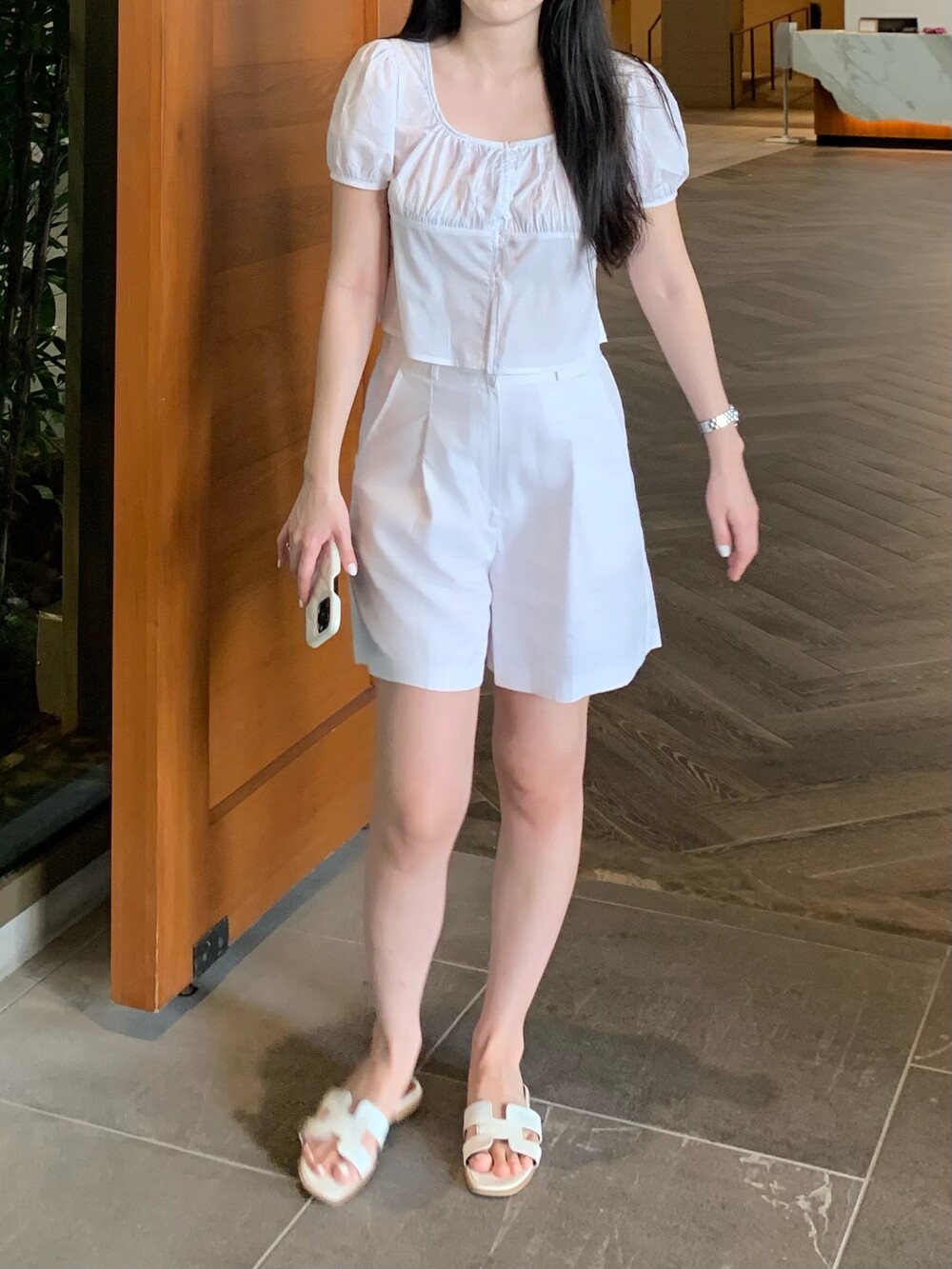 퓨어한 무드의 여름신상 스퀘어넥 블라우스입니다.