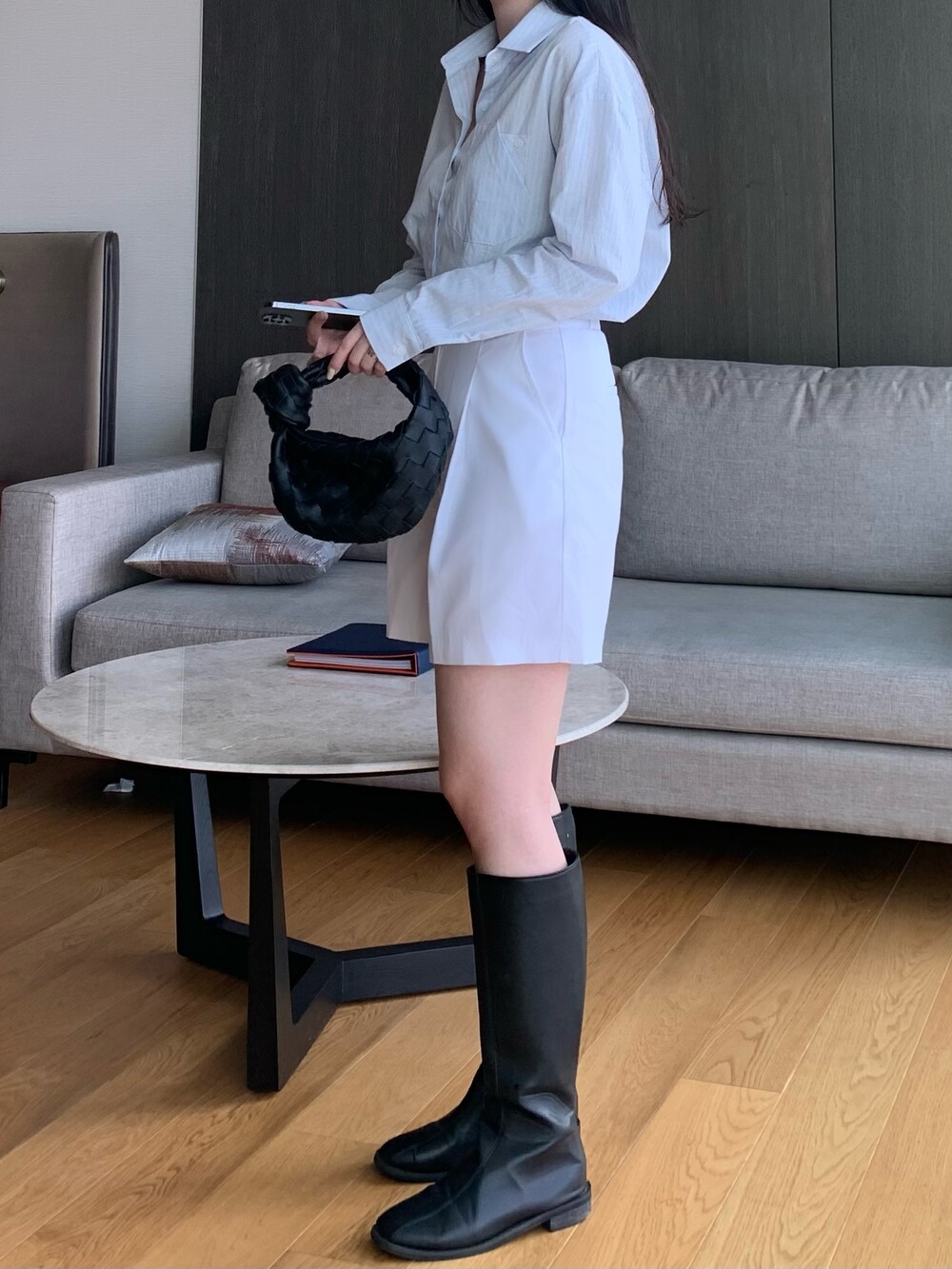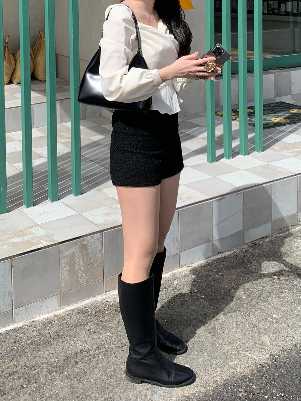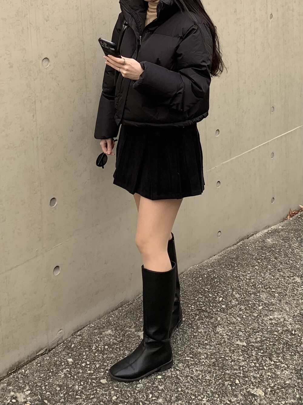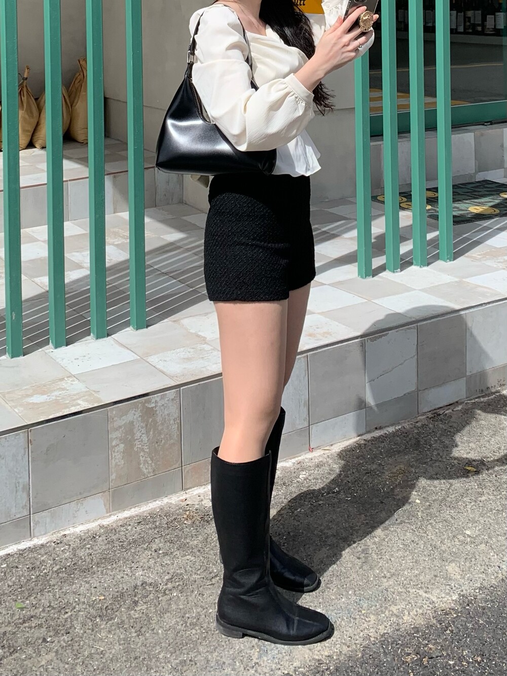 앳영의 모든 코디에 매치된 롱부츠 입니다.