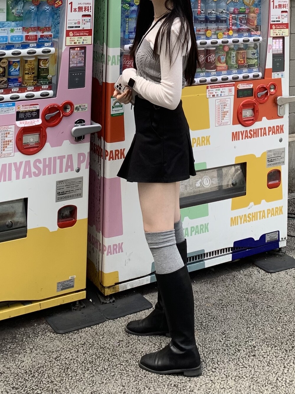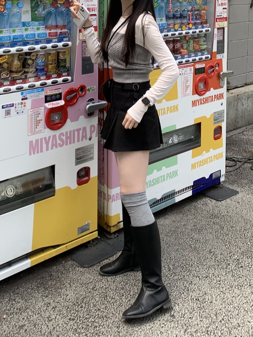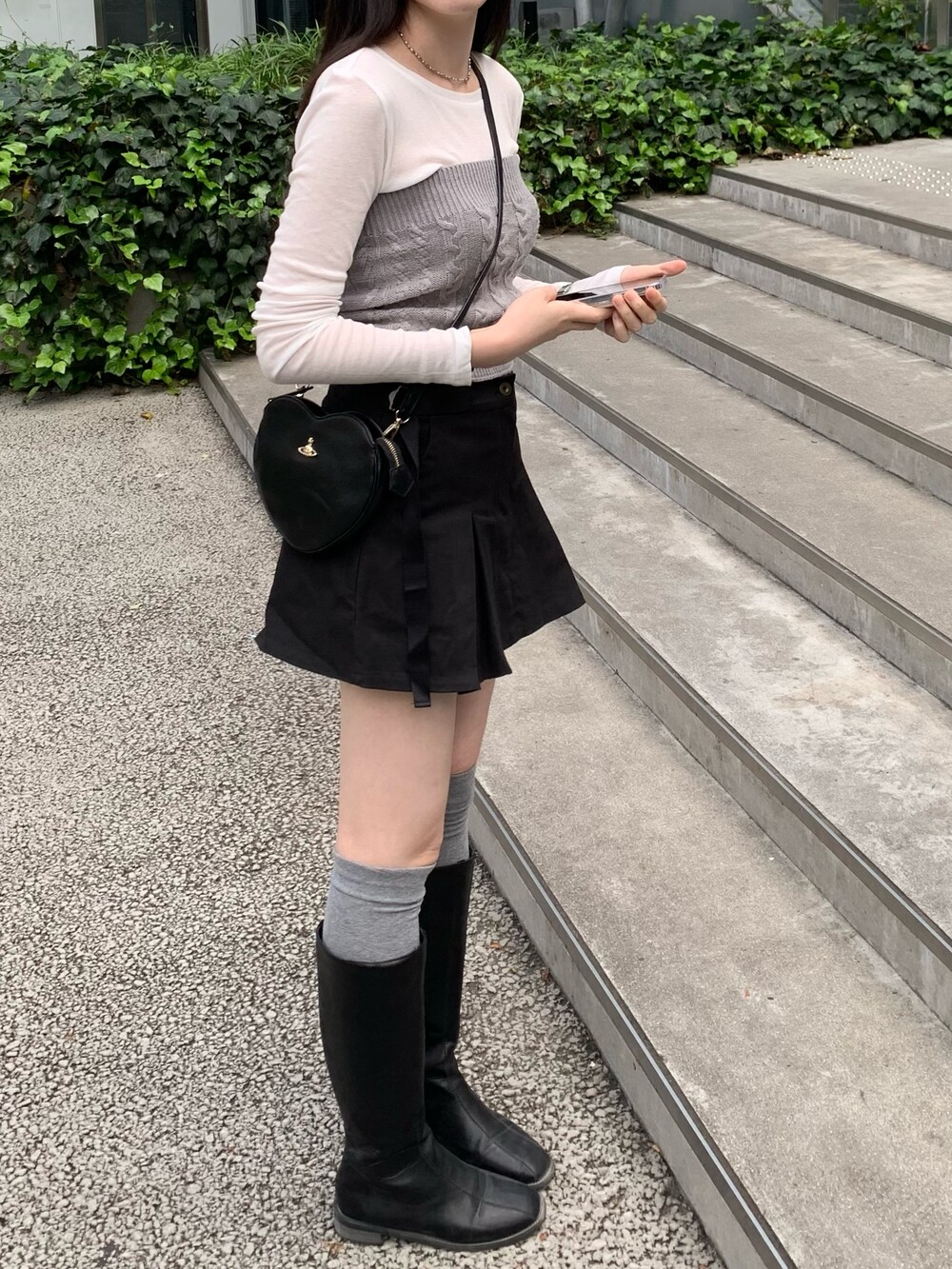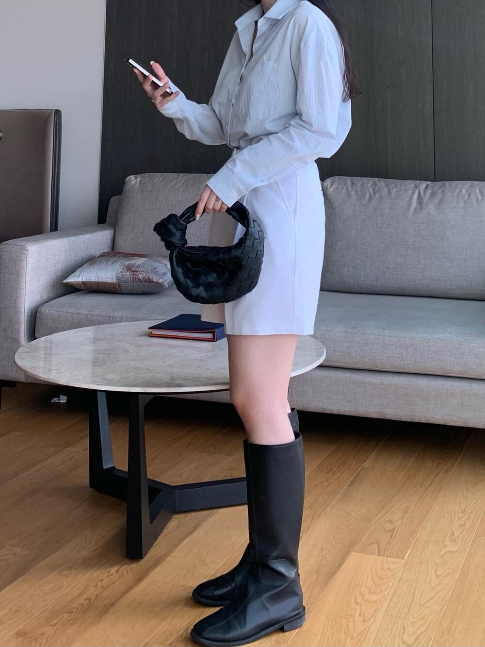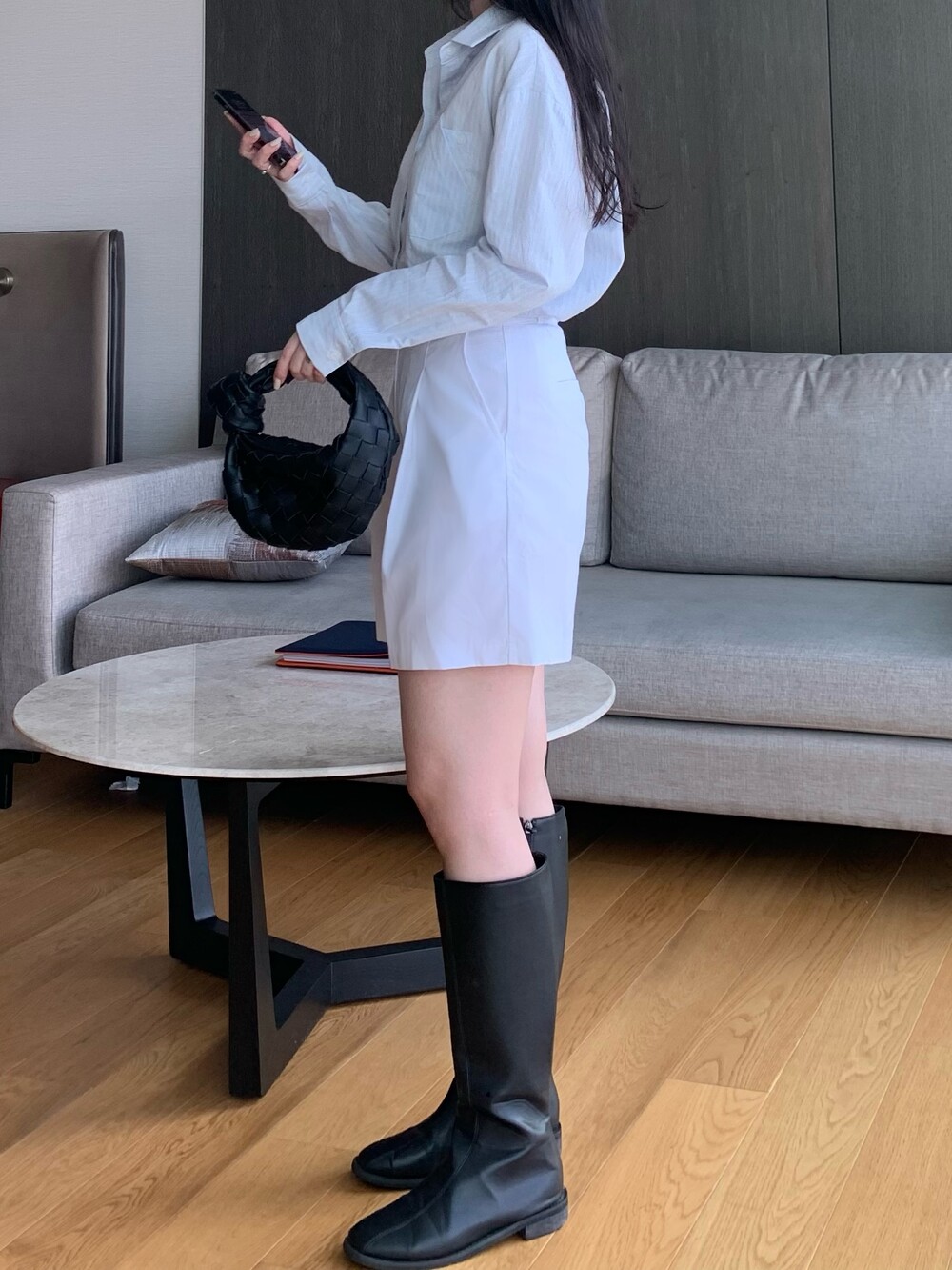 앳영의 모든 코디에 매치된 롱부츠 입니다.