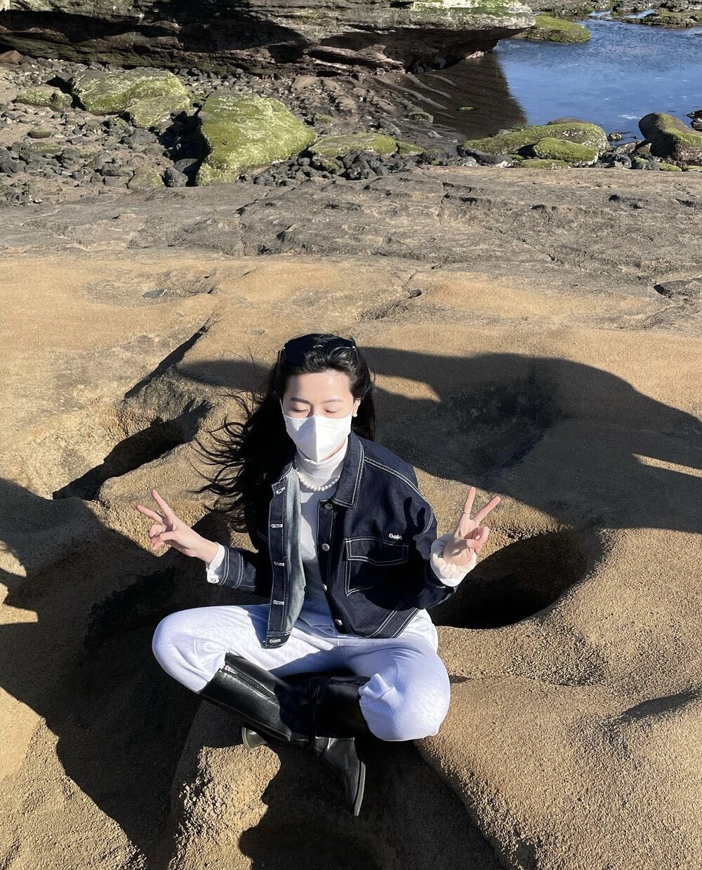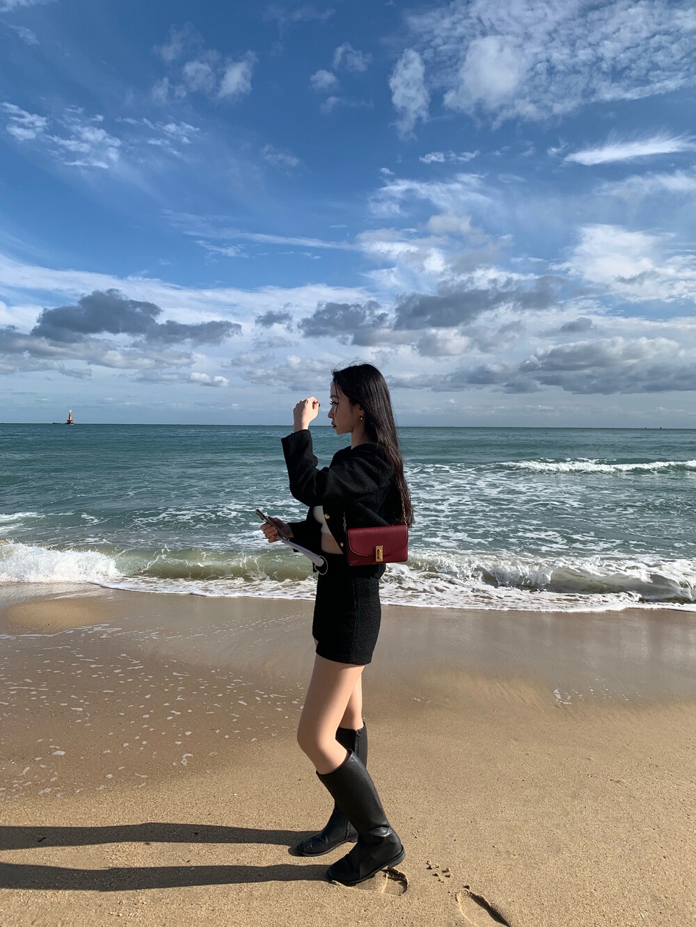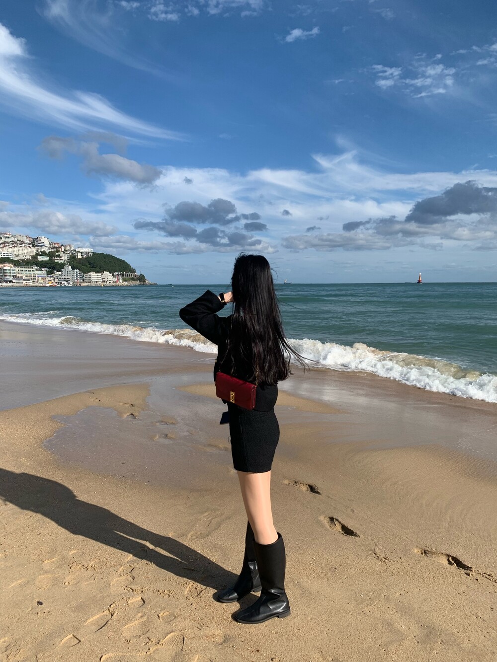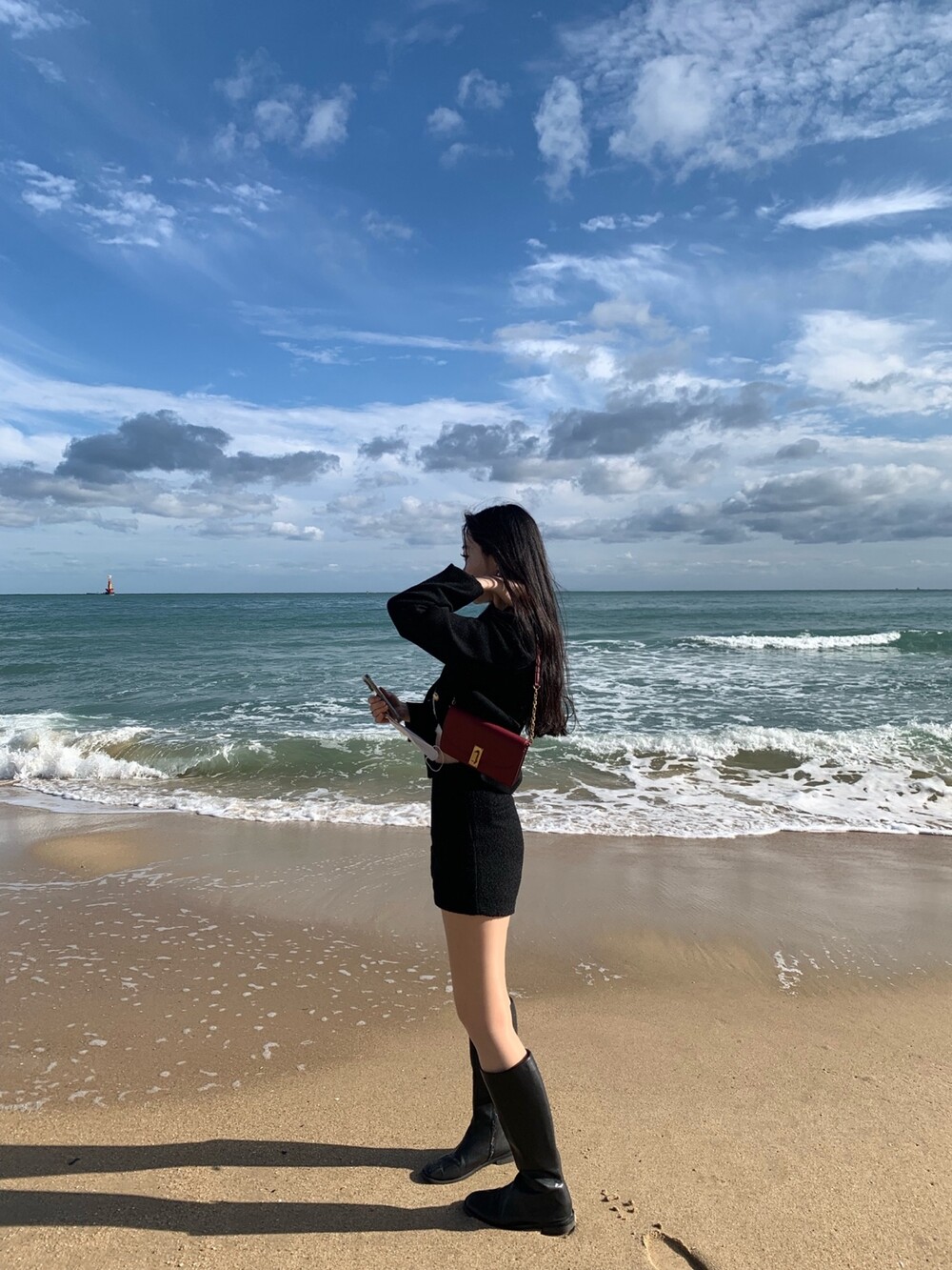앳영의 모든 코디에 매치된 롱부츠 입니다.