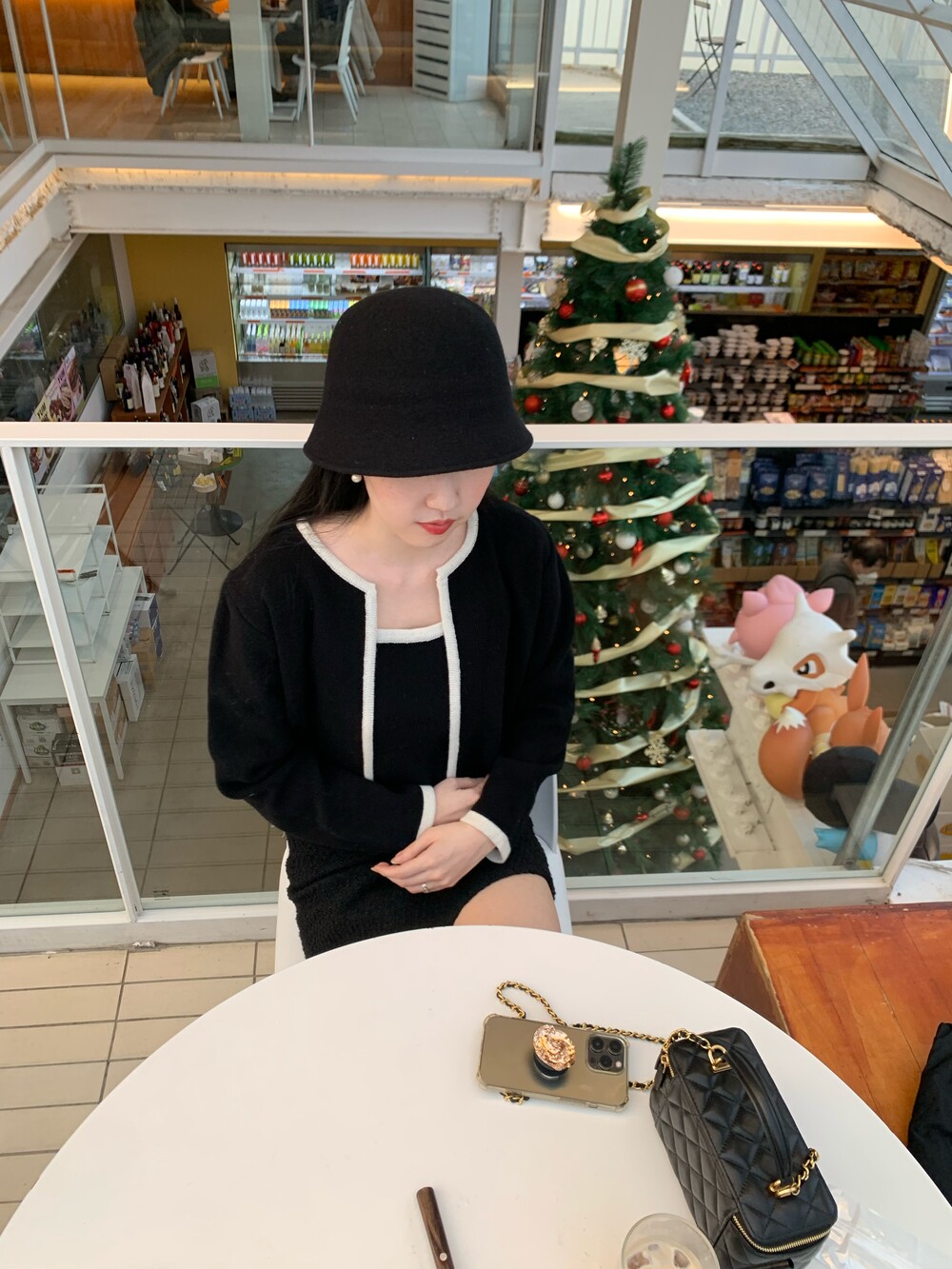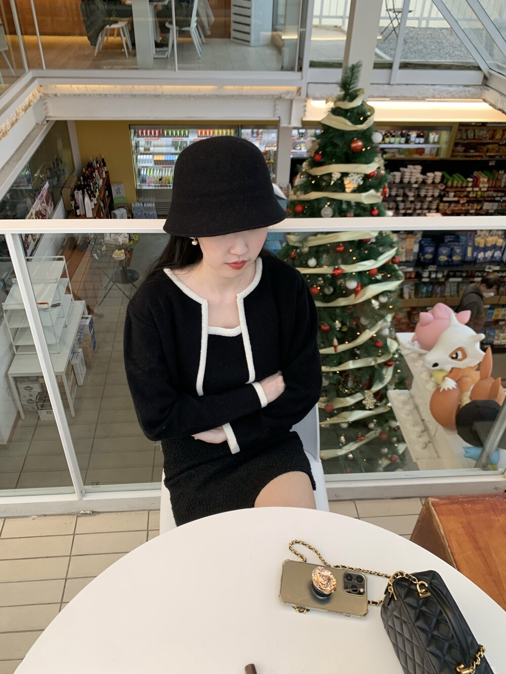 클래식한 무드의 가디건 슬리브리스 세트입니다.