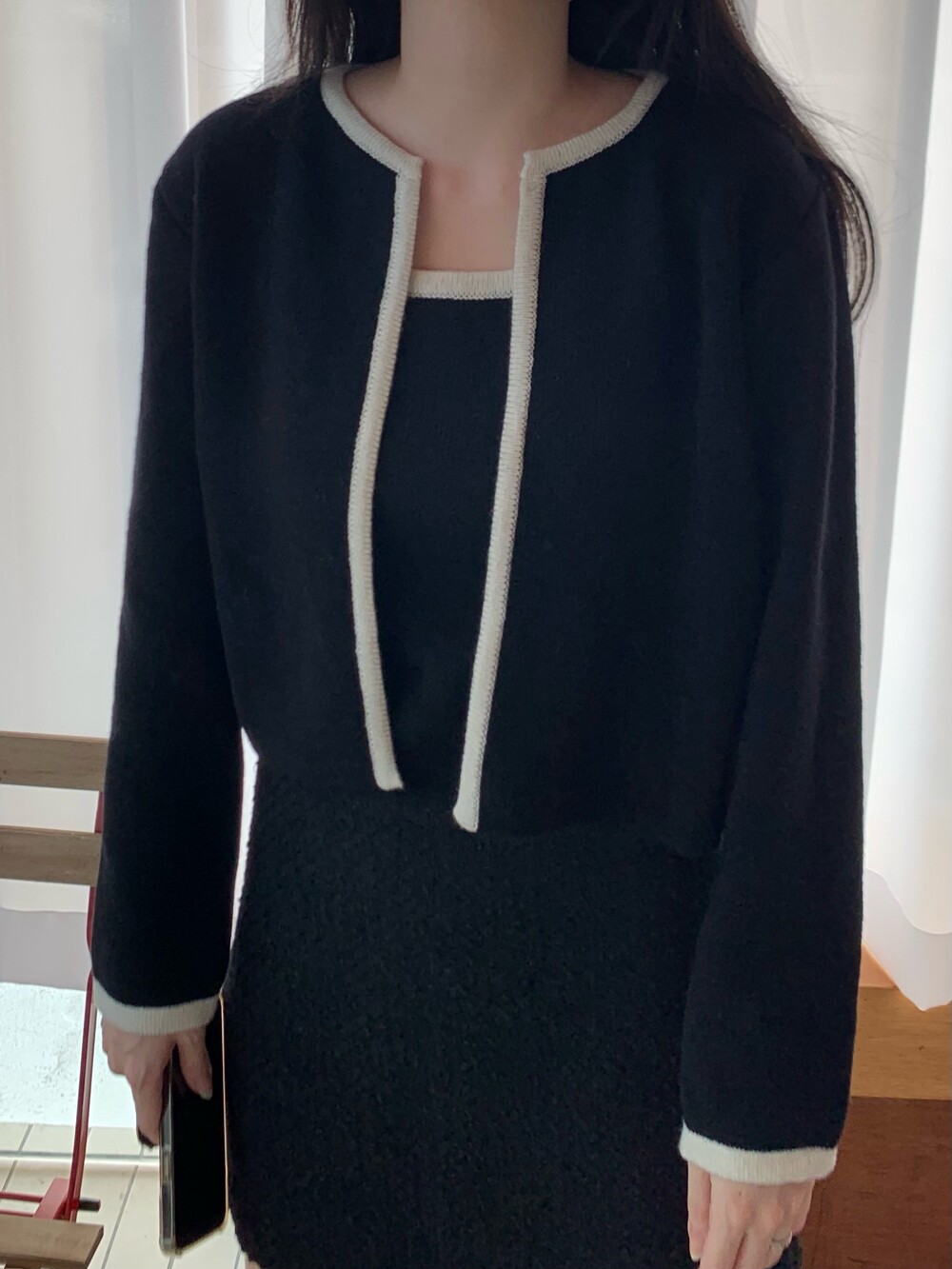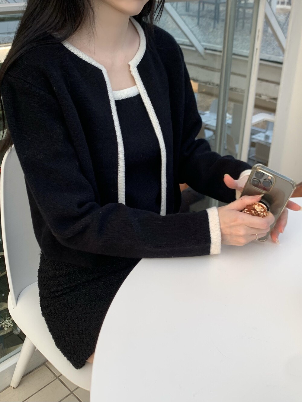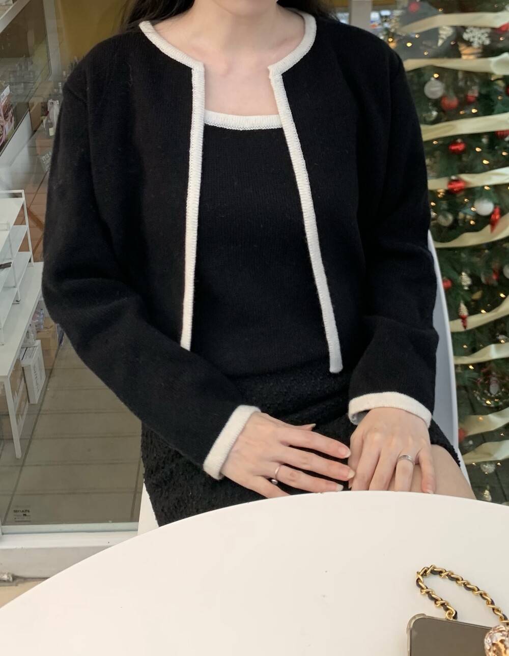 classic knit cardigan set (3color) 배색 가디건 나시 세트 *당일배송*
