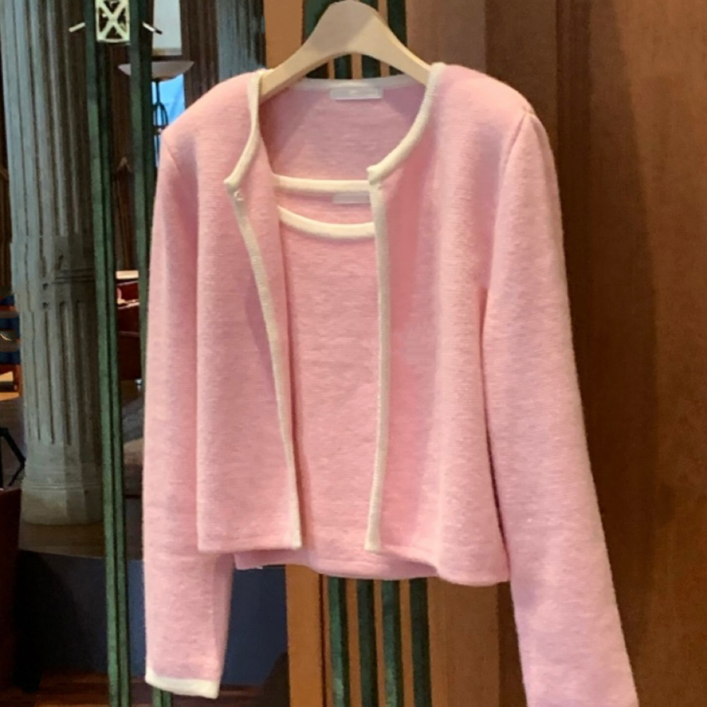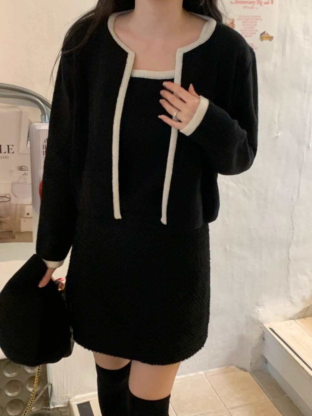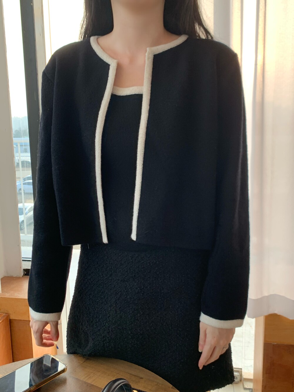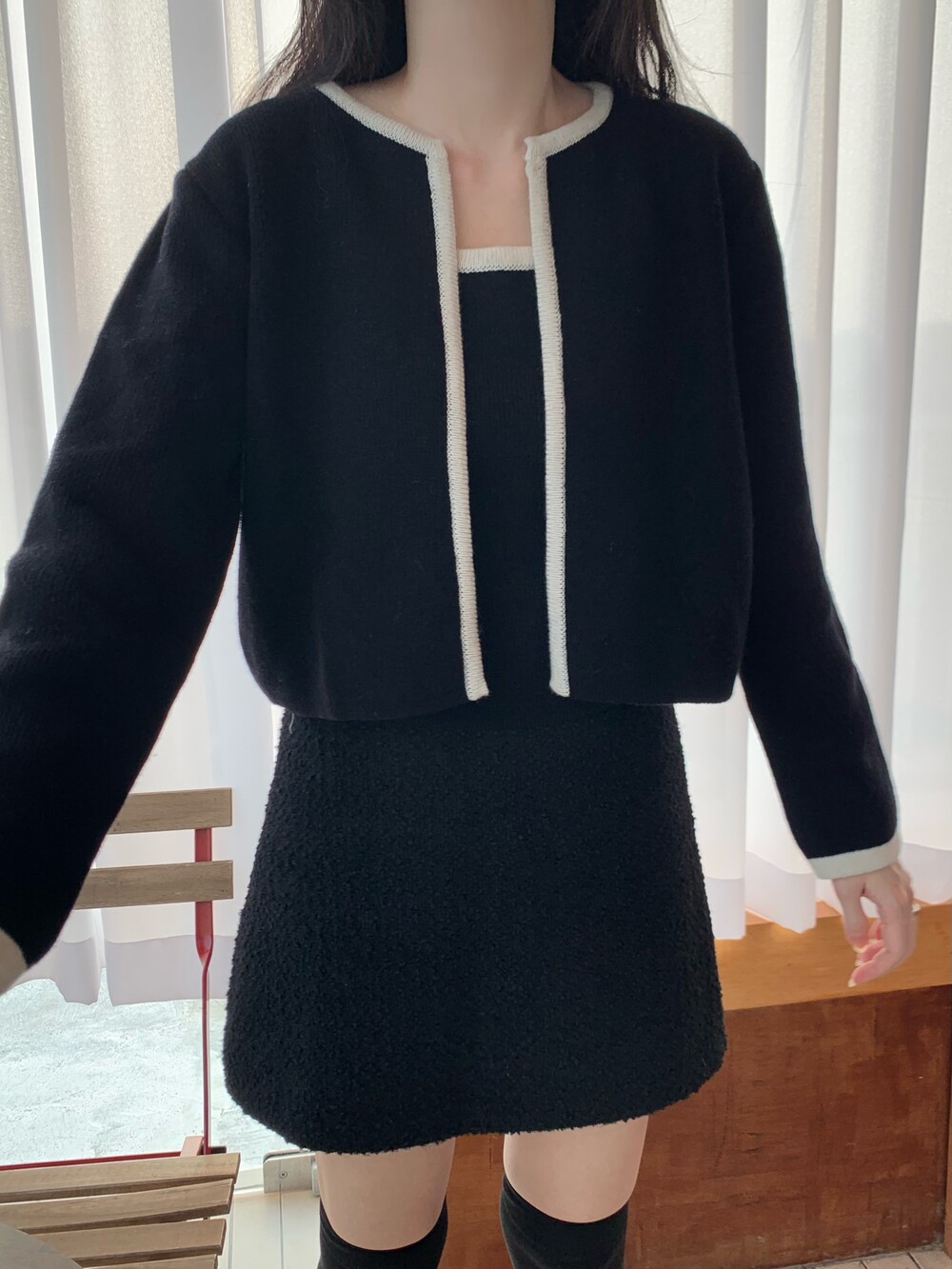 classic knit cardigan set (3color) 배색 가디건 나시 세트 *당일배송*