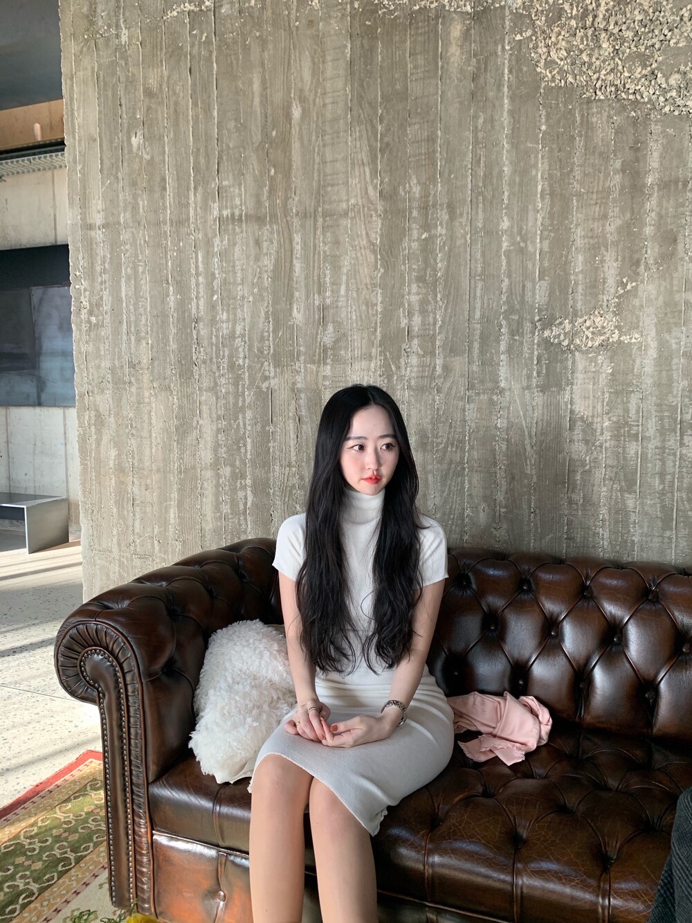 목을 덮어주는 따뜻한 터치감의 니트 원사로