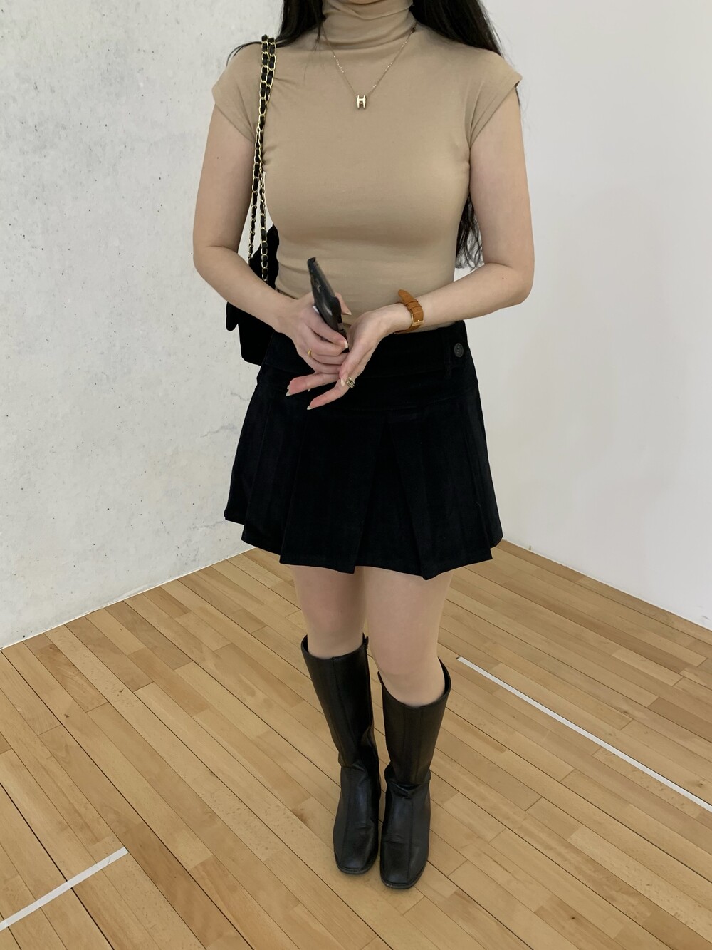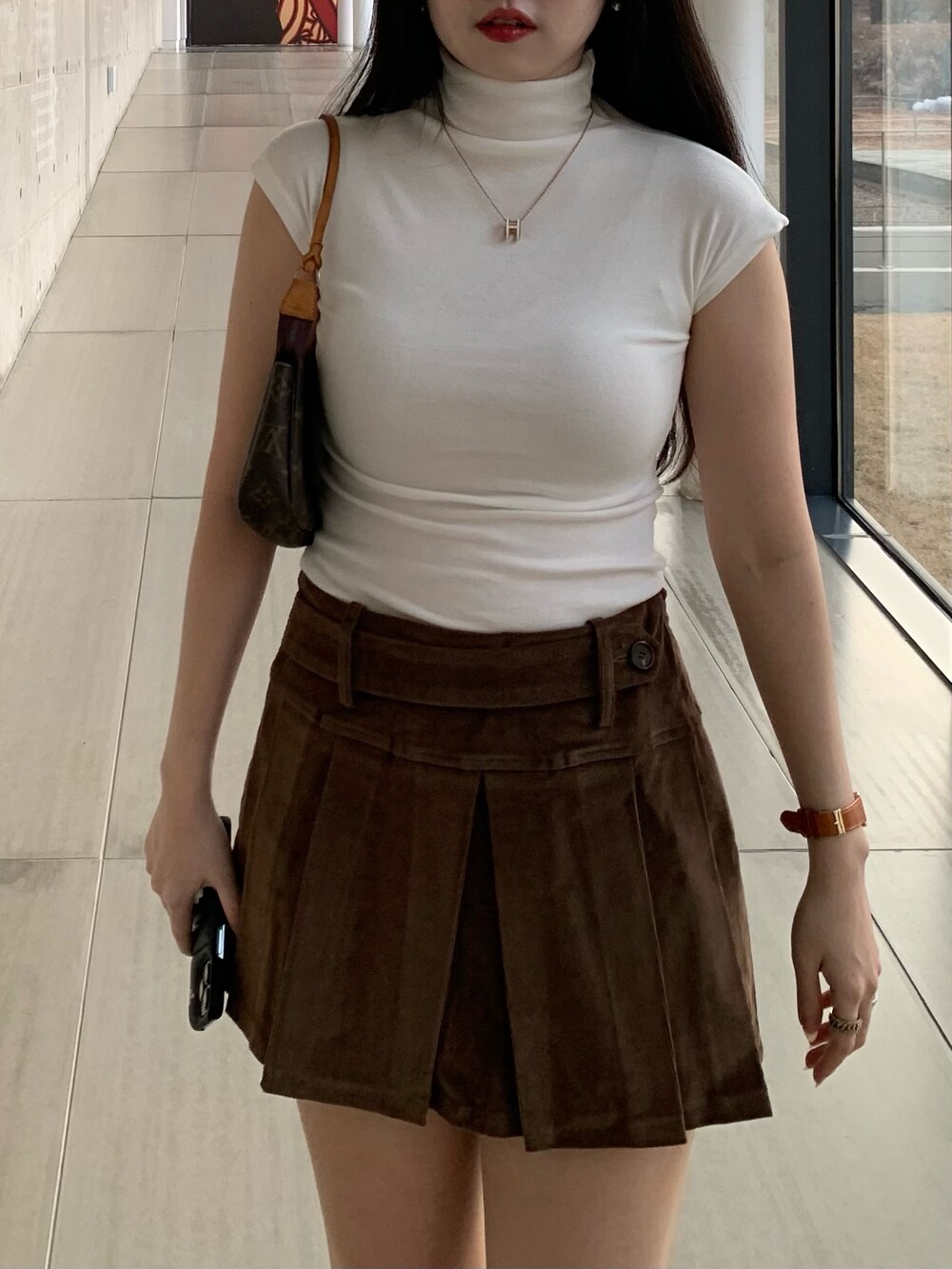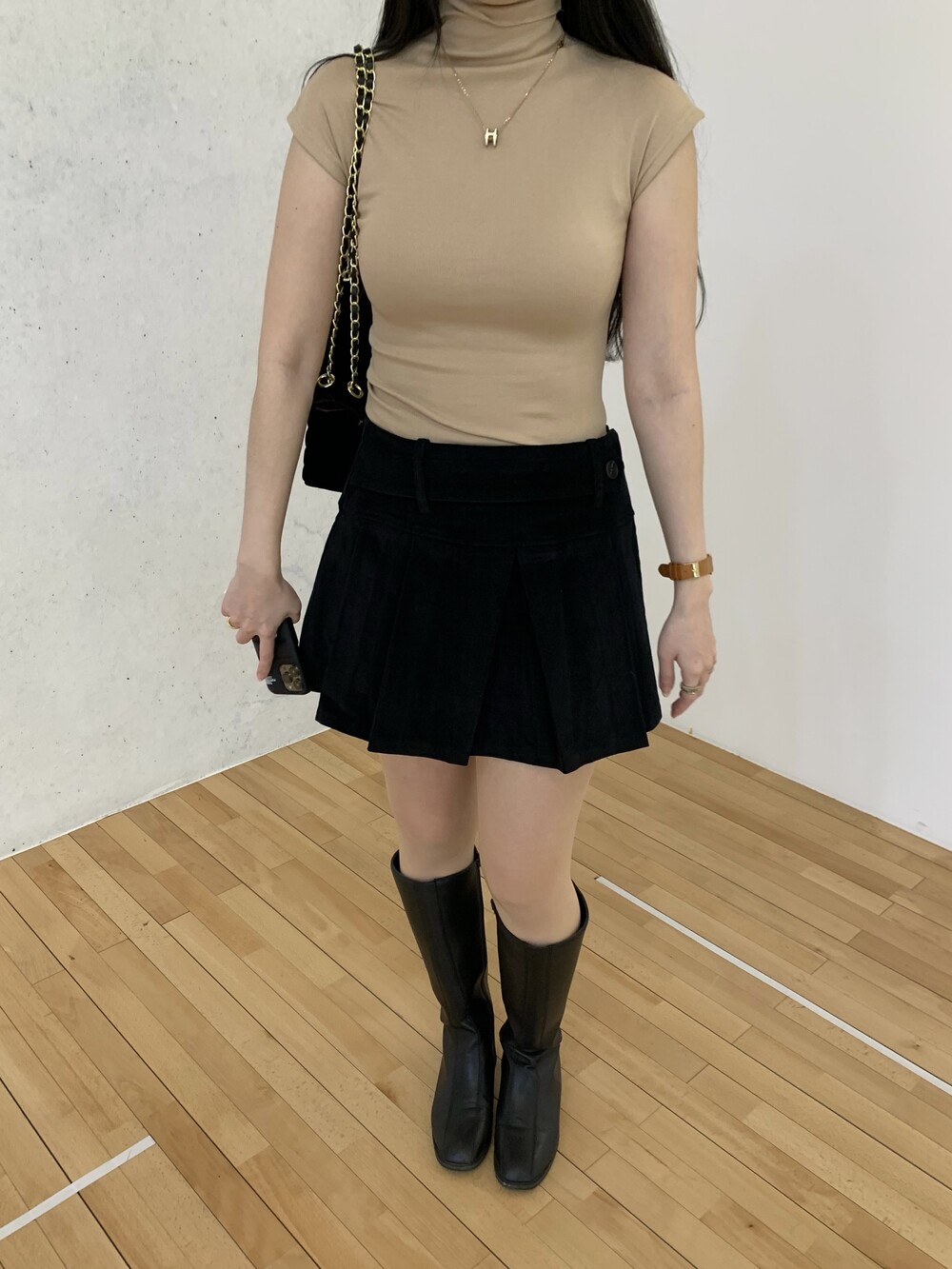 플리츠 테니스 디자인으로 앞벨트가 포인트이며
