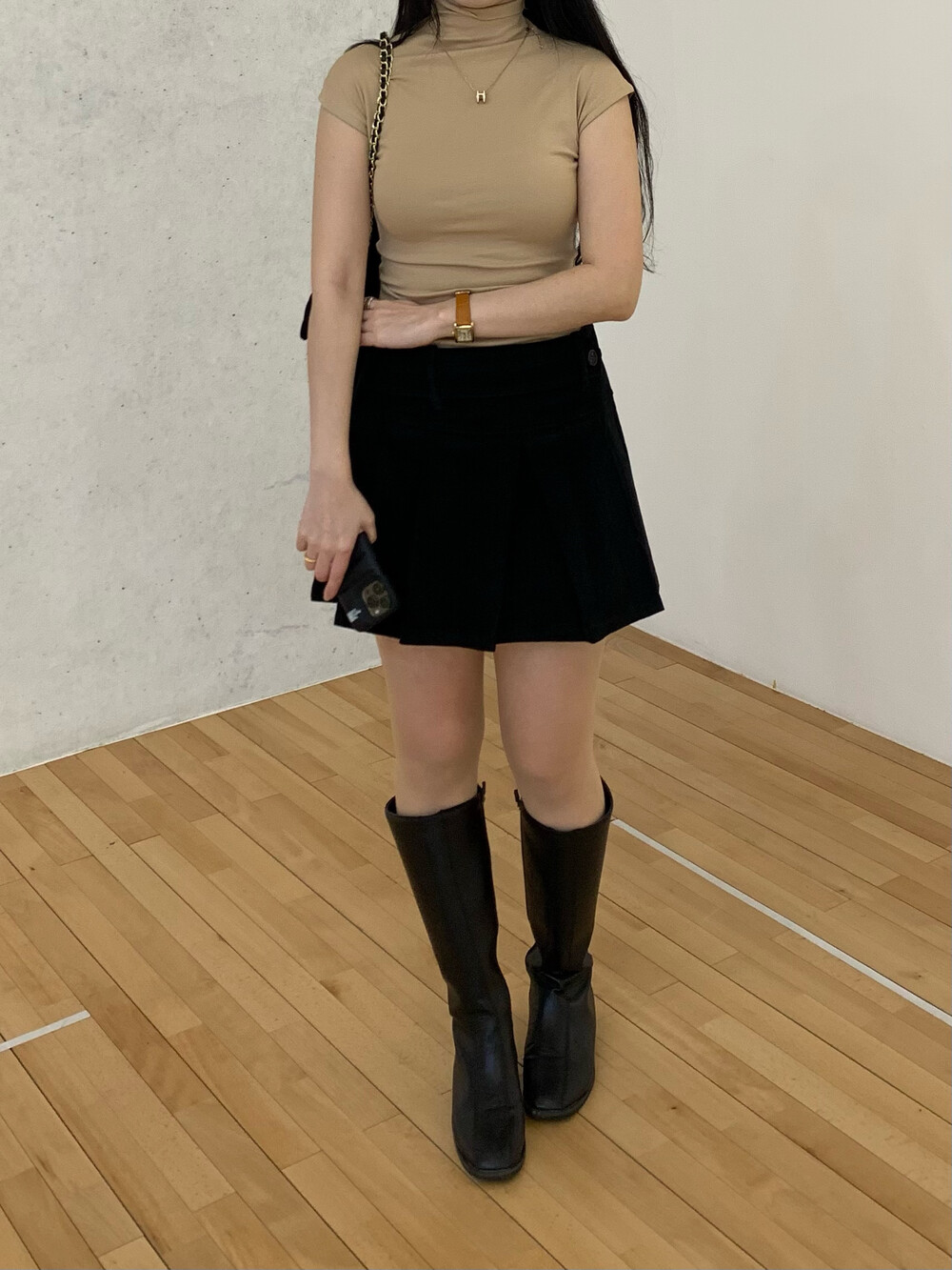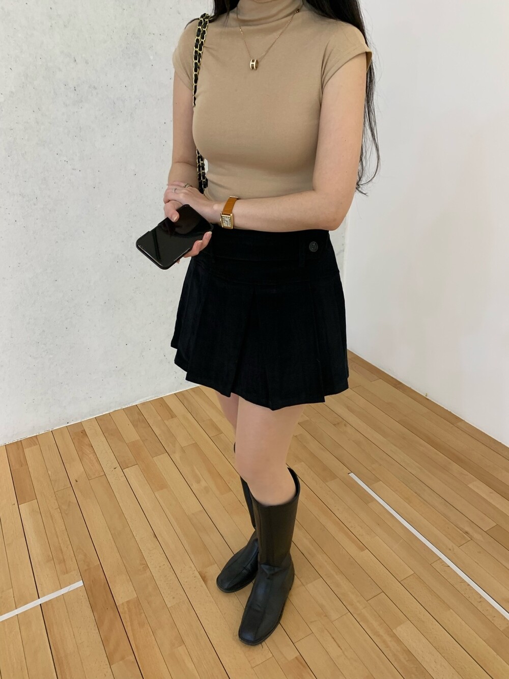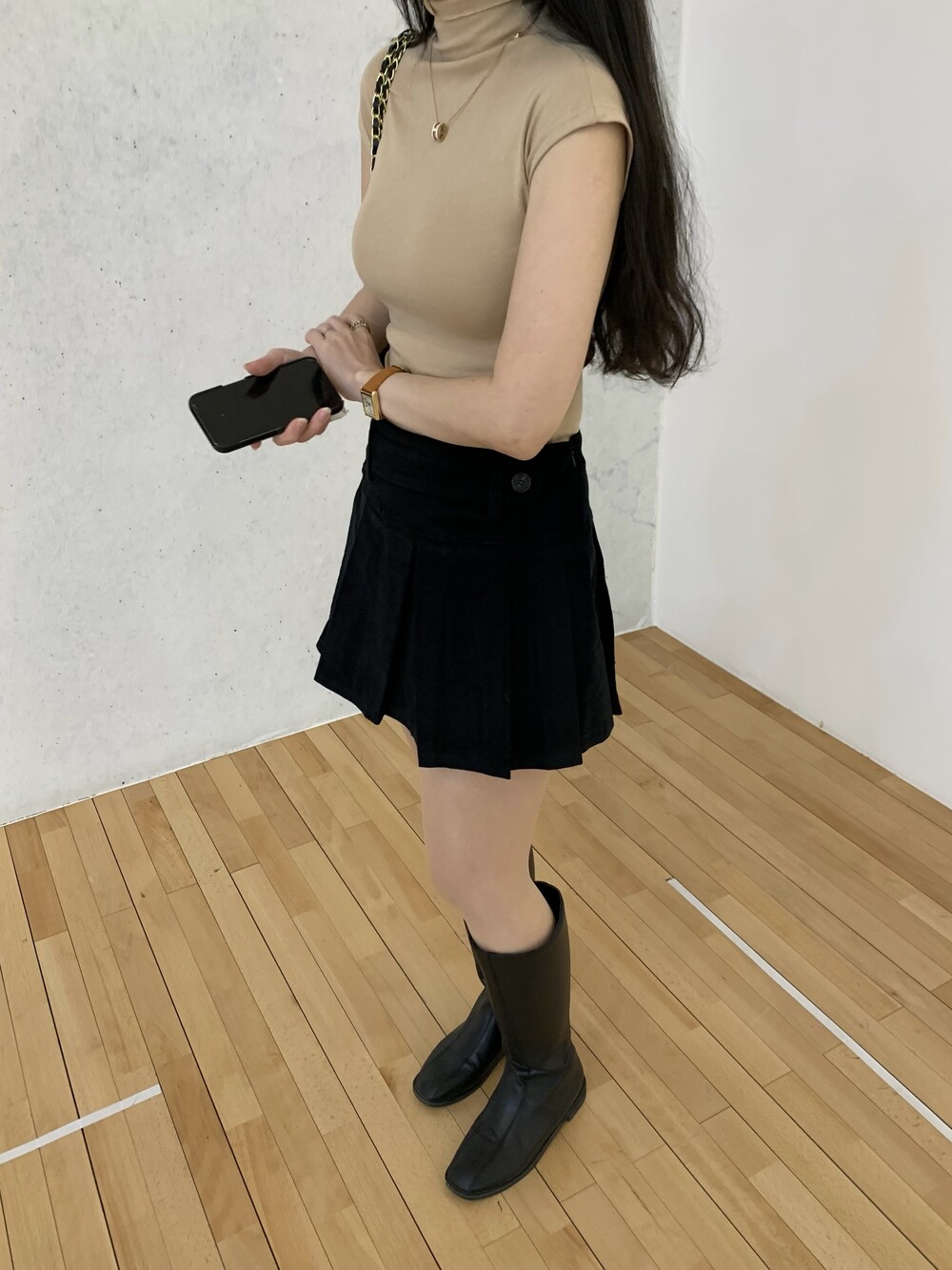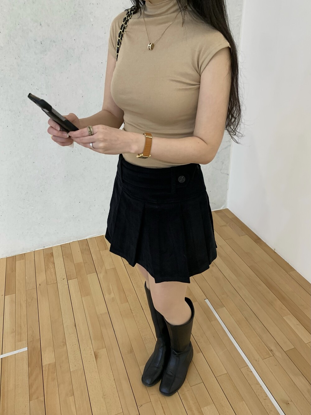 플리츠 테니스 디자인으로 앞벨트가 포인트이며