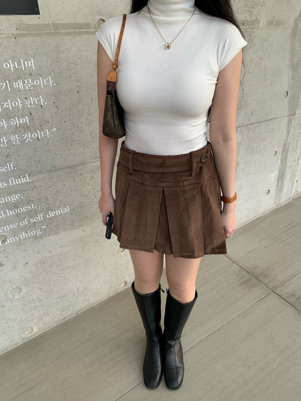 프레피 무드의 신상 코듀로이 벨트 스커트입니다.