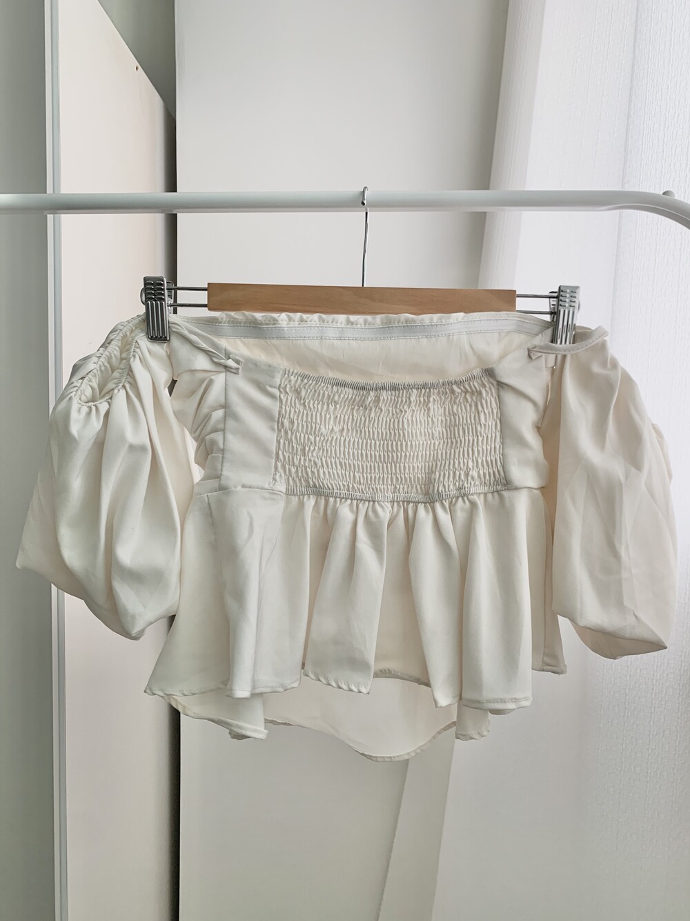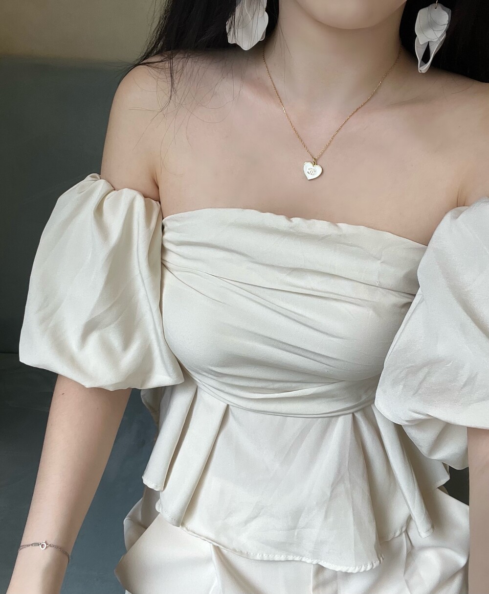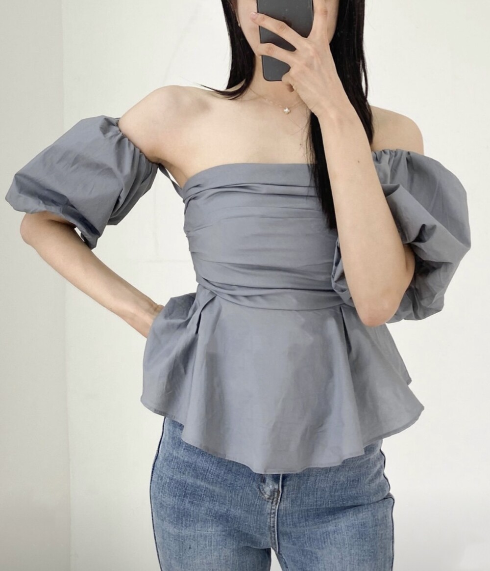 off shoulder puff blouse (4color)
