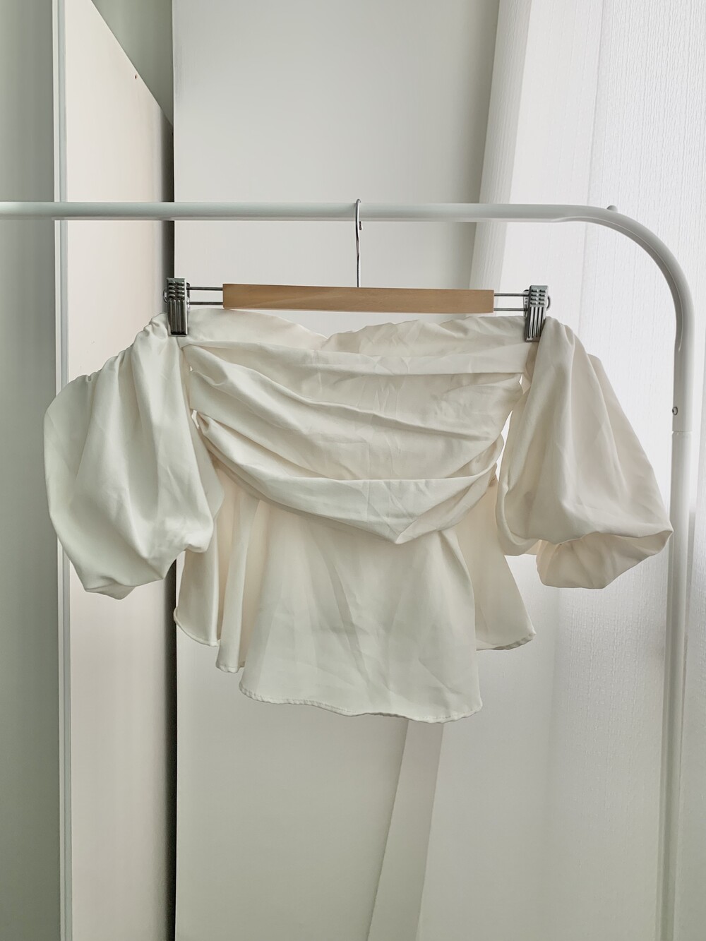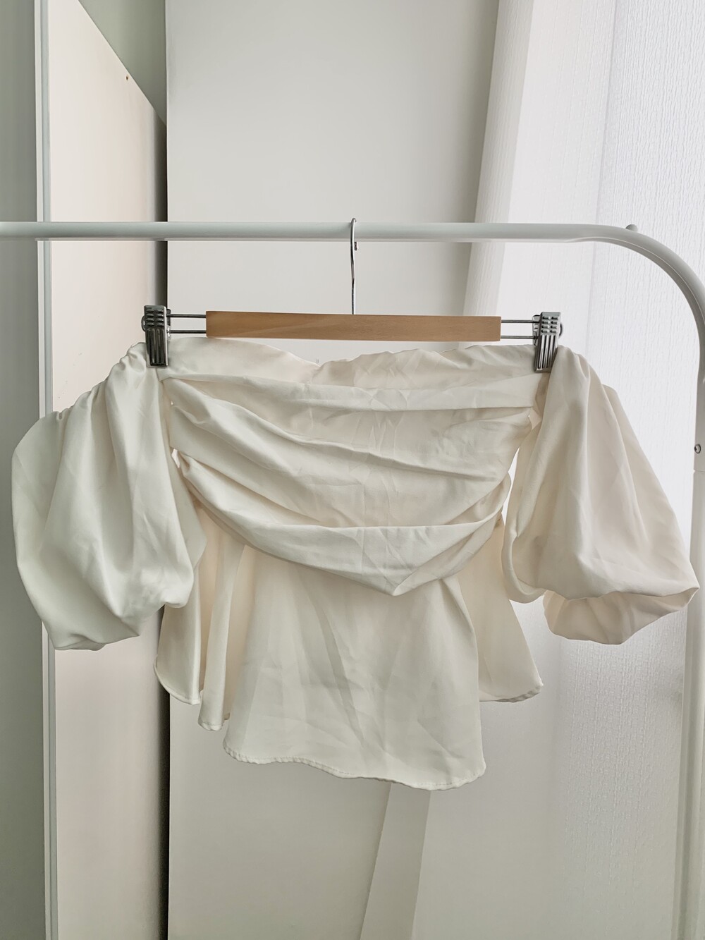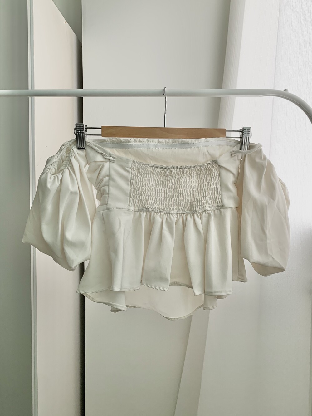 off shoulder puff blouse (4color)
