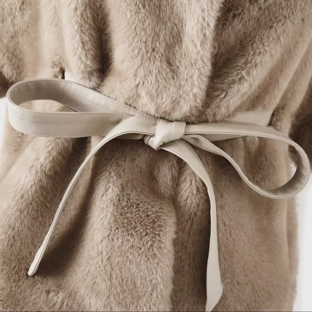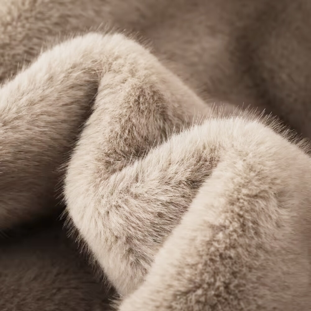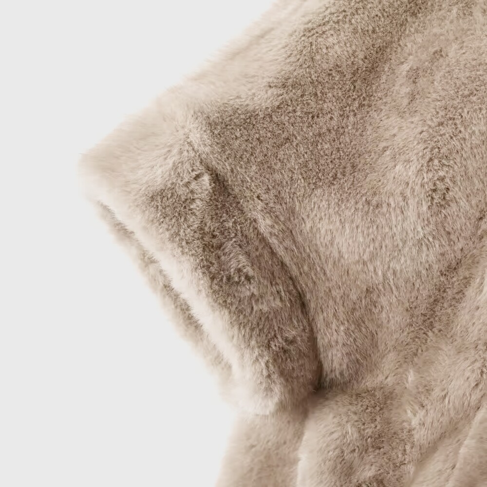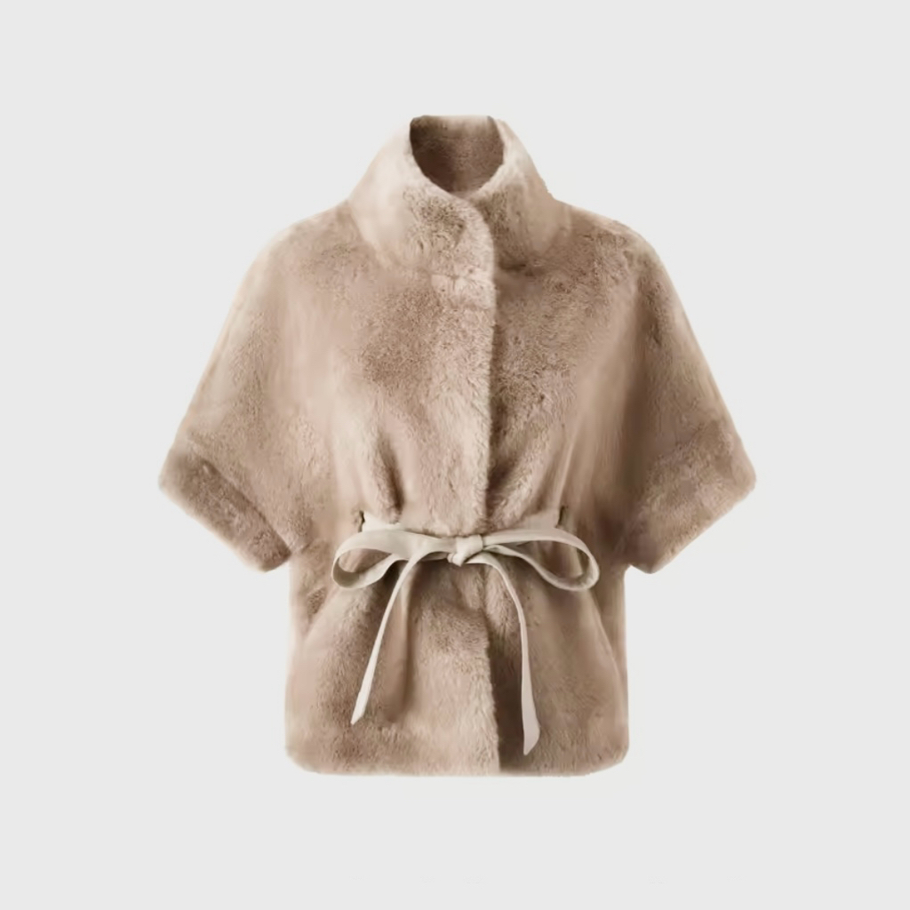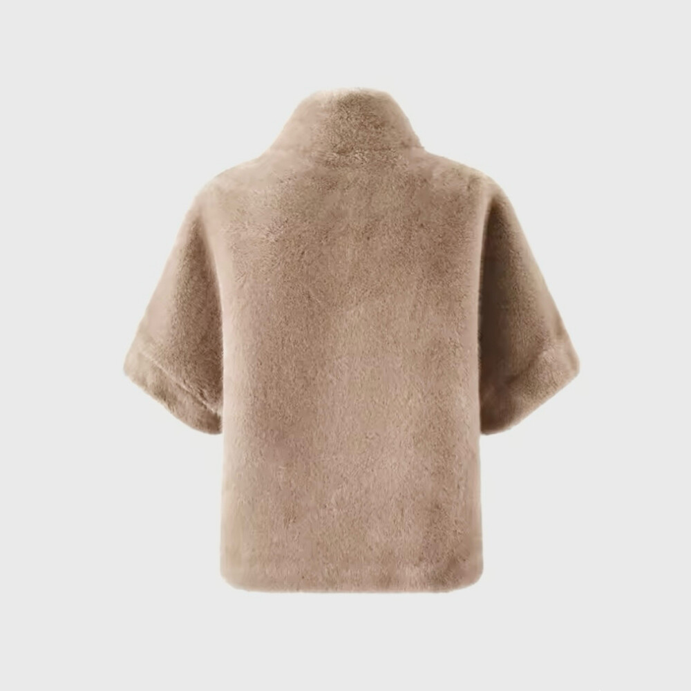 고급스러운 페이크 퍼 소재의 반팔 퍼자켓으로