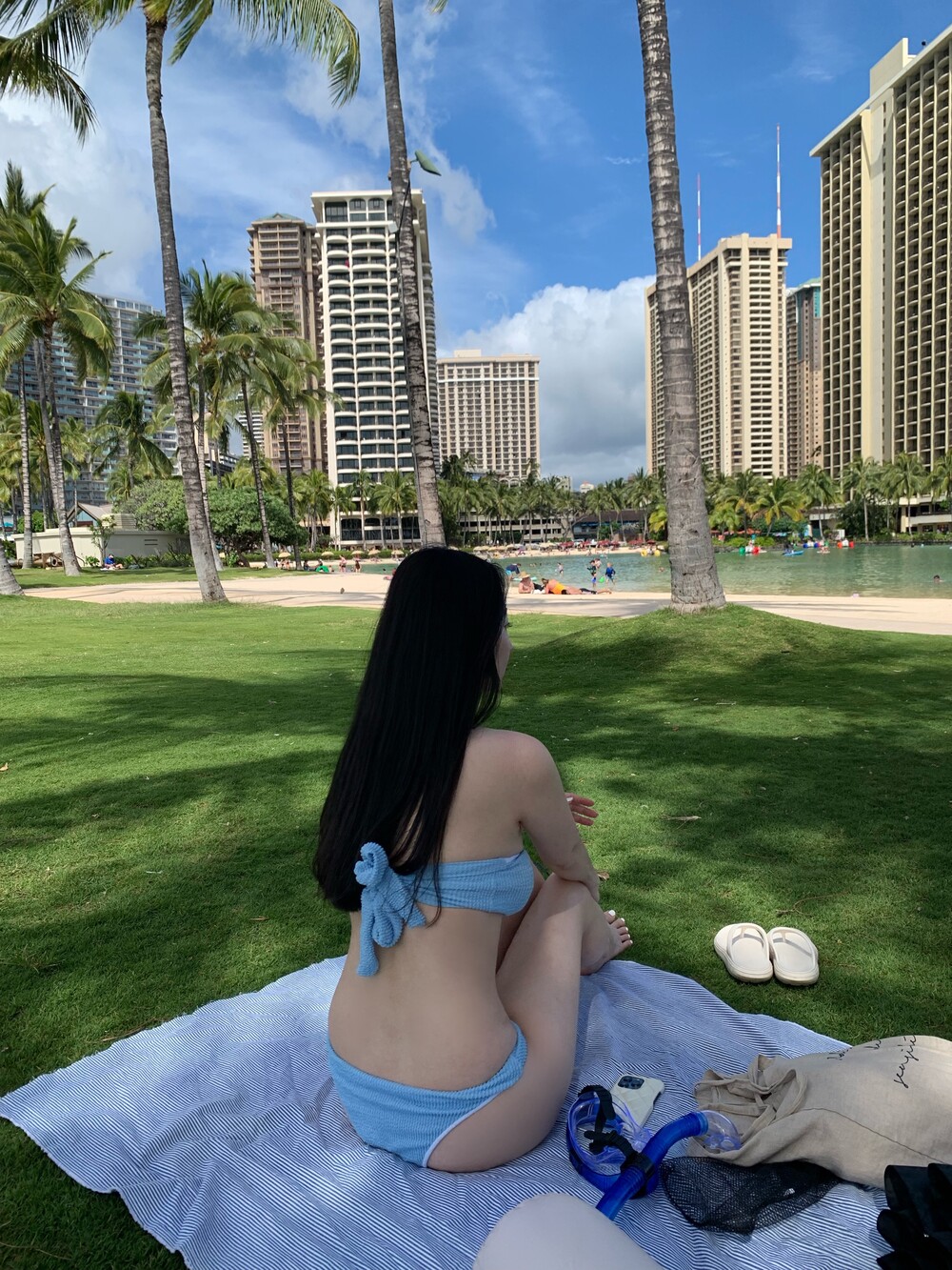백라인에서 리본을 직접 묶어 착용하는 형태의 비키니로
