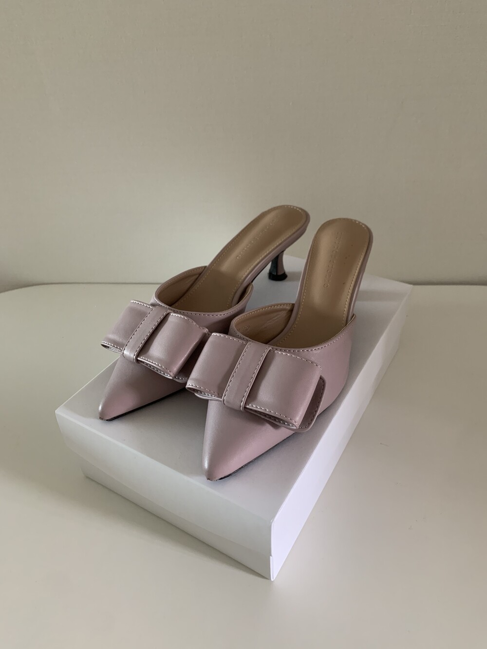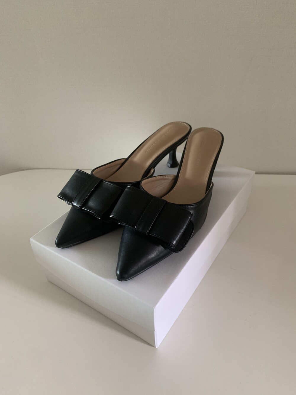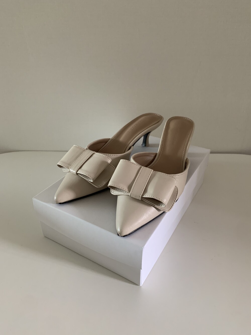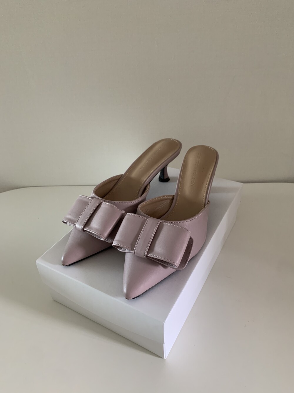 페미닌룩에 매치하기 좋은 리본 뮬 입니다.