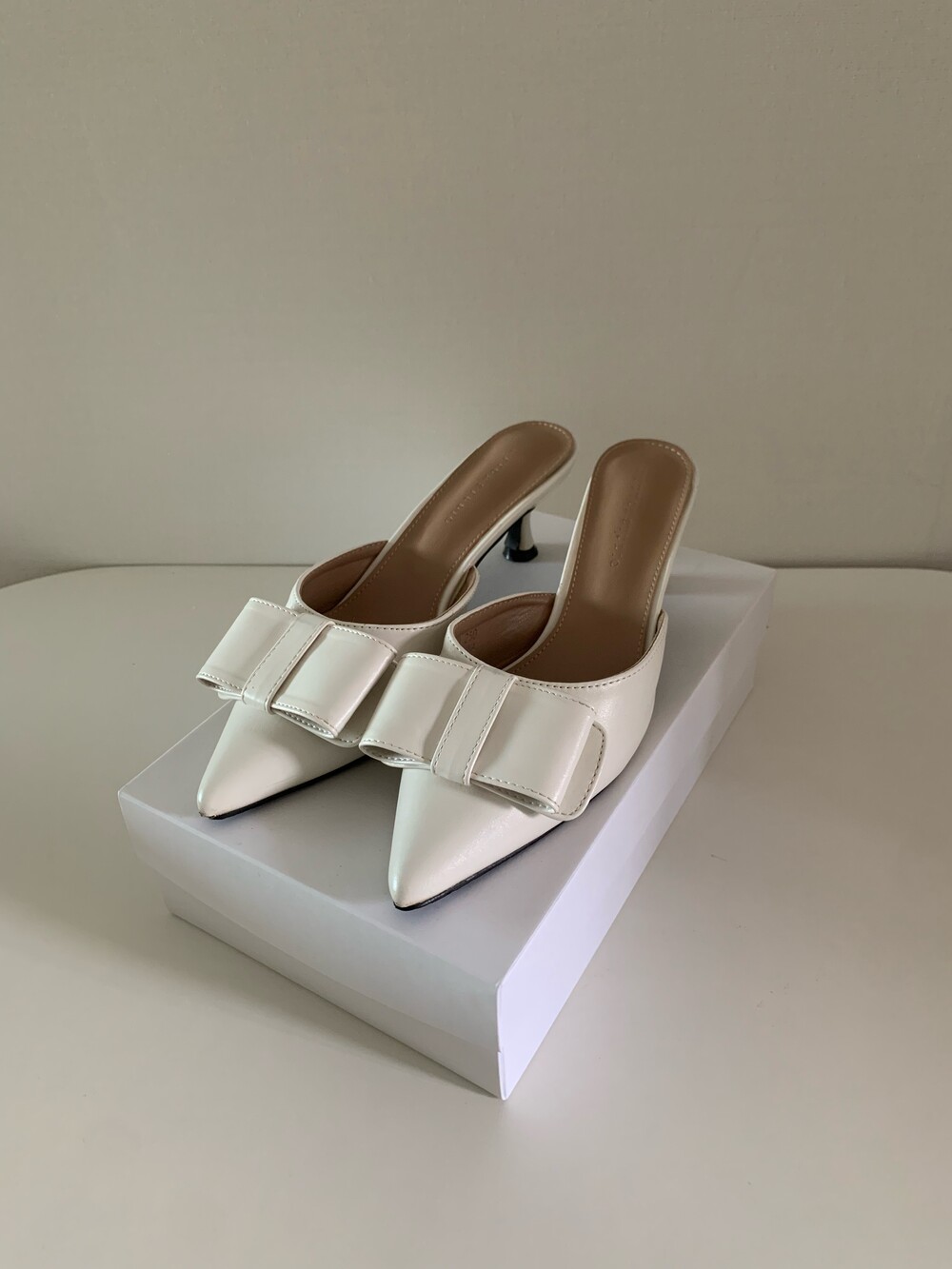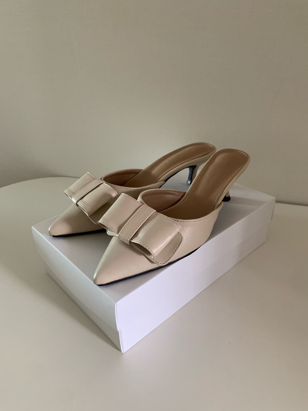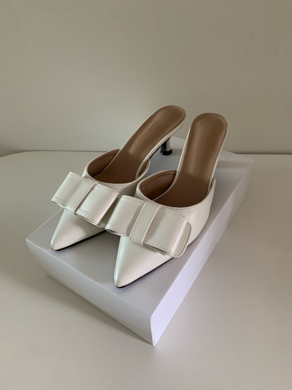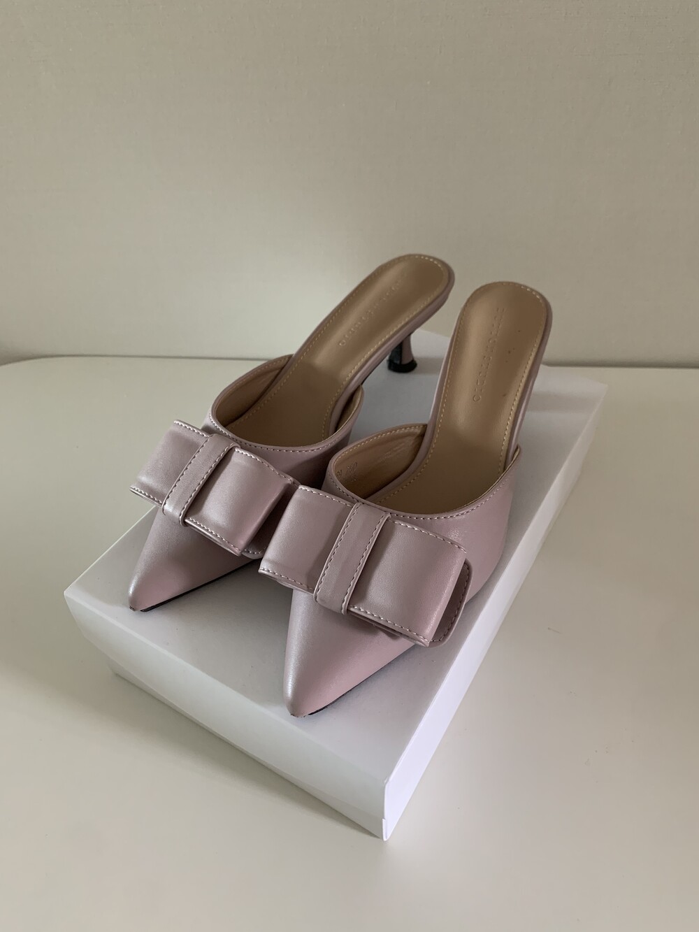 페미닌룩에 매치하기 좋은 리본 뮬 입니다.