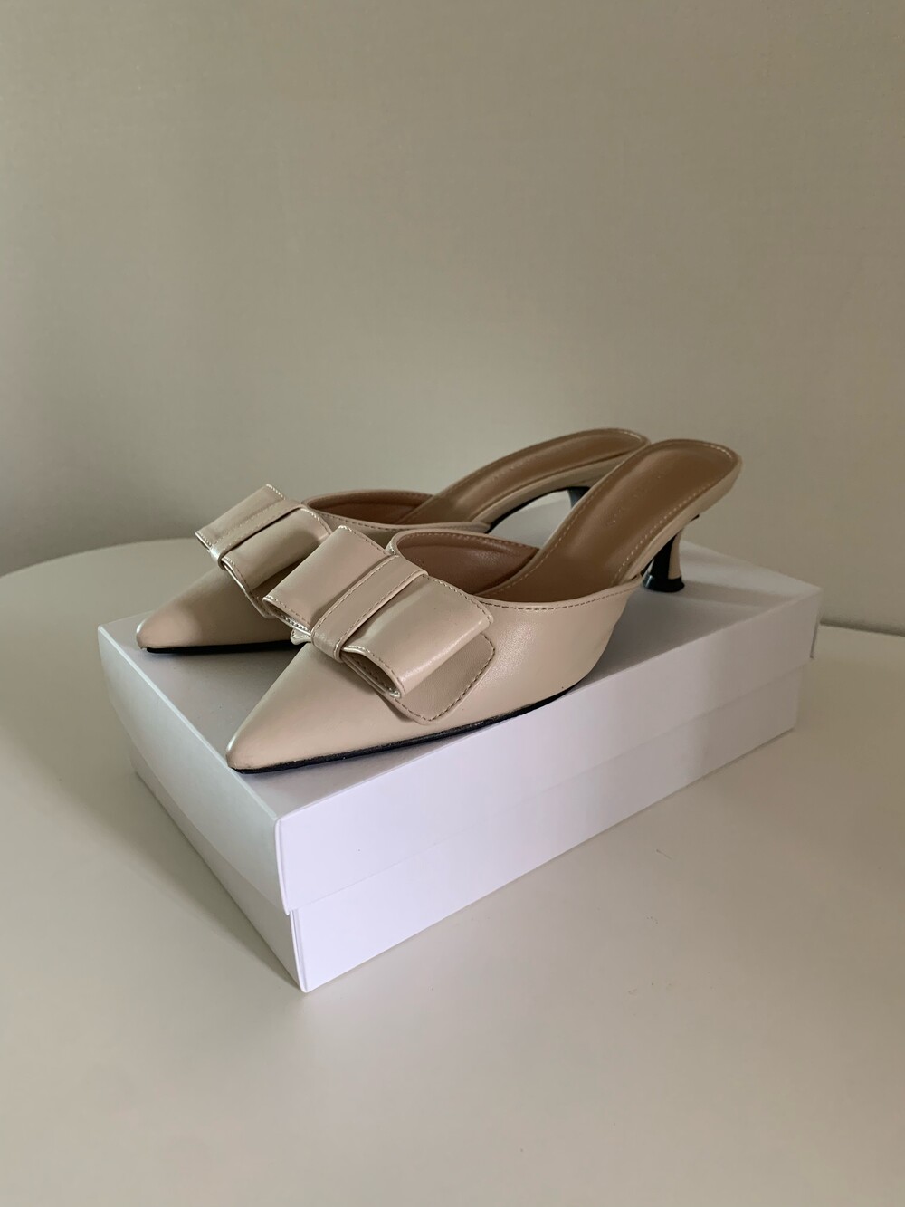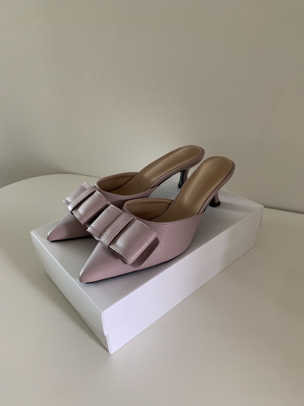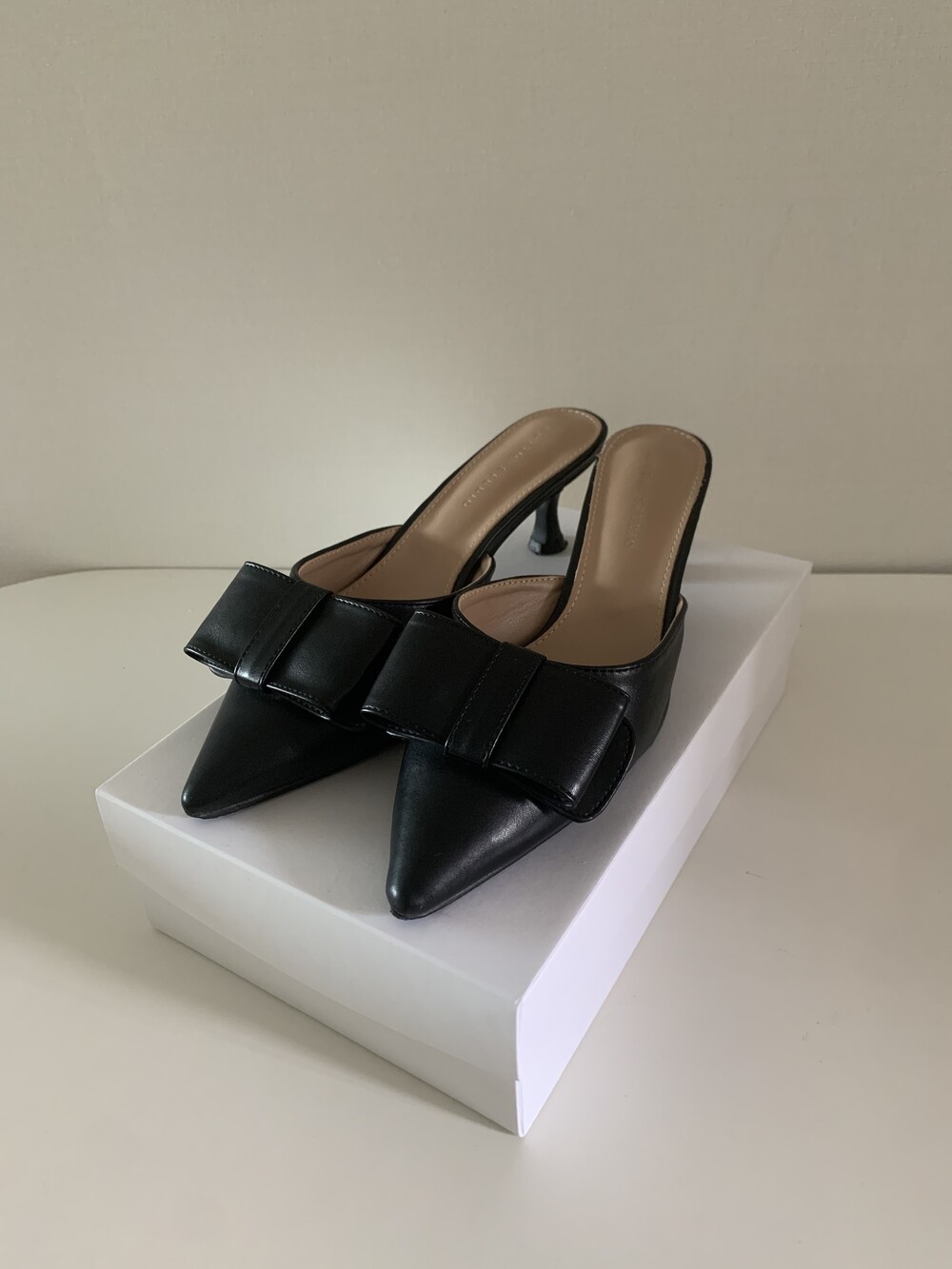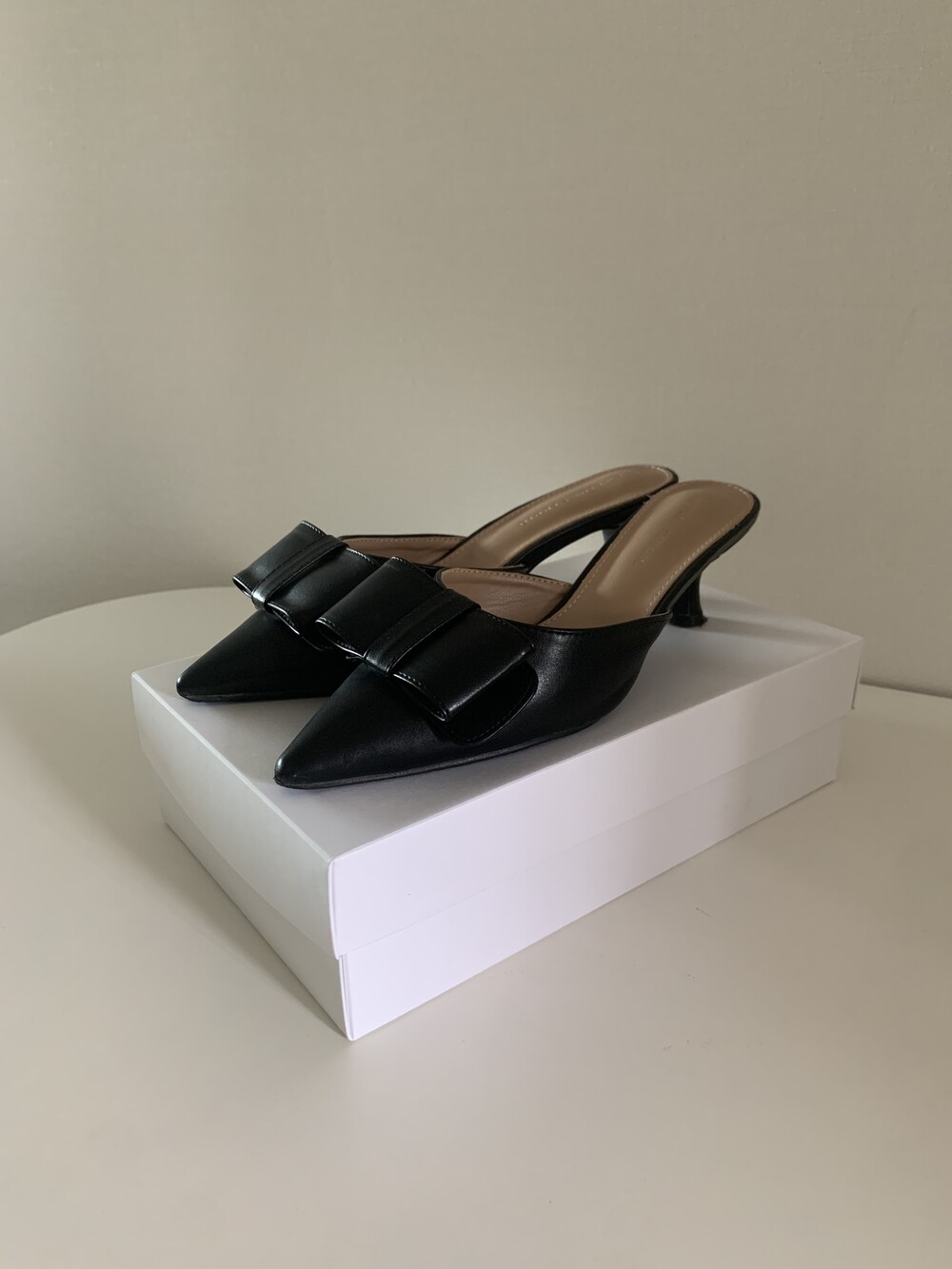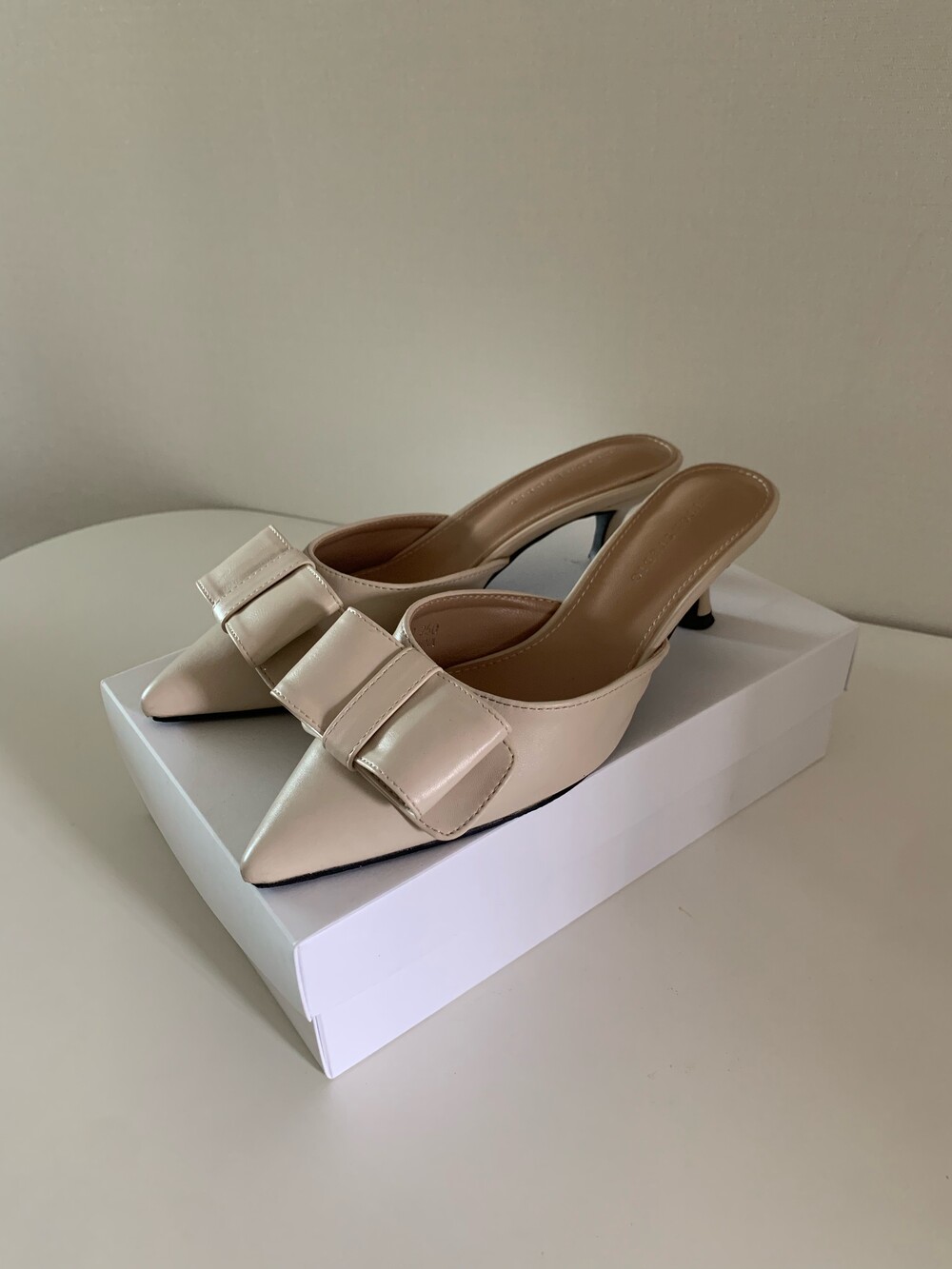 페미닌룩에 매치하기 좋은 리본 뮬 입니다.