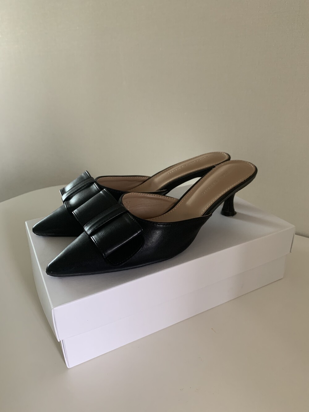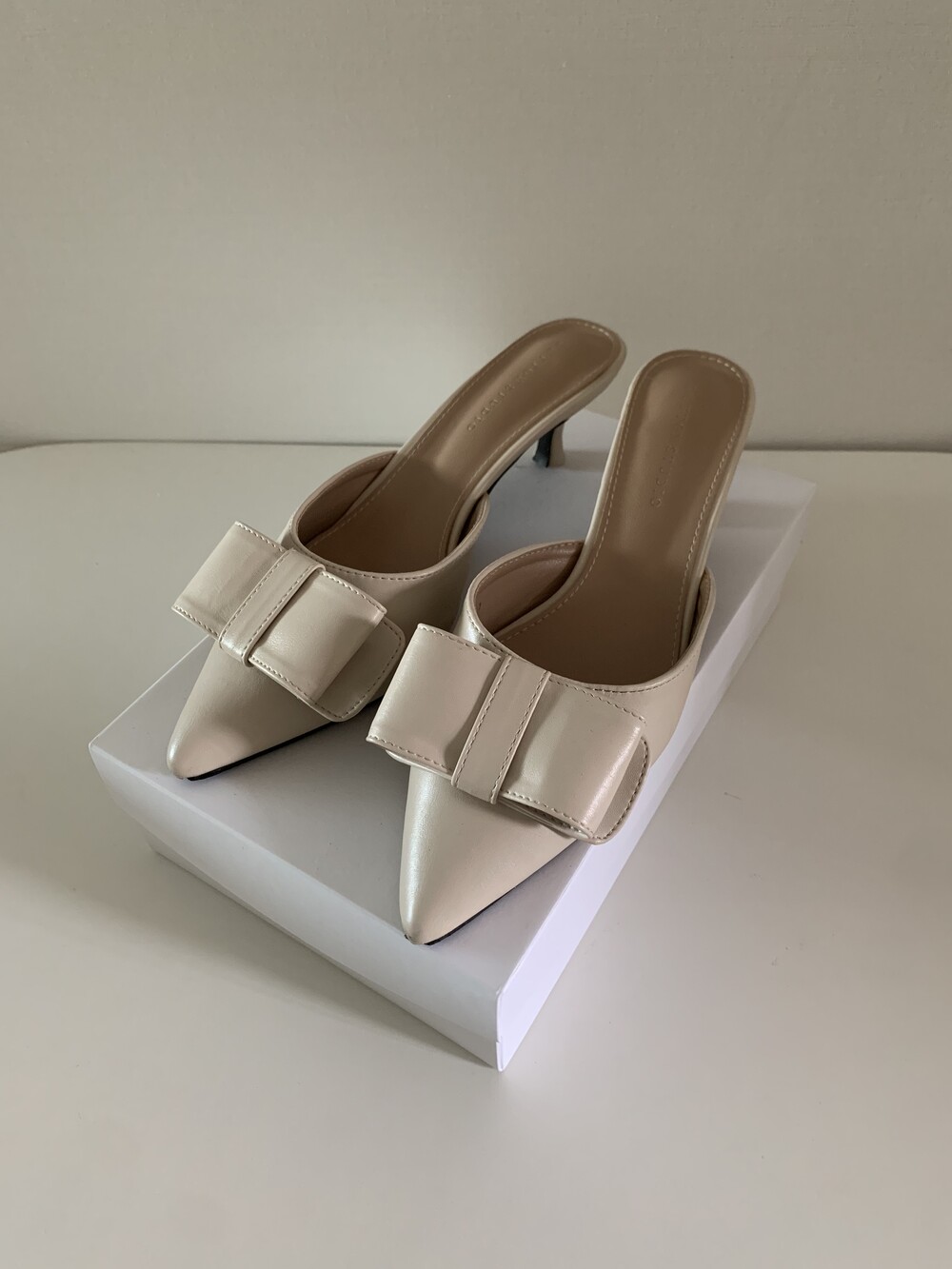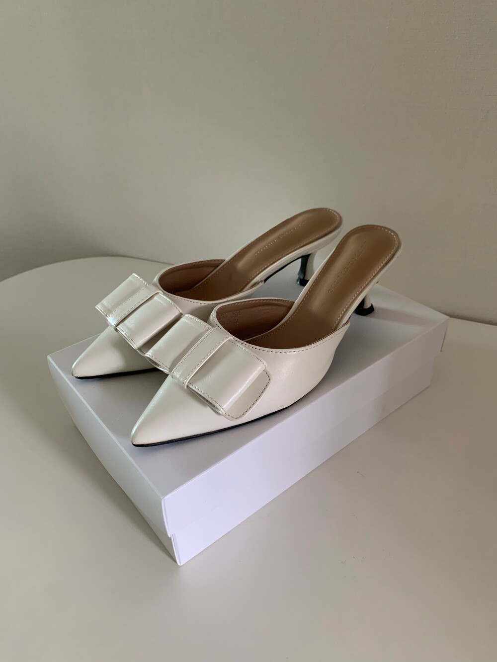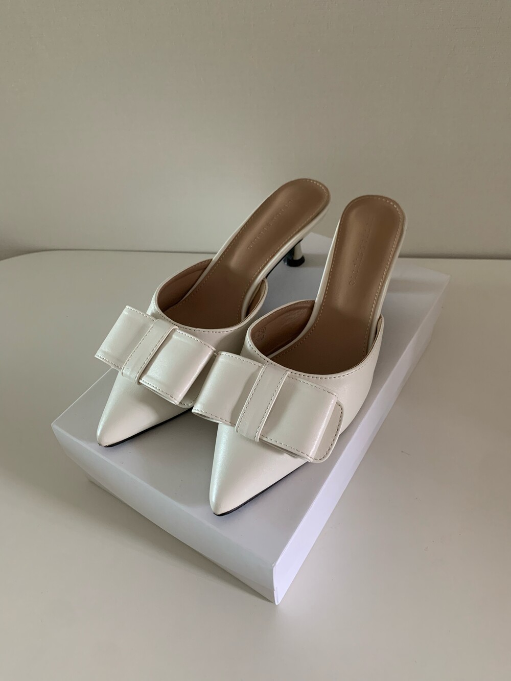 페미닌룩에 매치하기 좋은 리본 뮬 입니다.