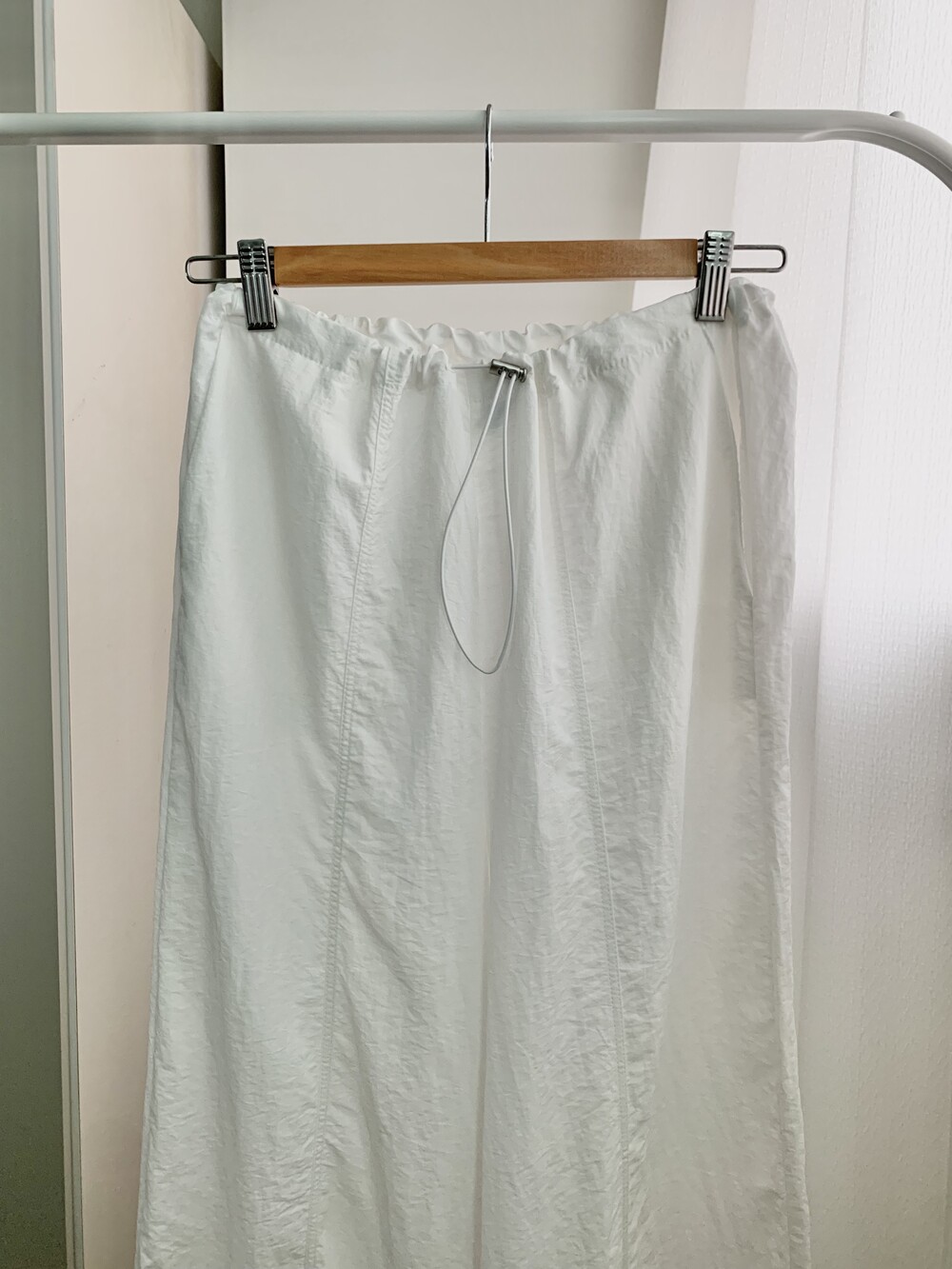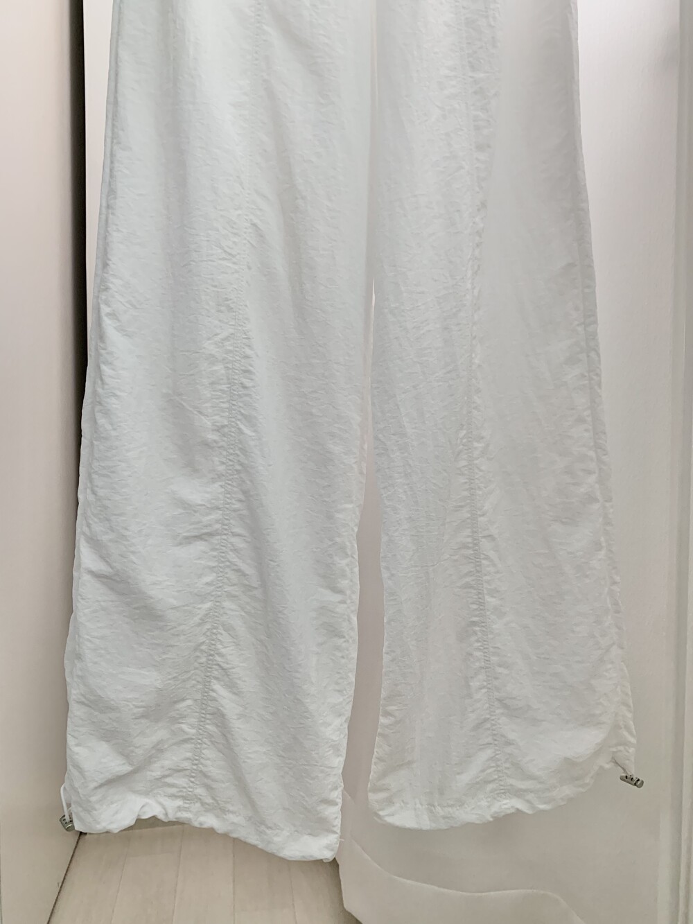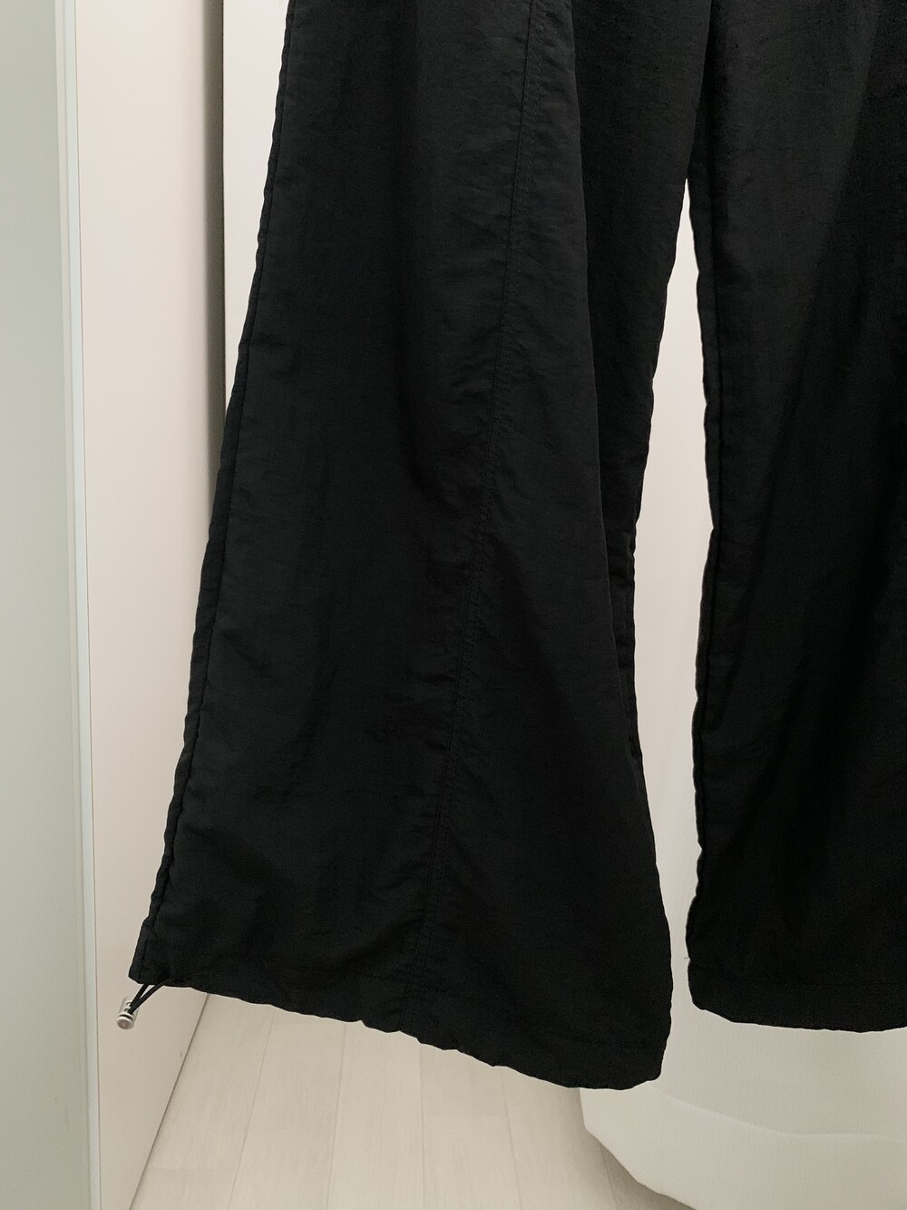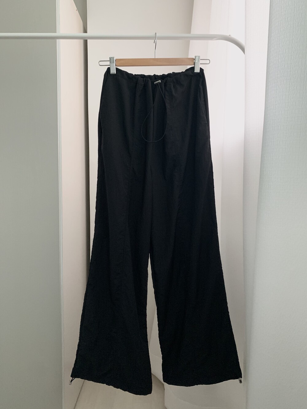바지 밑단은 스트링 디테일로 조절 가능합니다.
