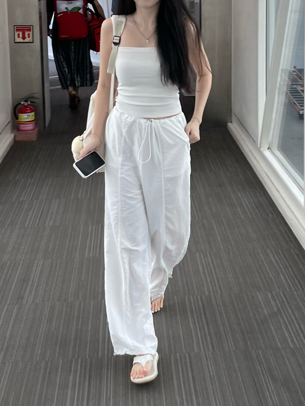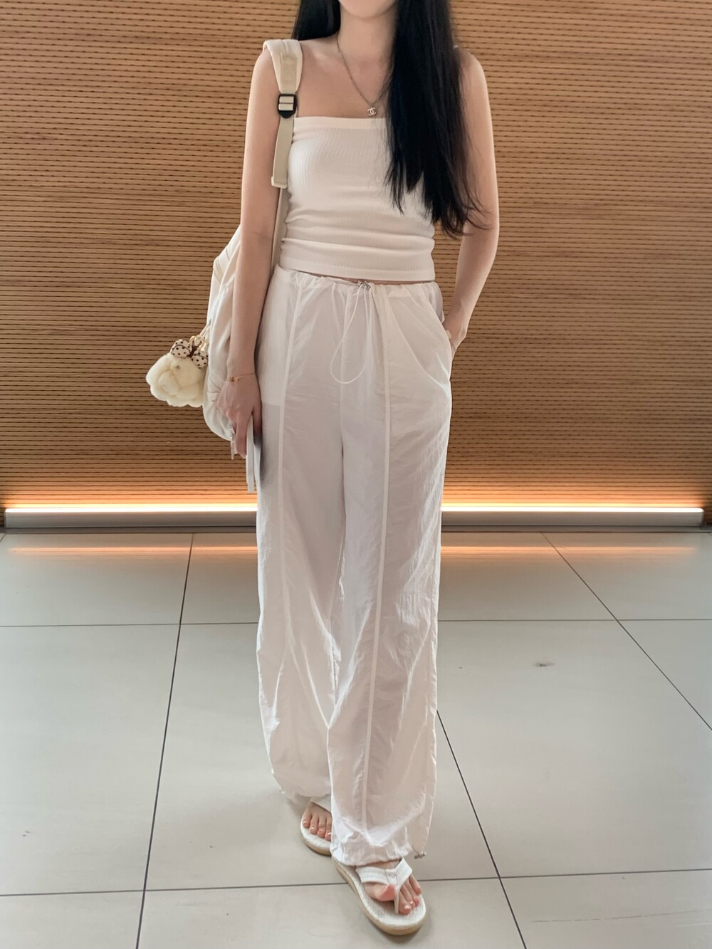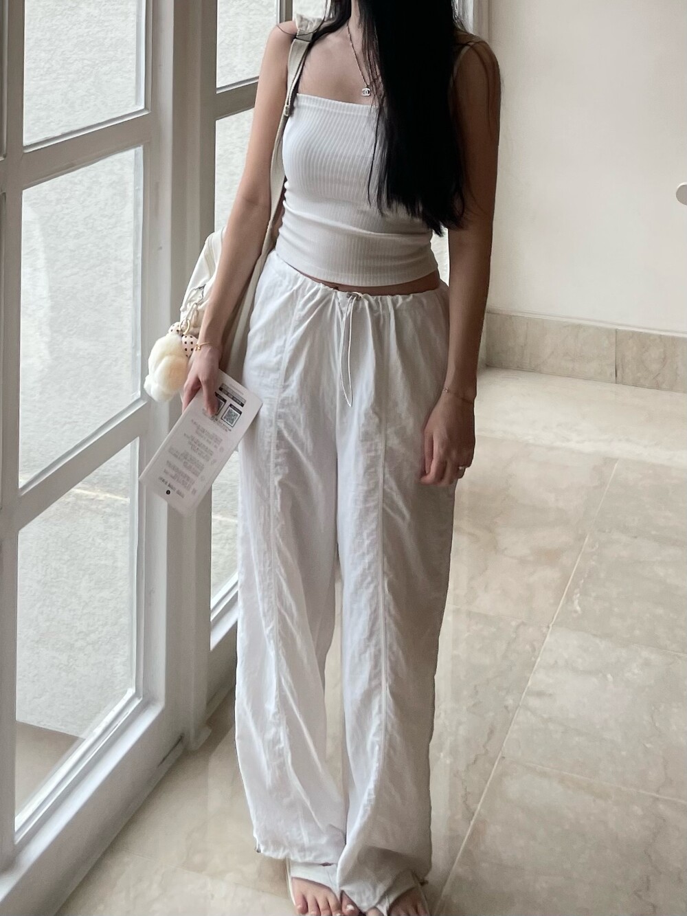티셔츠 등 다양한 룩에 활용도 높은 파라슈트 팬츠로