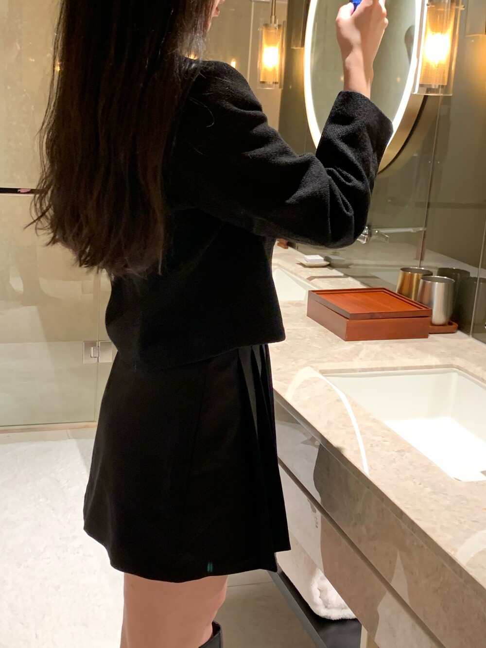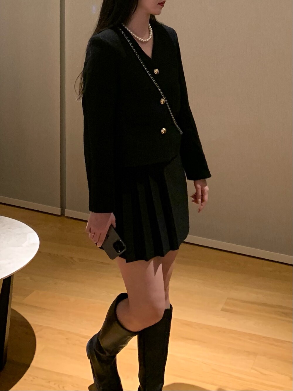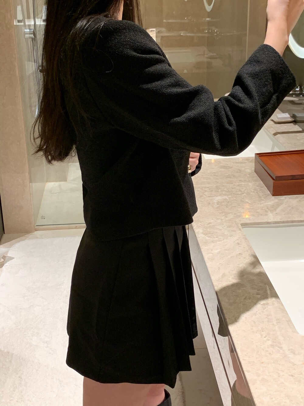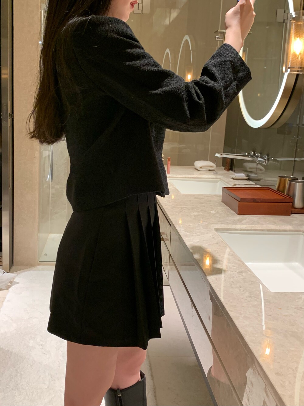 스커트 오른쪽에만 플리츠 주름으로 포인트를 주었습니다.