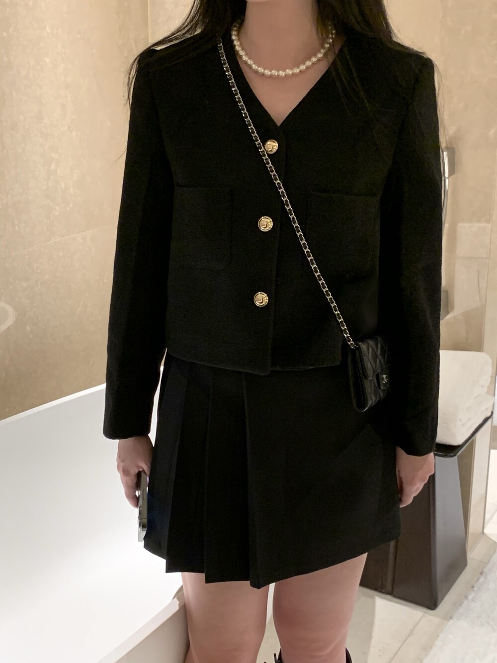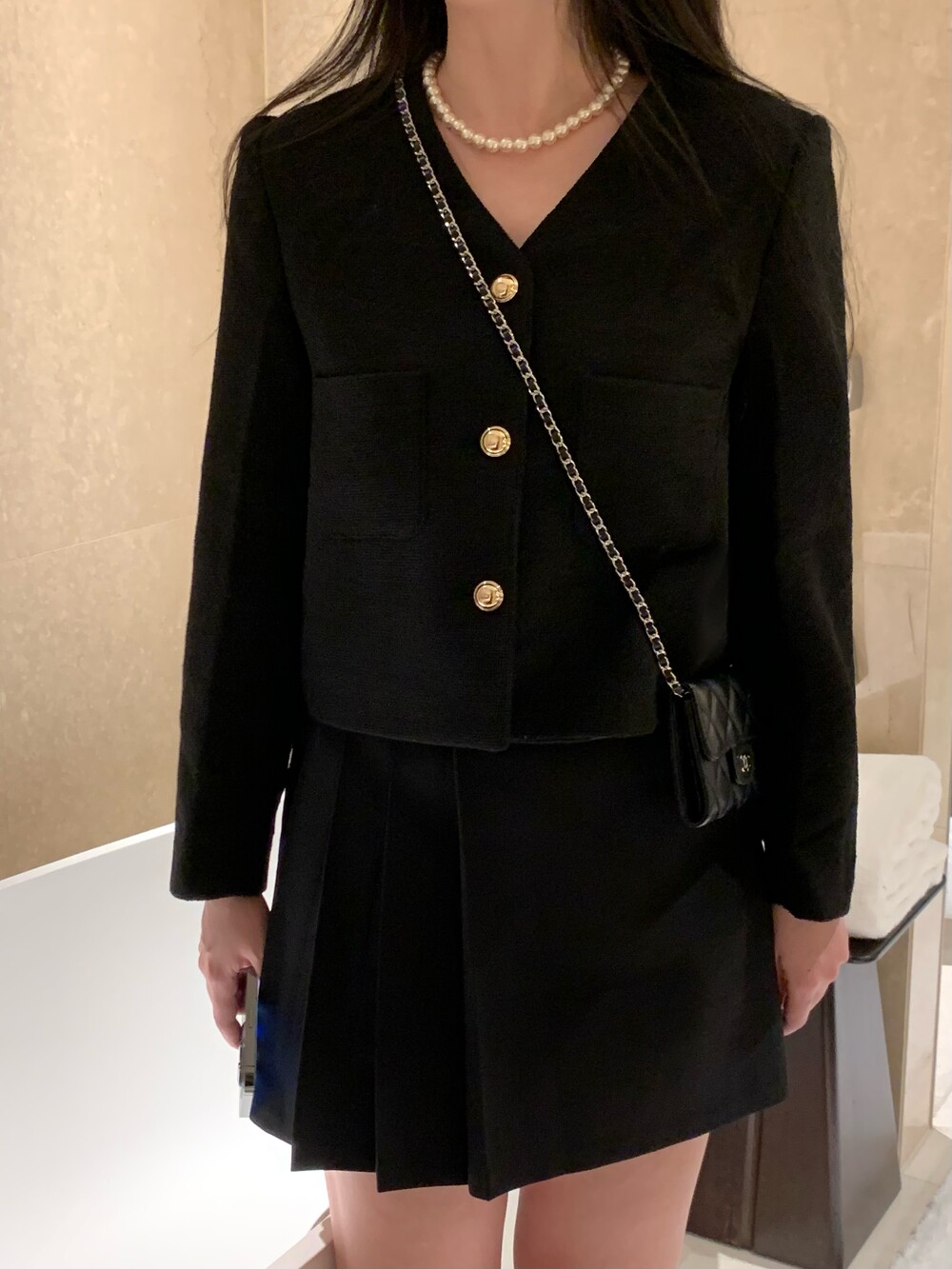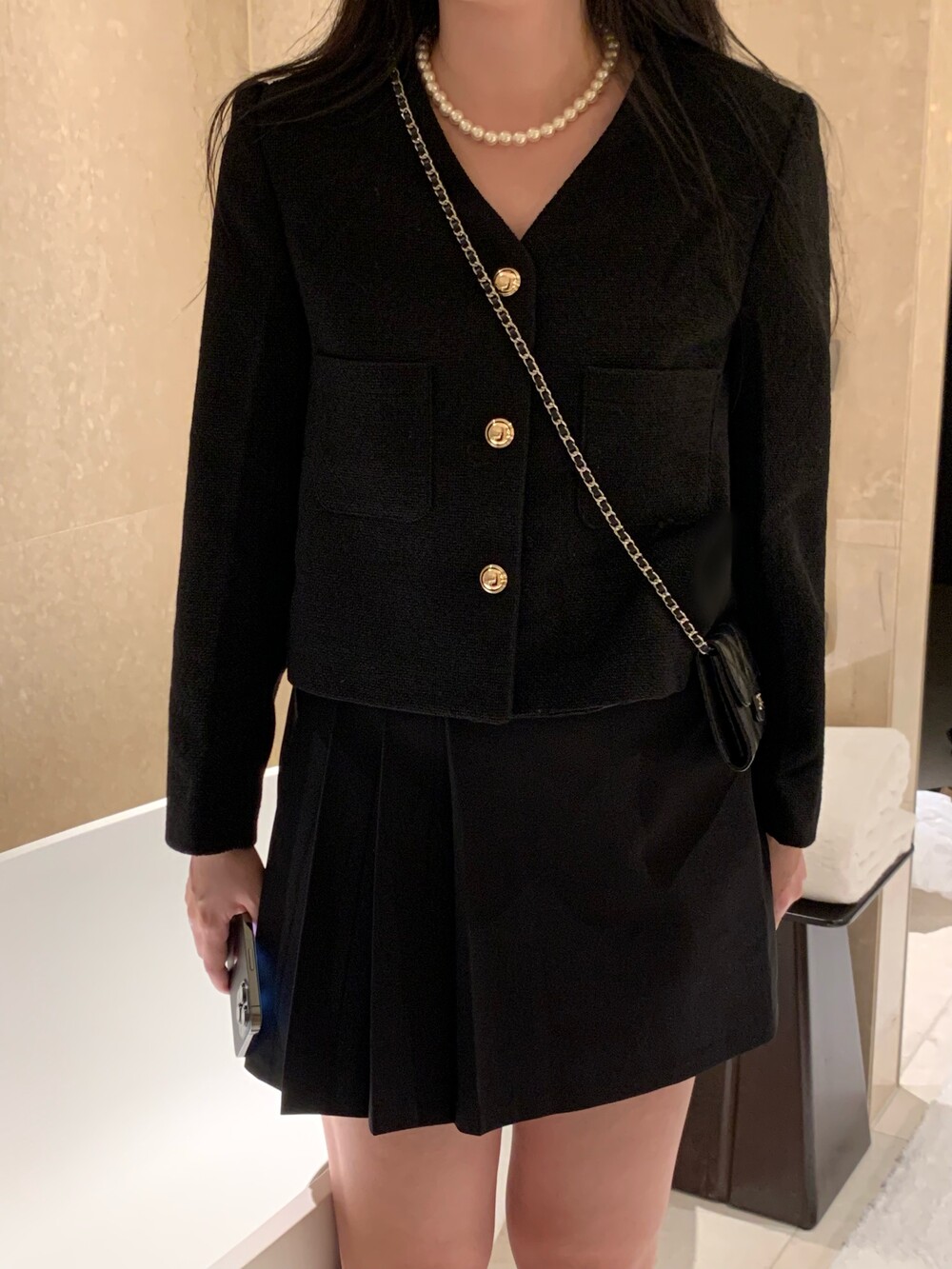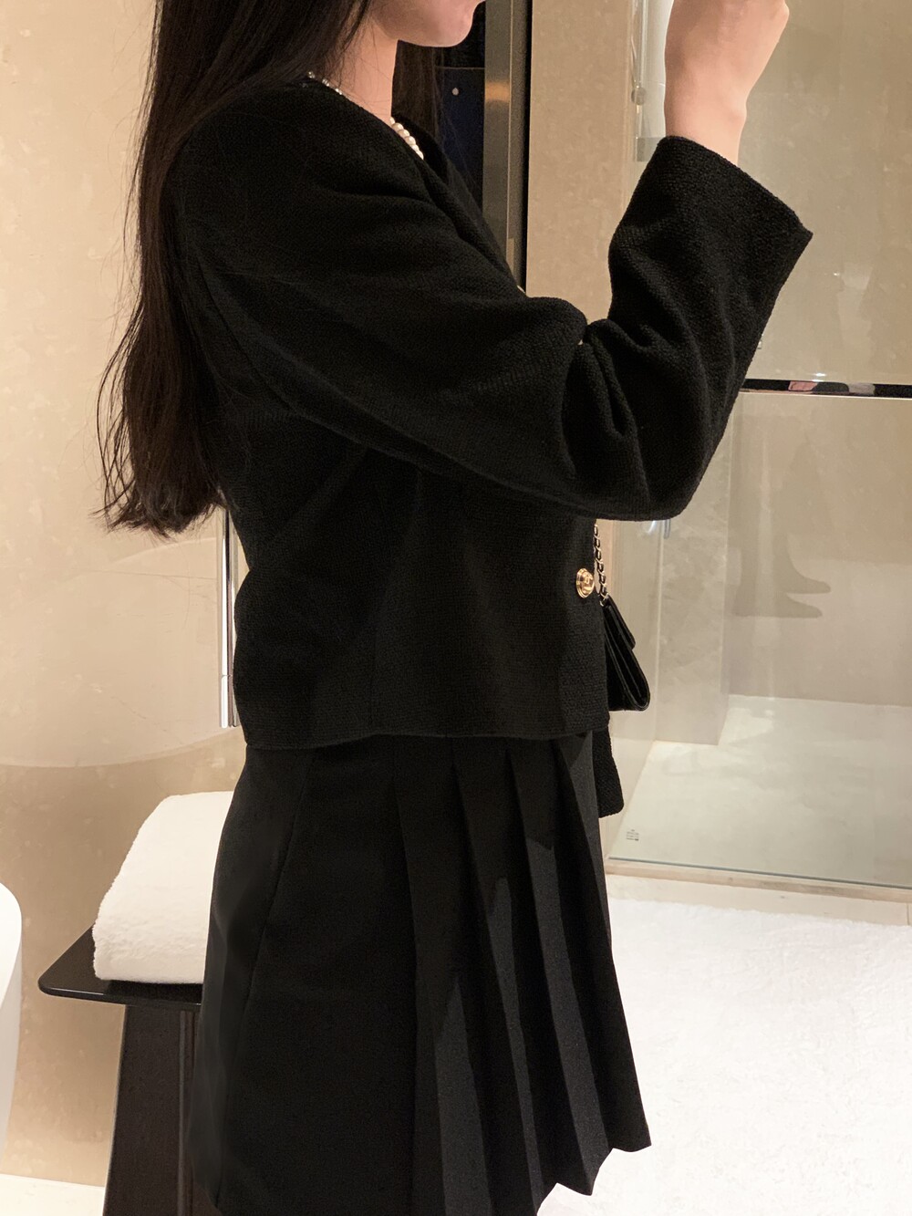 스커트 오른쪽에만 플리츠 주름으로 포인트를 주었습니다.