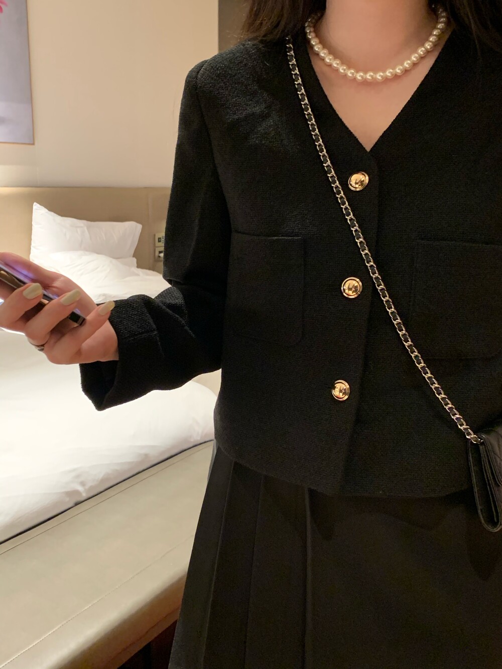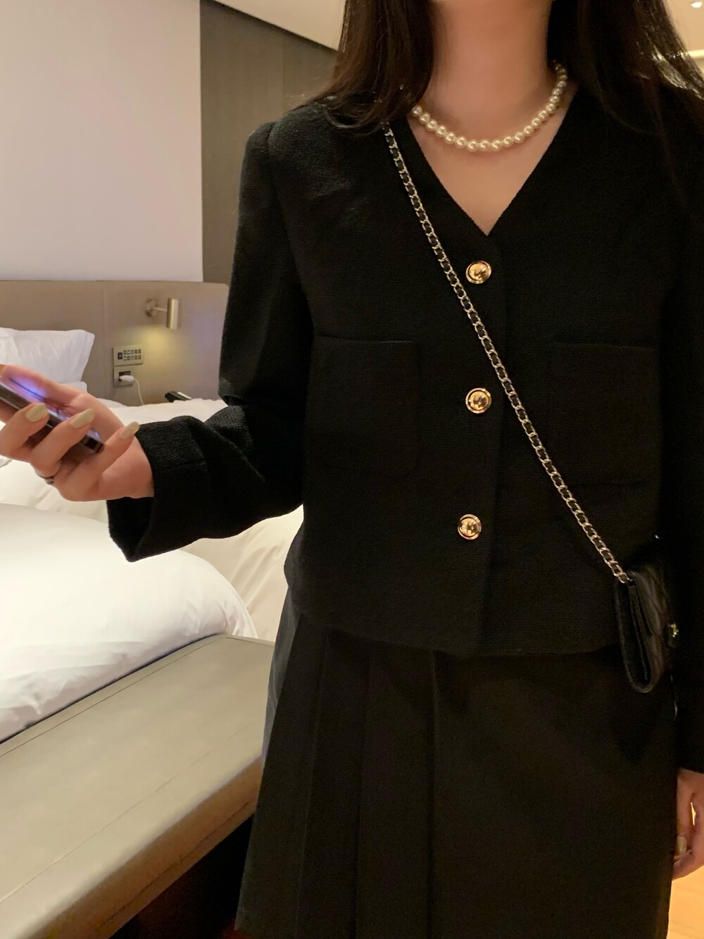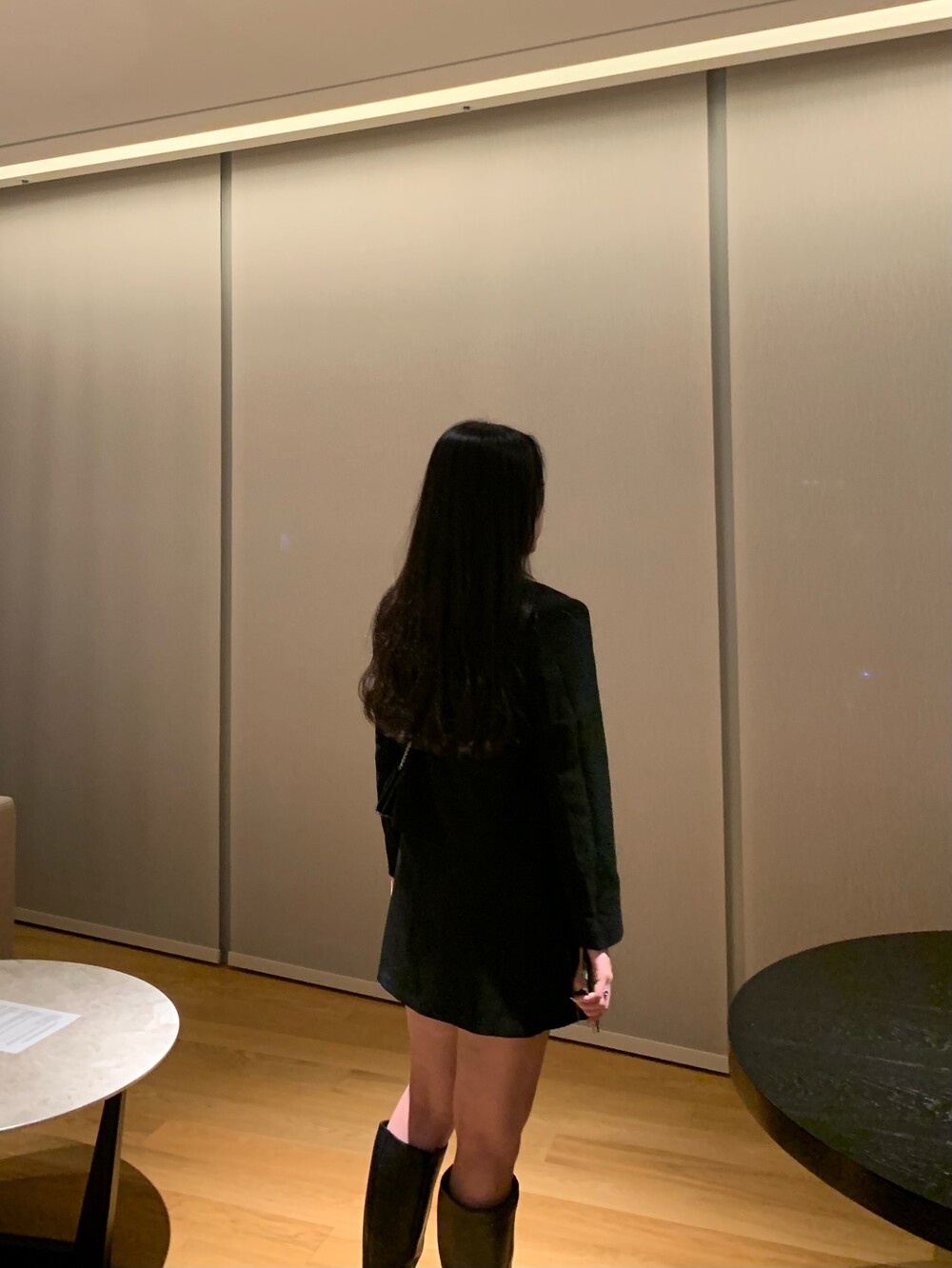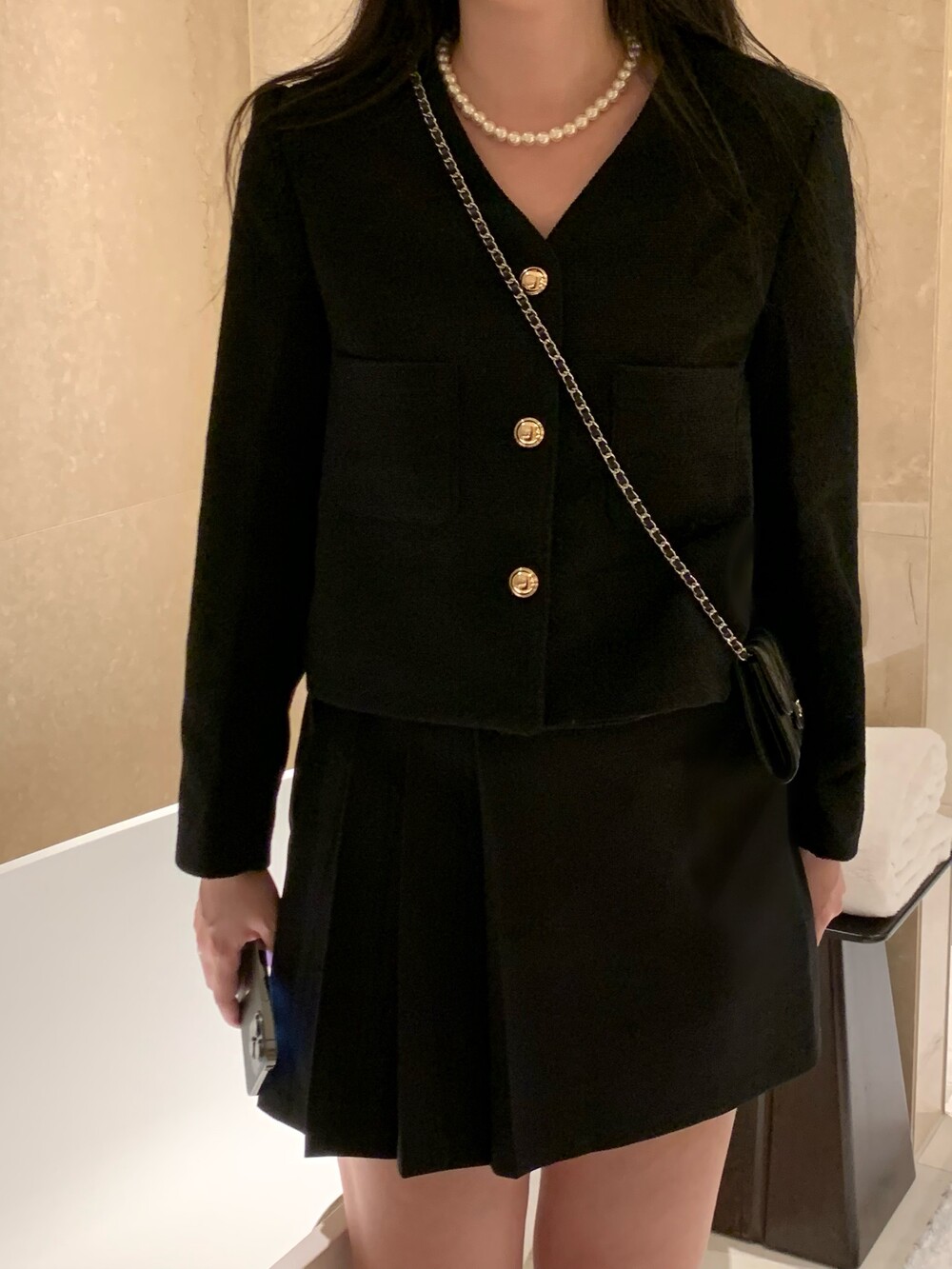스커트 오른쪽에만 플리츠 주름으로 포인트를 주었습니다.