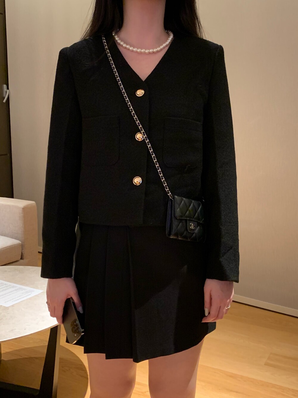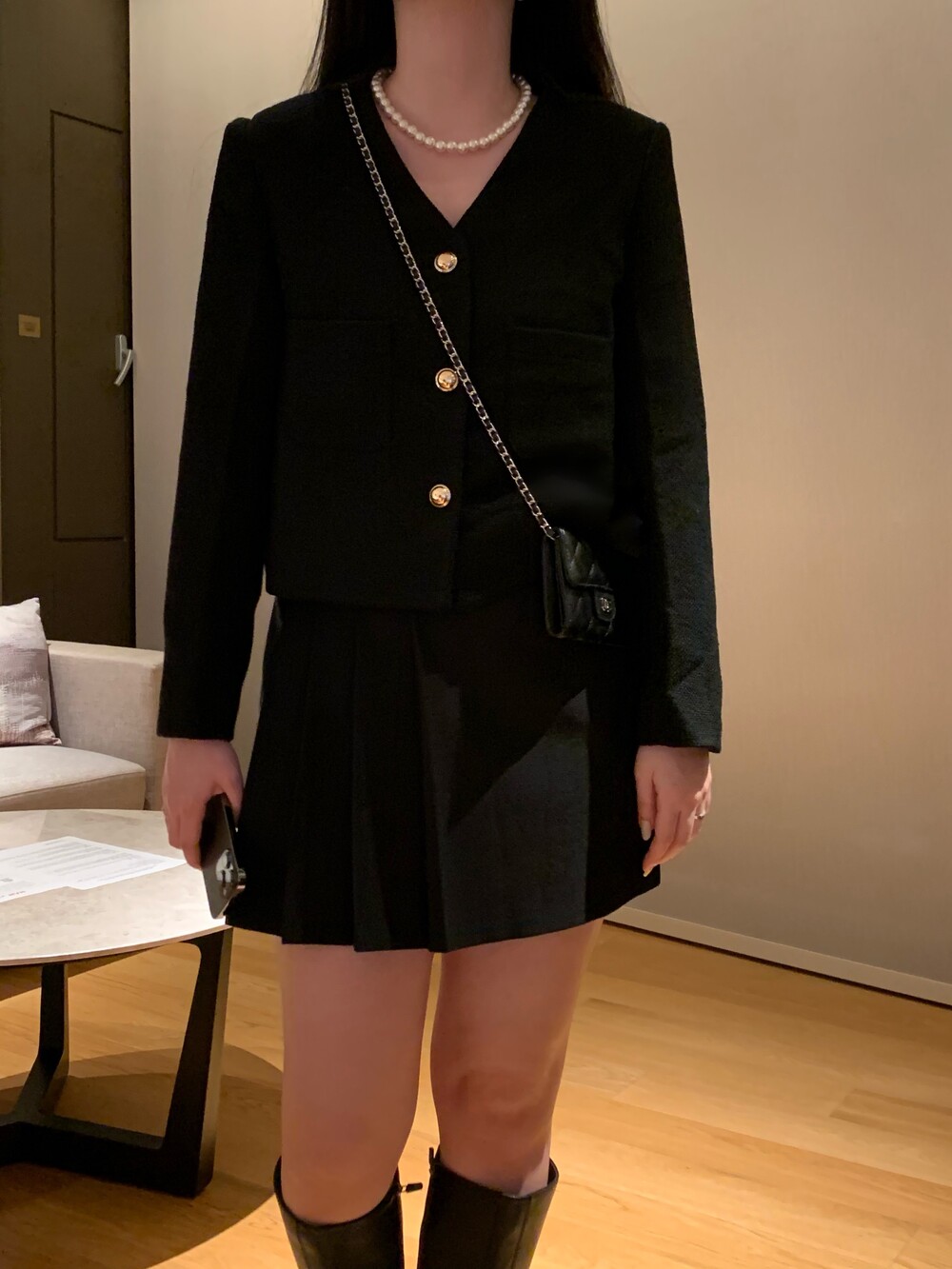 트위드, 니트, 맨투맨 등 다양한룩에 활용도 높은 스커트로