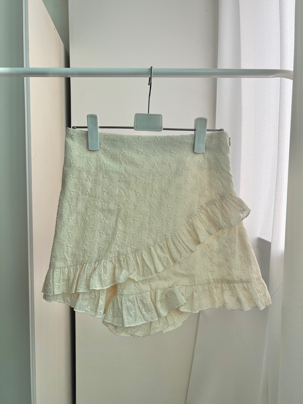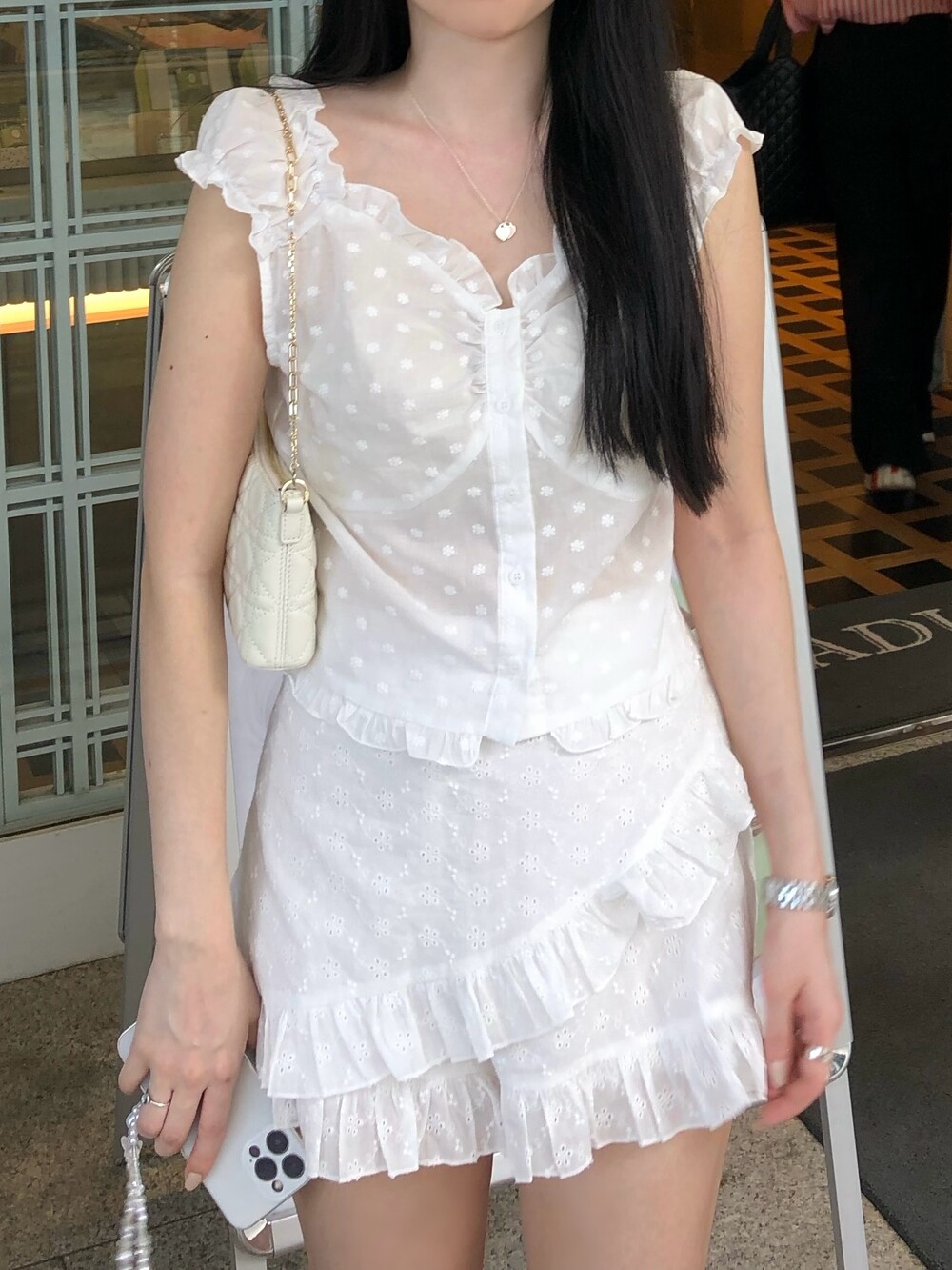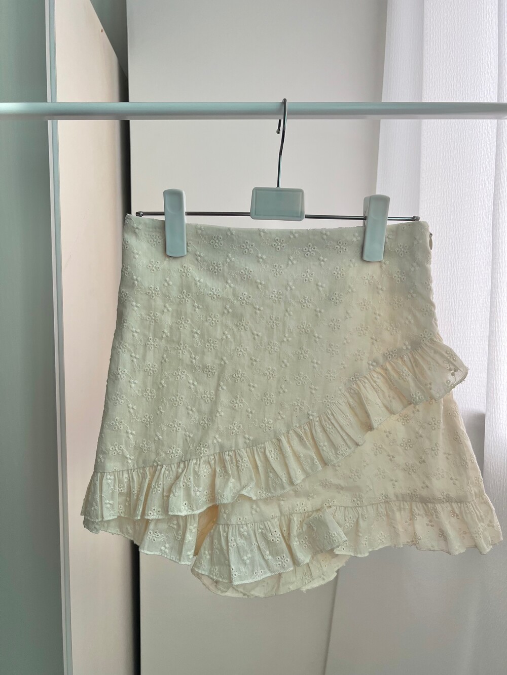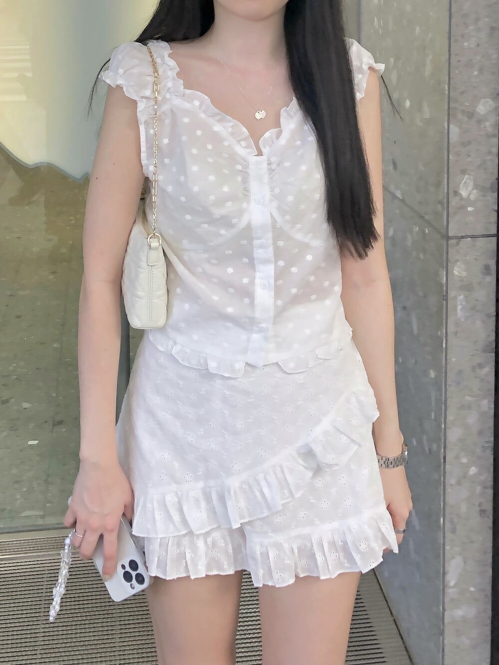 꽃 펀칭 디테일과 지퍼 잠금, 프릴 디자인이