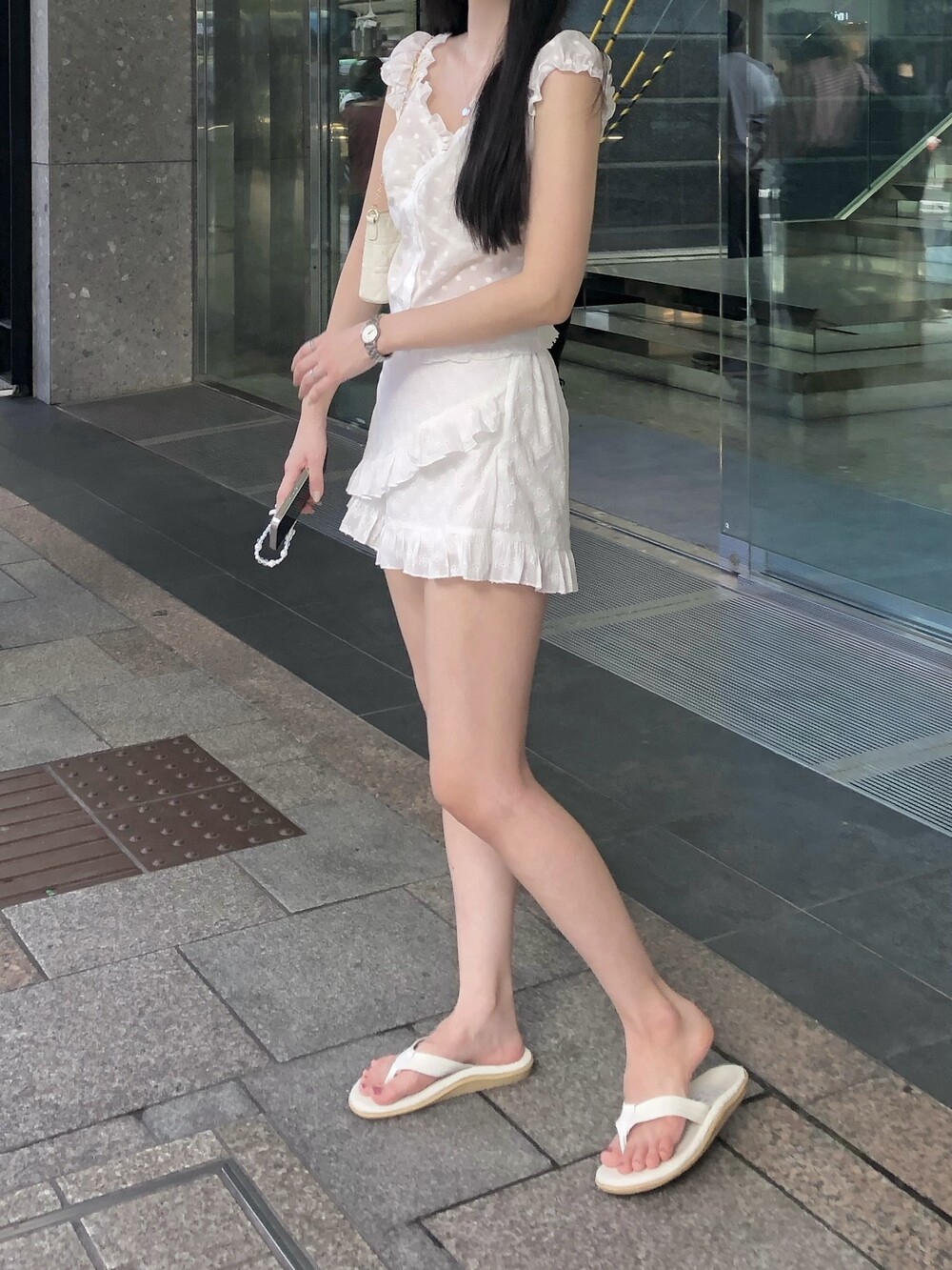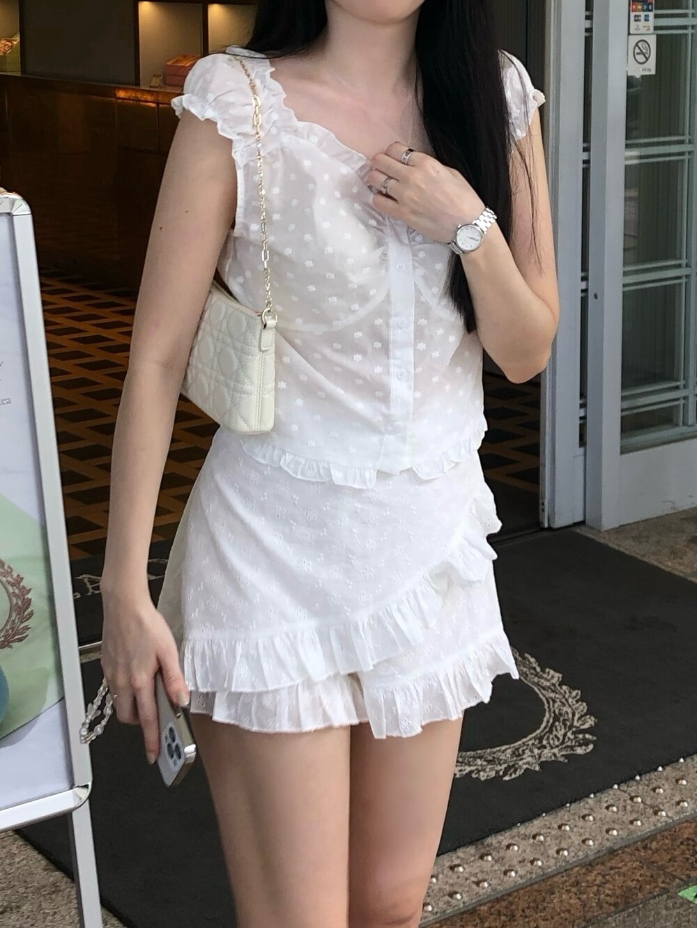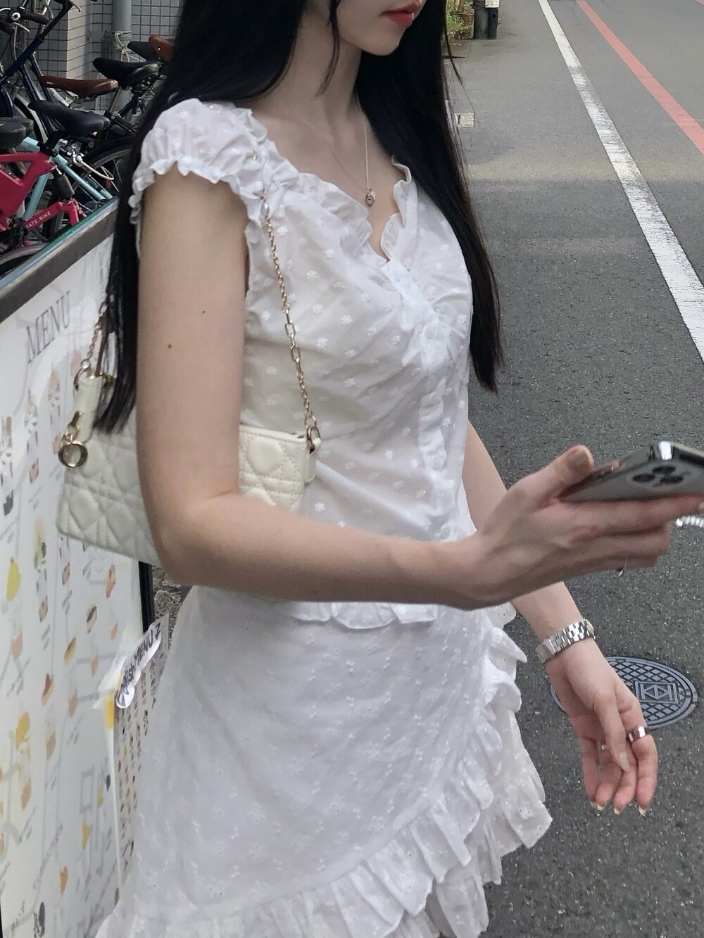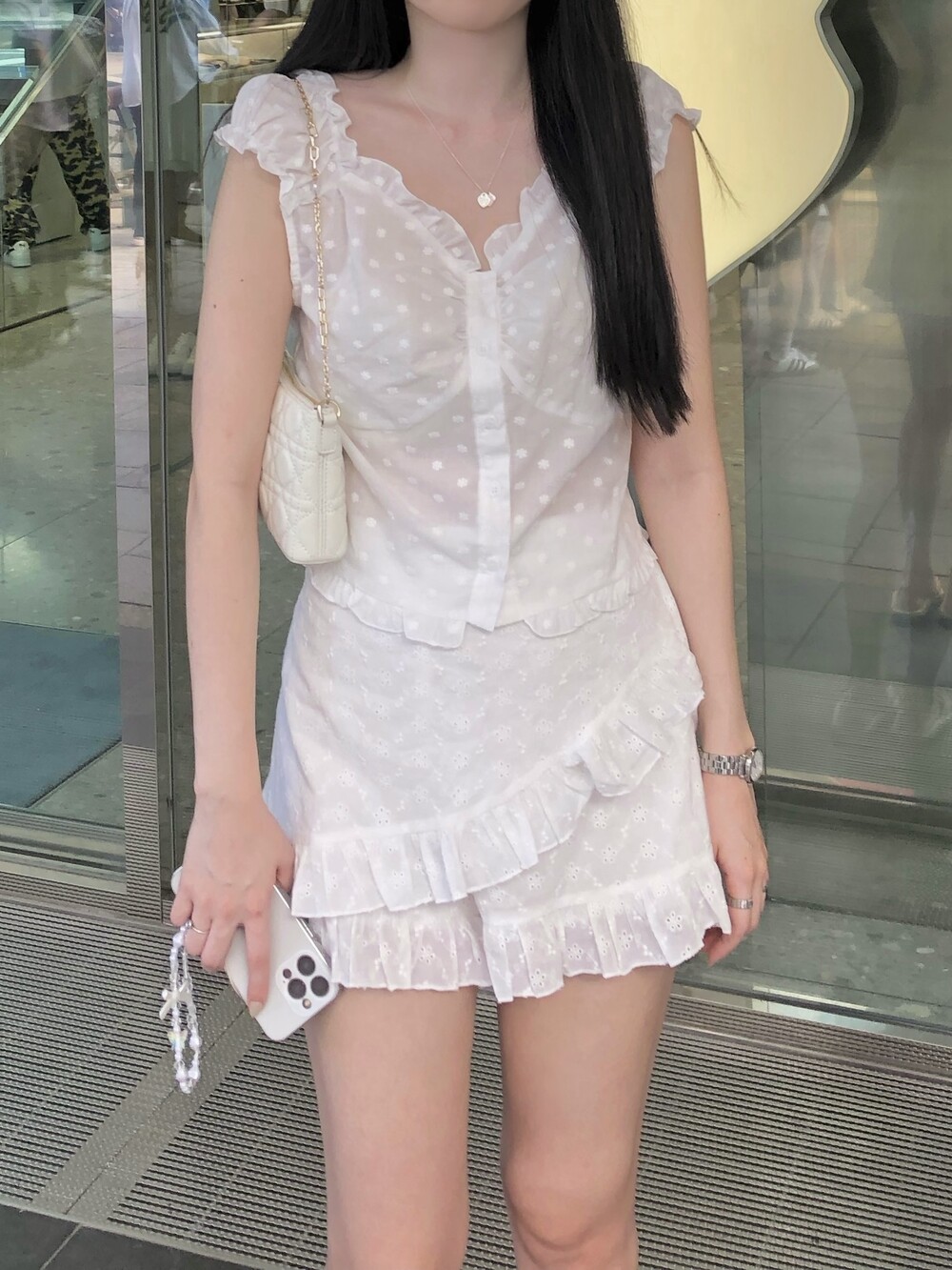 꽃 펀칭 디테일과 지퍼 잠금, 프릴 디자인이