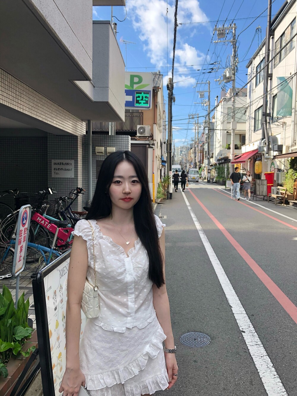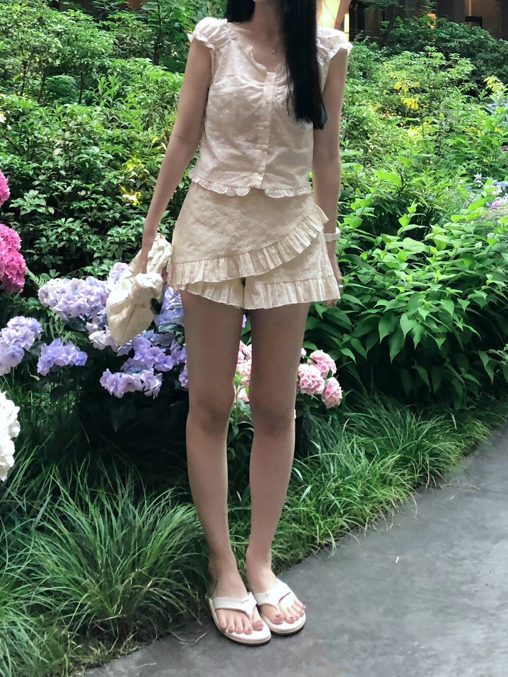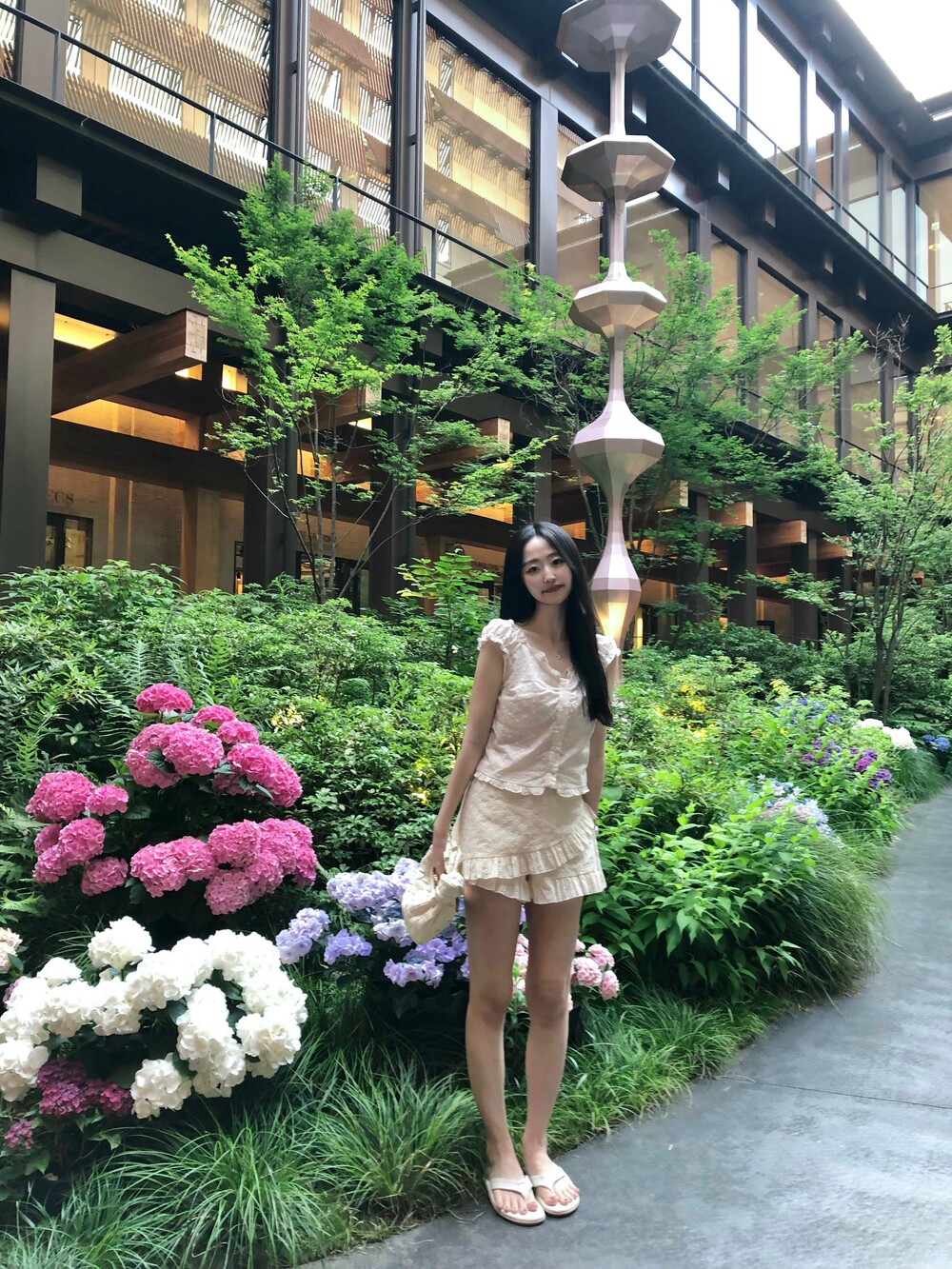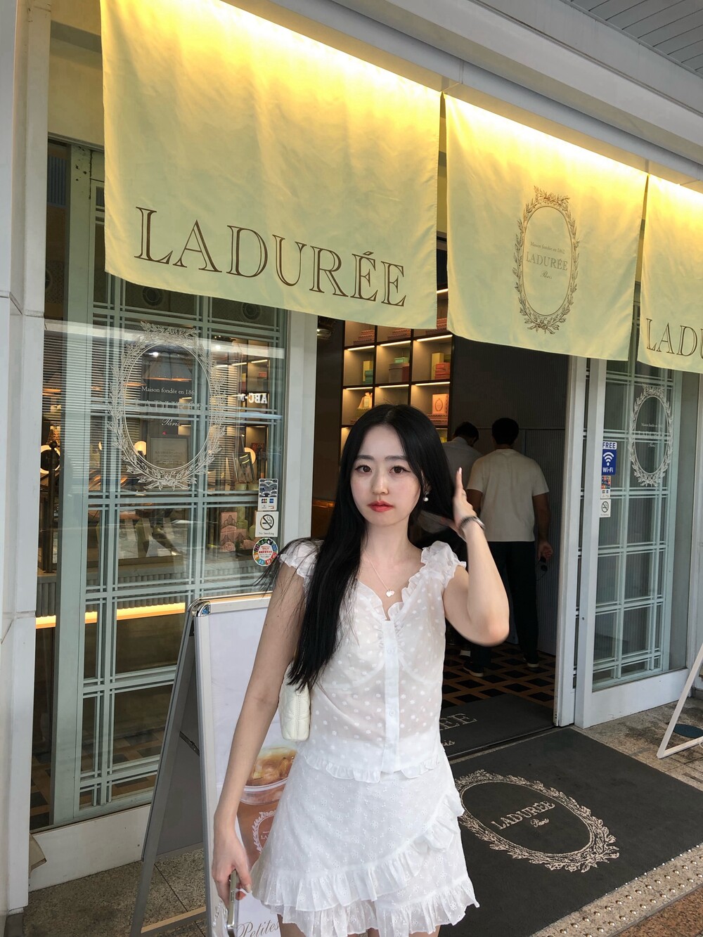 함께 코디한 플라워 블라우스와 셋업 착용을 추천드려요.